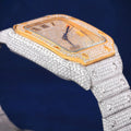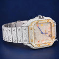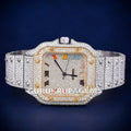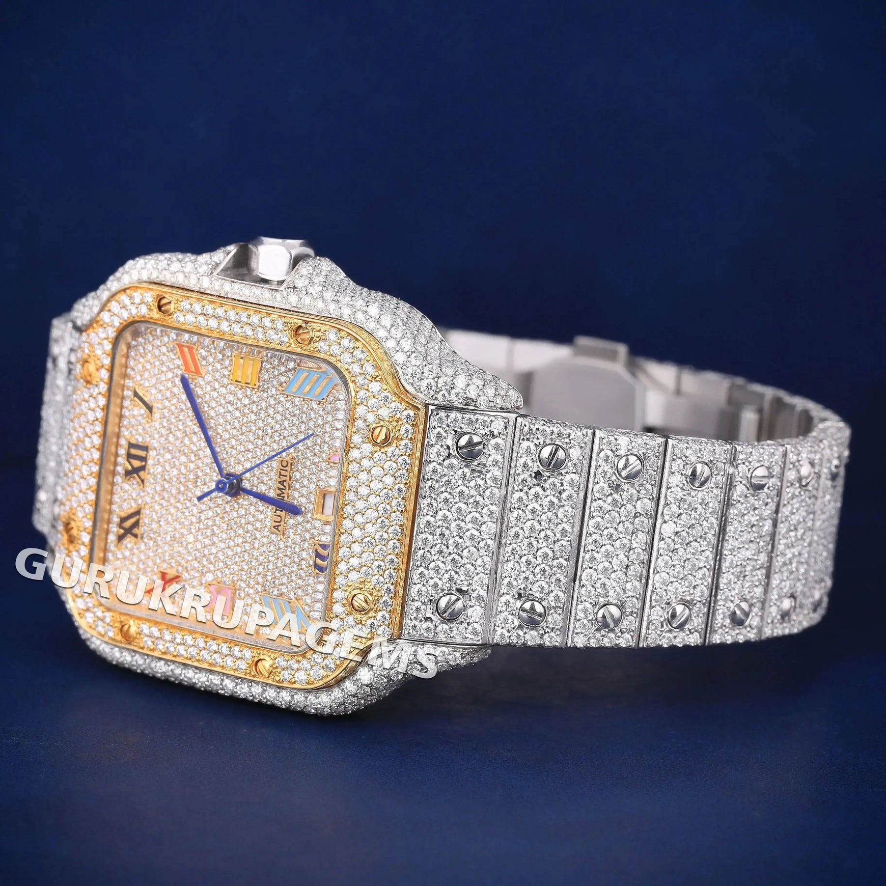 Custom Two Tone Iced Out Diamond Watch with Multicolor Roman Numeral Dial and Custom Yellow Gold Bezel New Watches