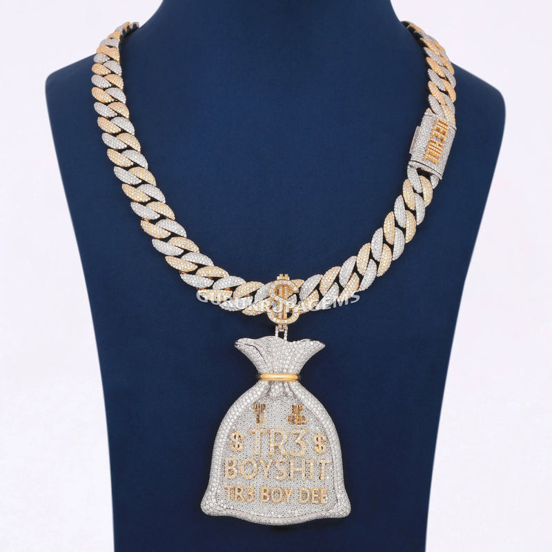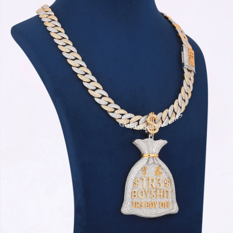 Exclusive Hip Hop Jewelry Piece Featuring a Gold & Silver Cuban Link Chain with Money Bag Pendant