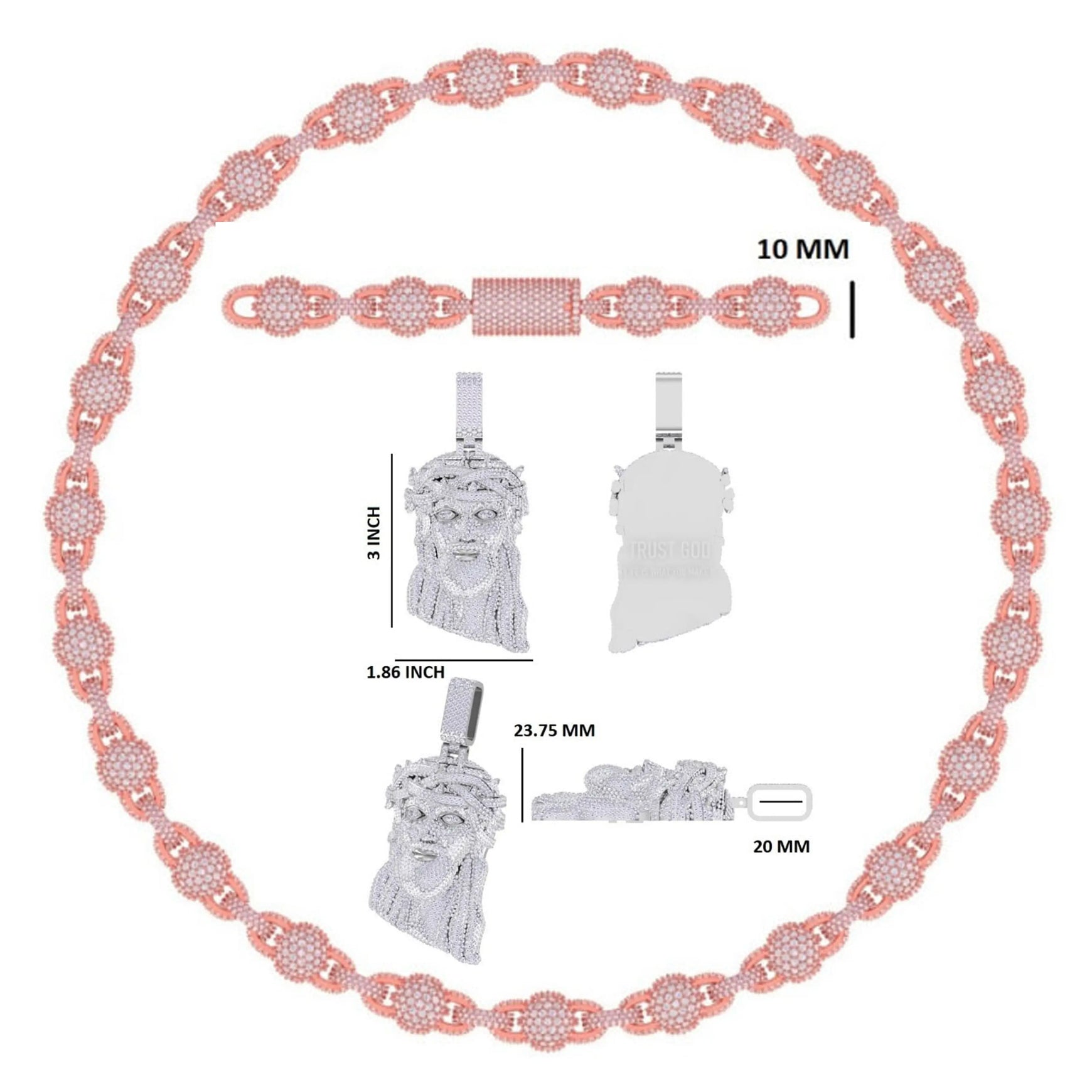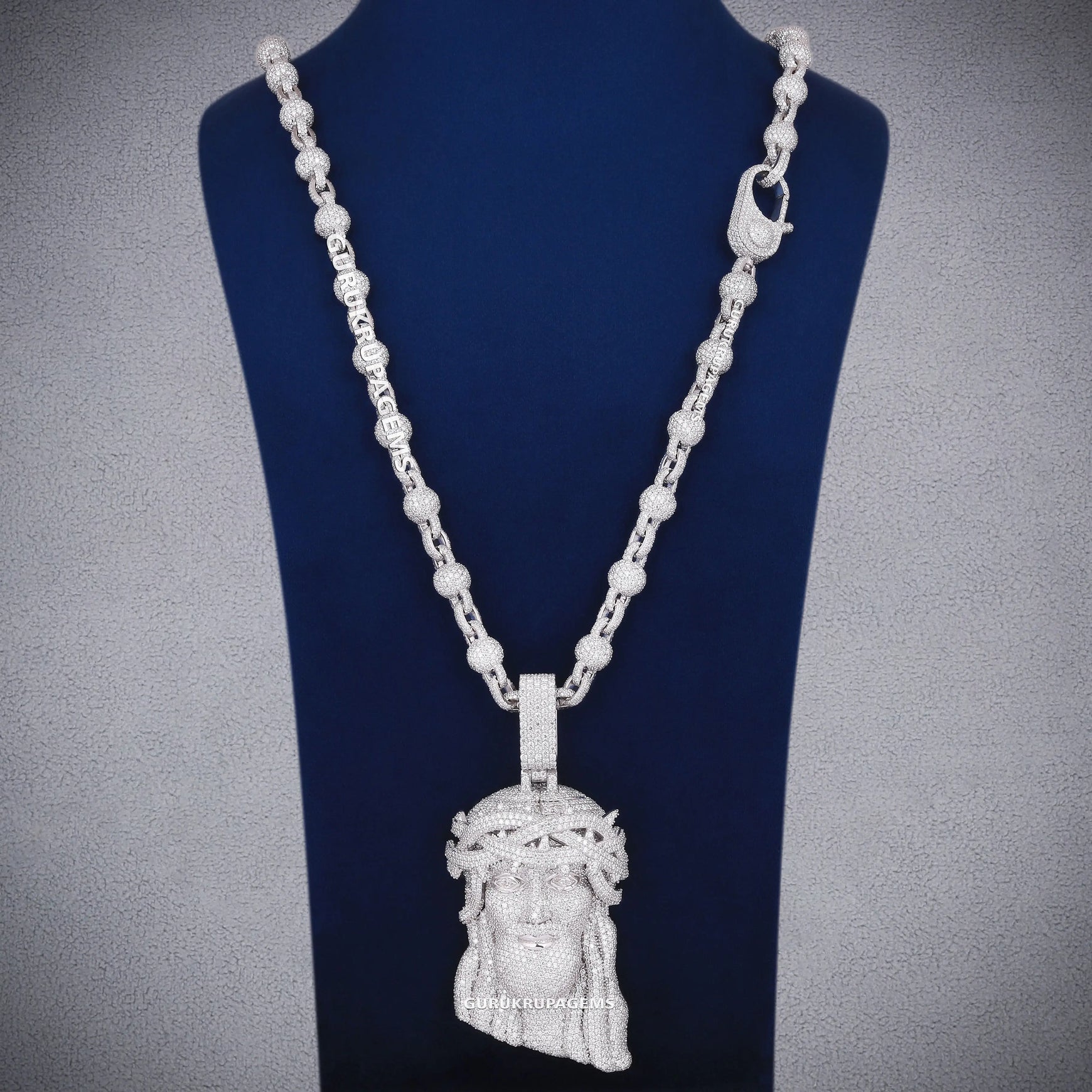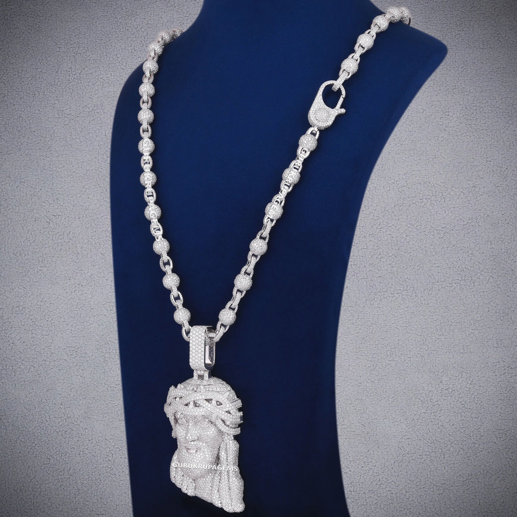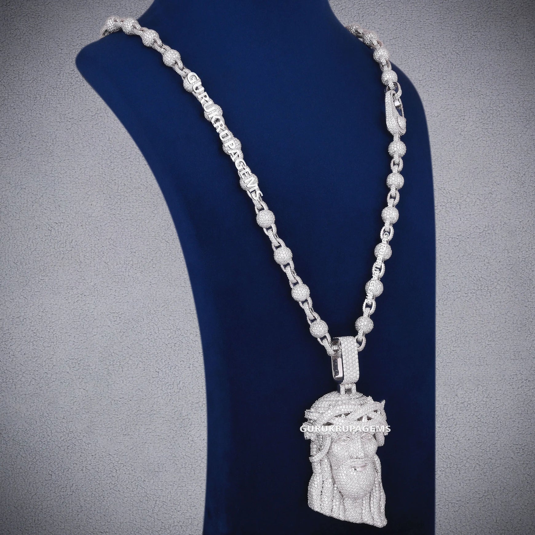 New Arrival European and American Custom Full Iced Out Jesus Face Pendant with Ball Cuban Link Chain Silver Gold Plating Rappers Women Men Heavy Necklace