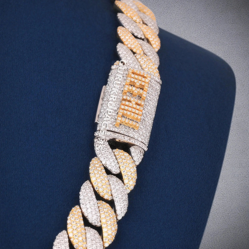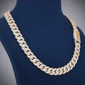 Two Tone Diamond Cuban Link Chain Necklace 22 Inch 15mm Iced Out for Mens and Womens