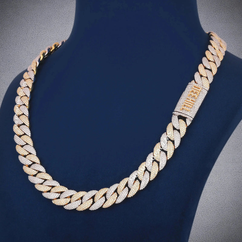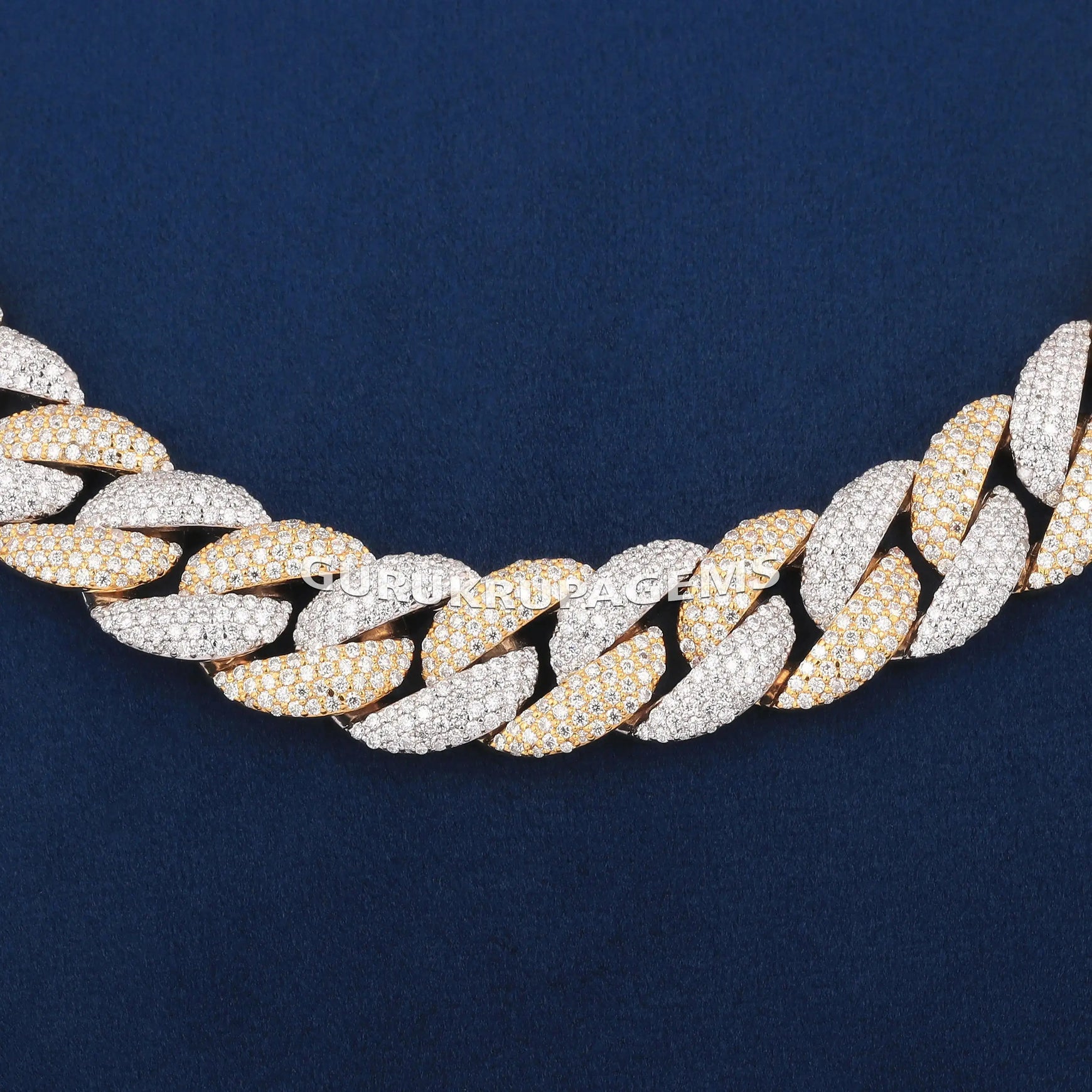Two Tone Diamond Cuban Link Chain Necklace for Men and Women