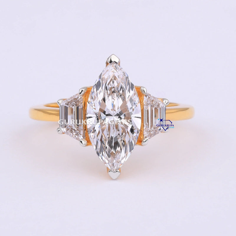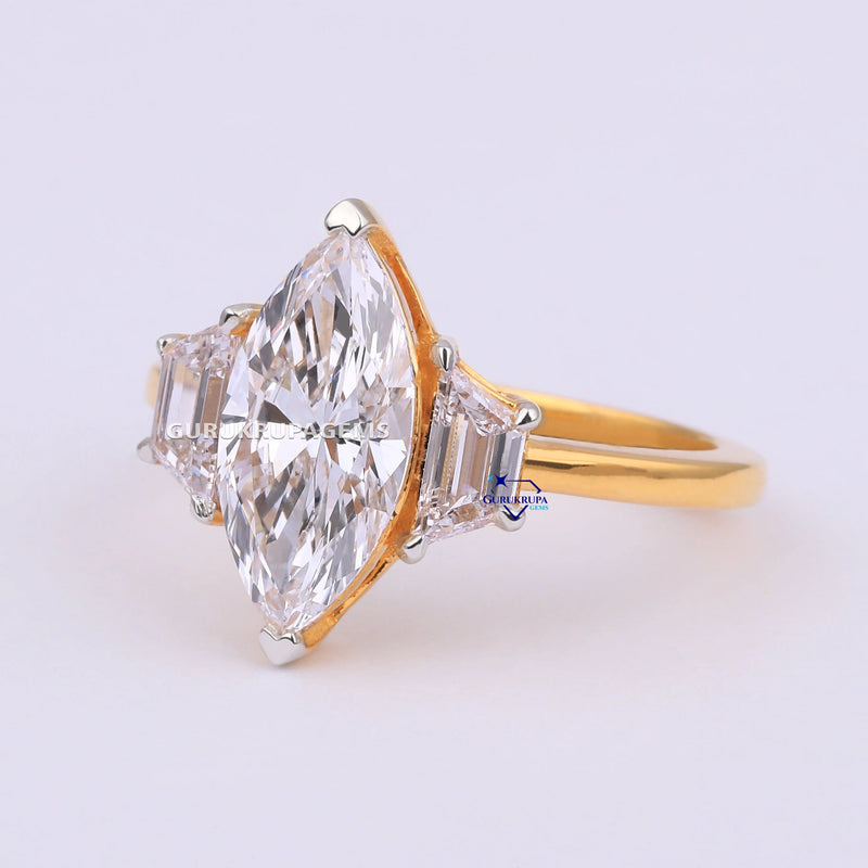 2.90 CT Marquise & Trapezoid Diamond Solitaire Ring for Elegant Women’s Styling