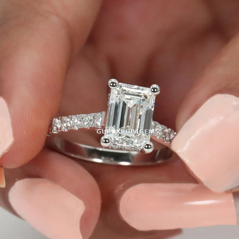 Amazingly formed 14 KT Emerald Cut Solitaire Diamond Ring For Engagement with VVS clarity