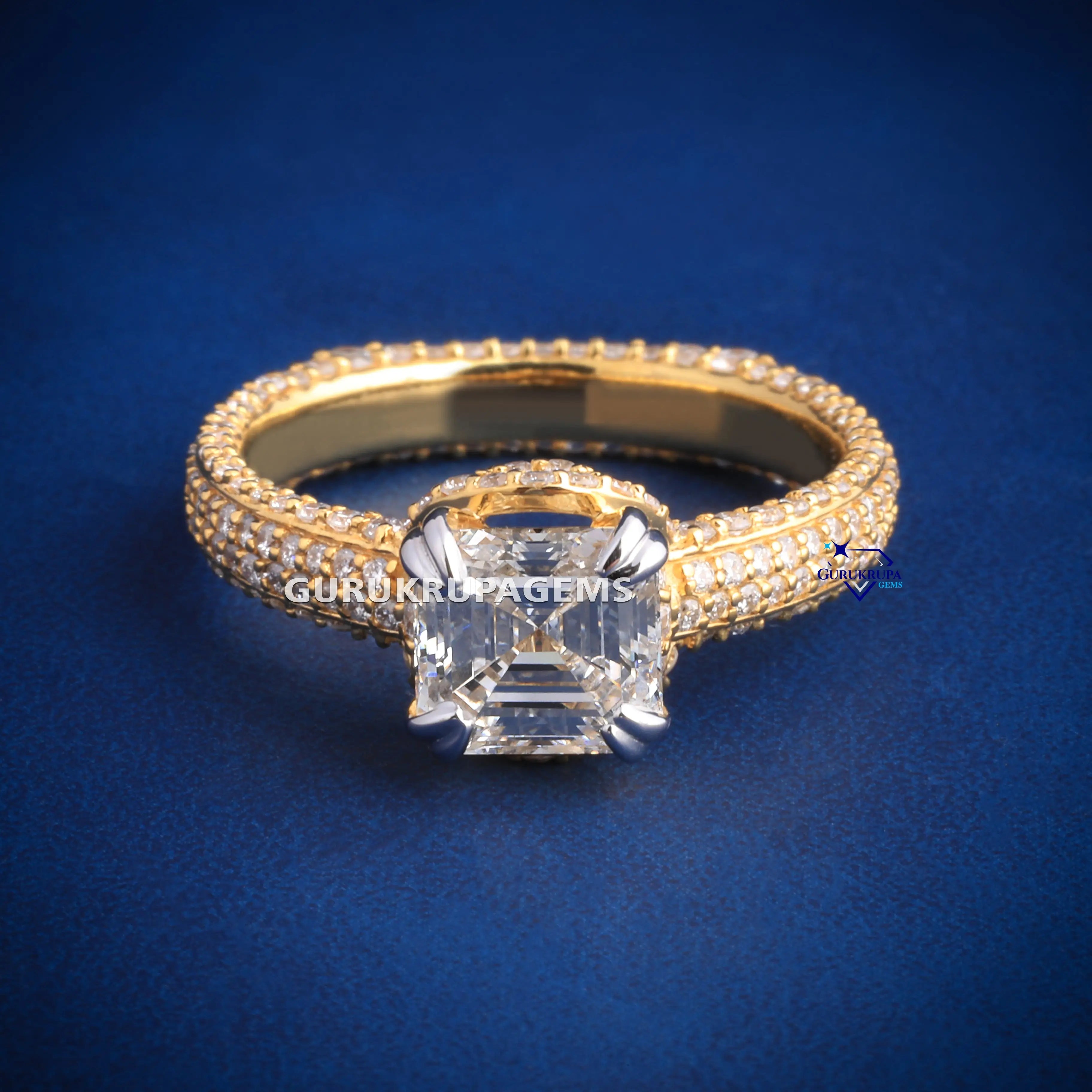 Asscher cut solitaire diamond ring for men women with vvs clarity diamonds
