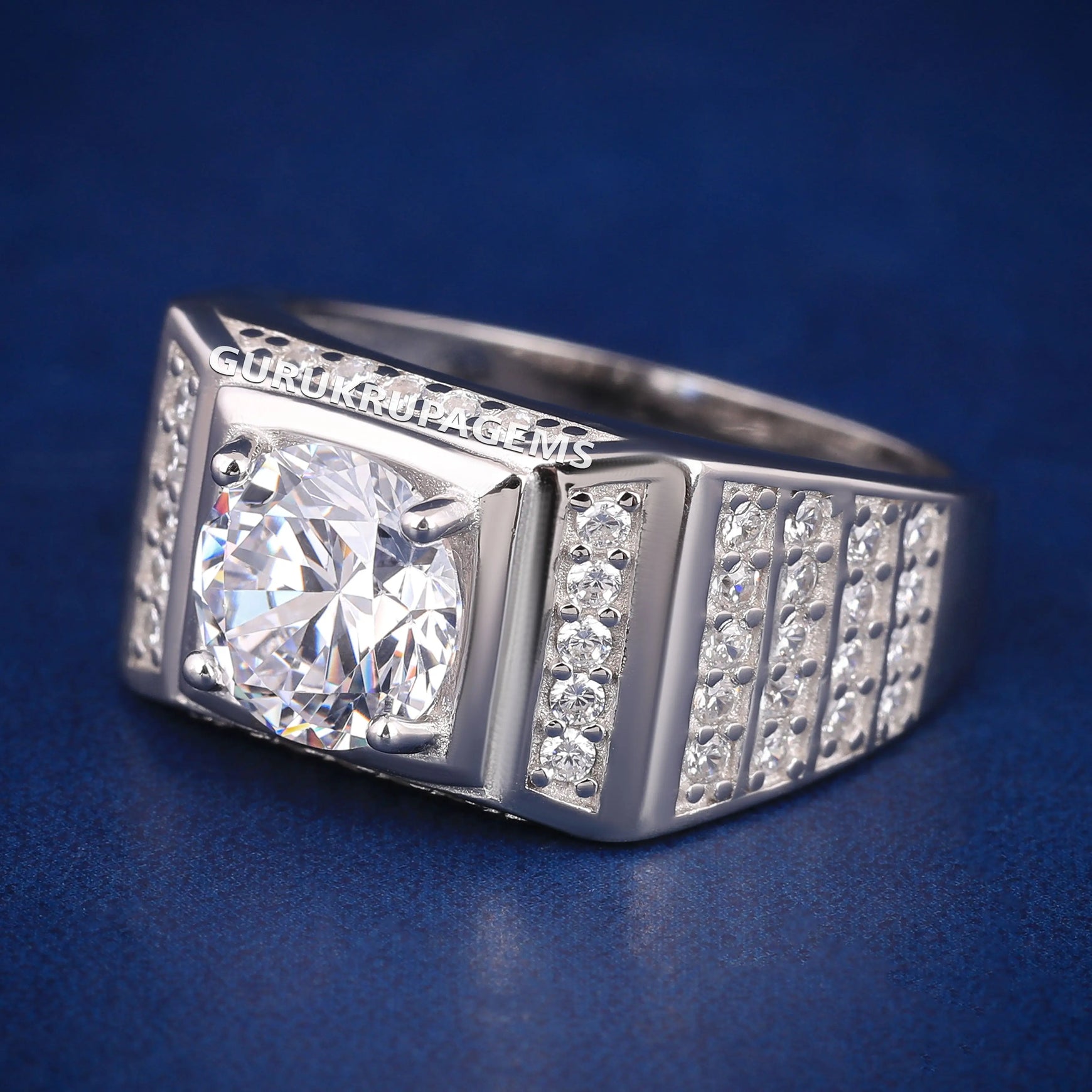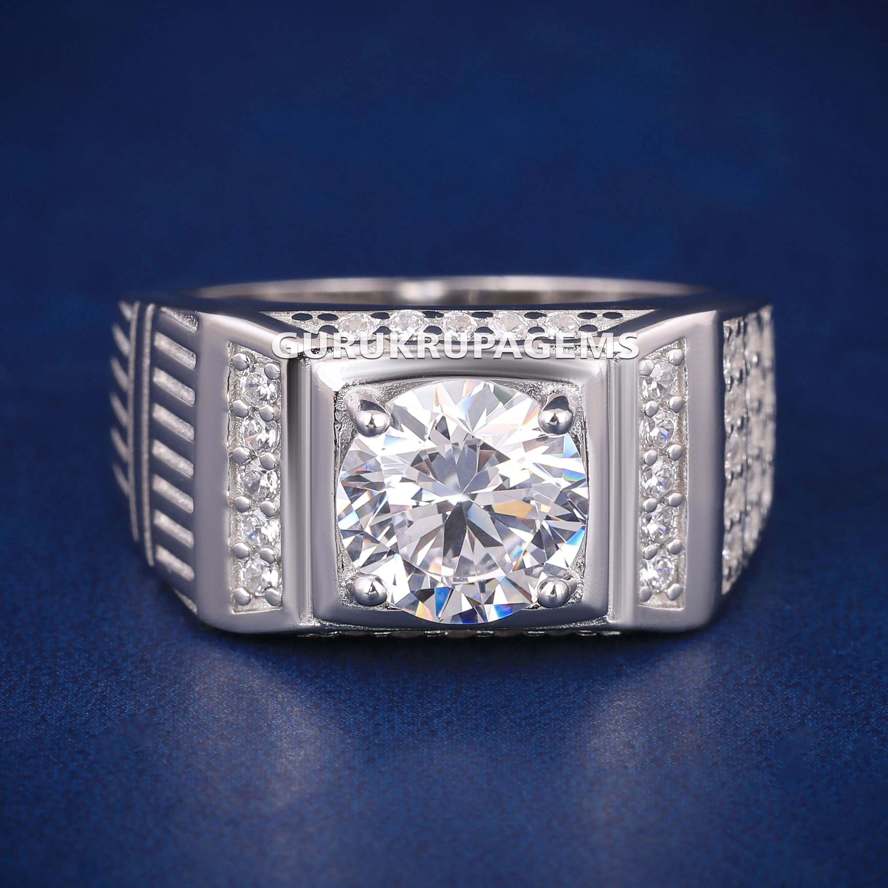 Buy Luxury 925 Silver Wedding Rings for Mens Custom Design Lab Diamond Mens Silver Band Rings