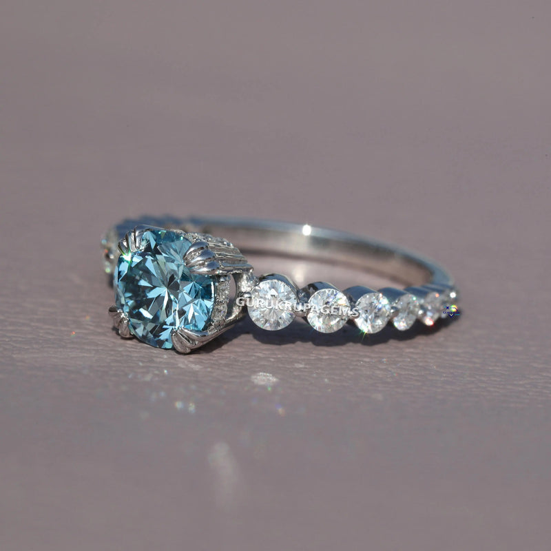 Fine Solitaire Jewelry crafted from 14 kt round cut blue treated diamond ring with vvs clarity