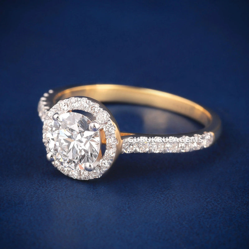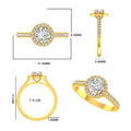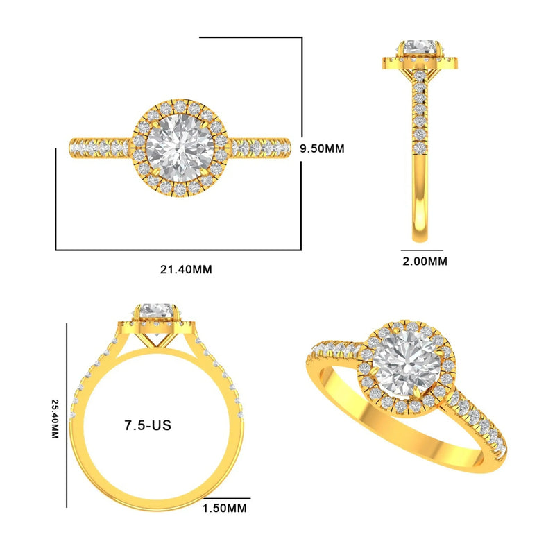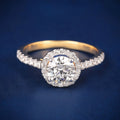Halo Style Round Diamond Engagement Ring with Pavé Band in 14K Yellow Gold