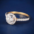 14K Yellow Gold Pavé Band with Halo Style Round Diamond Engagement Ring
