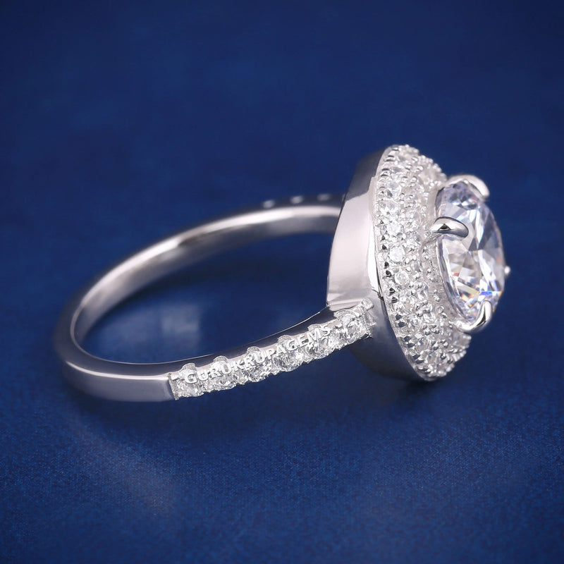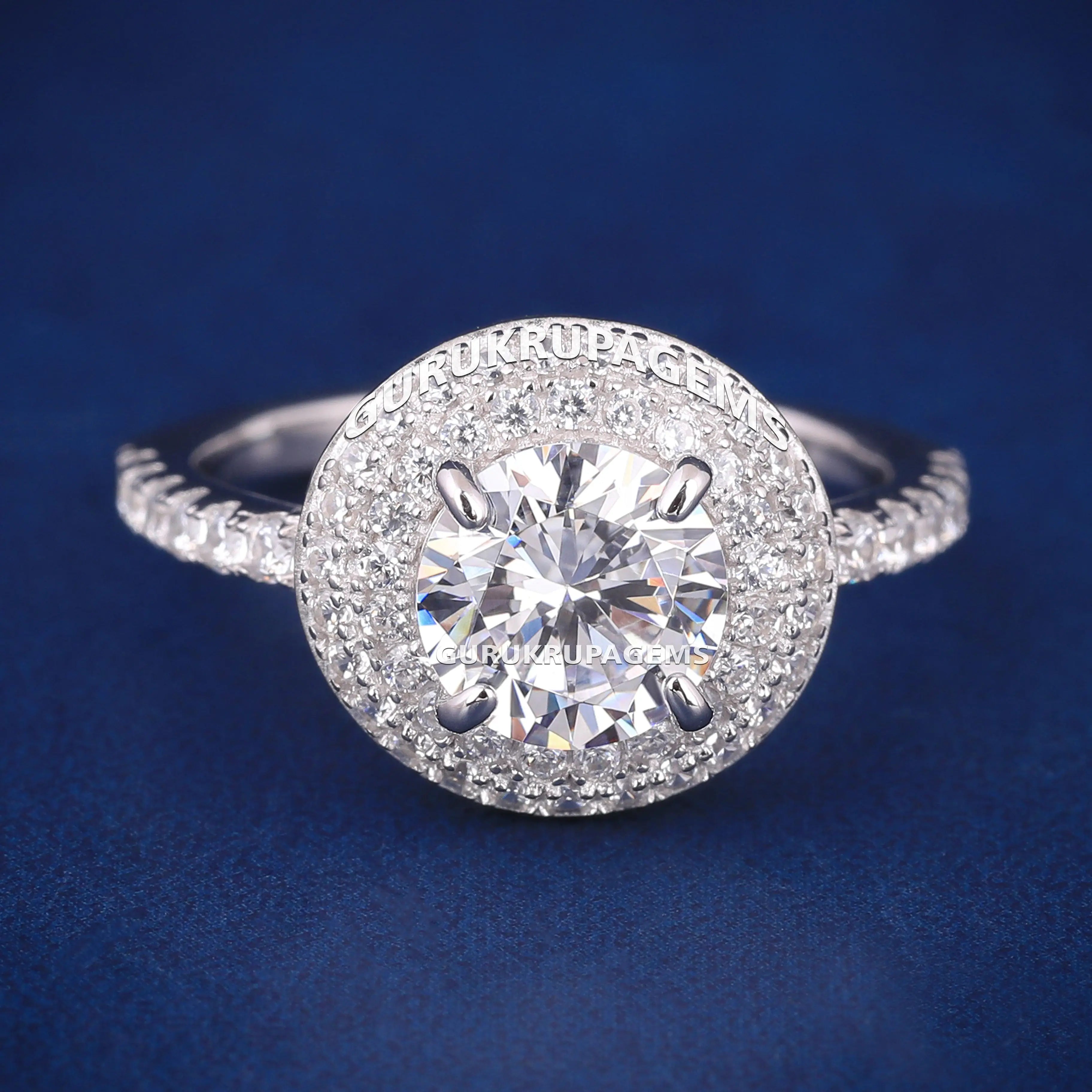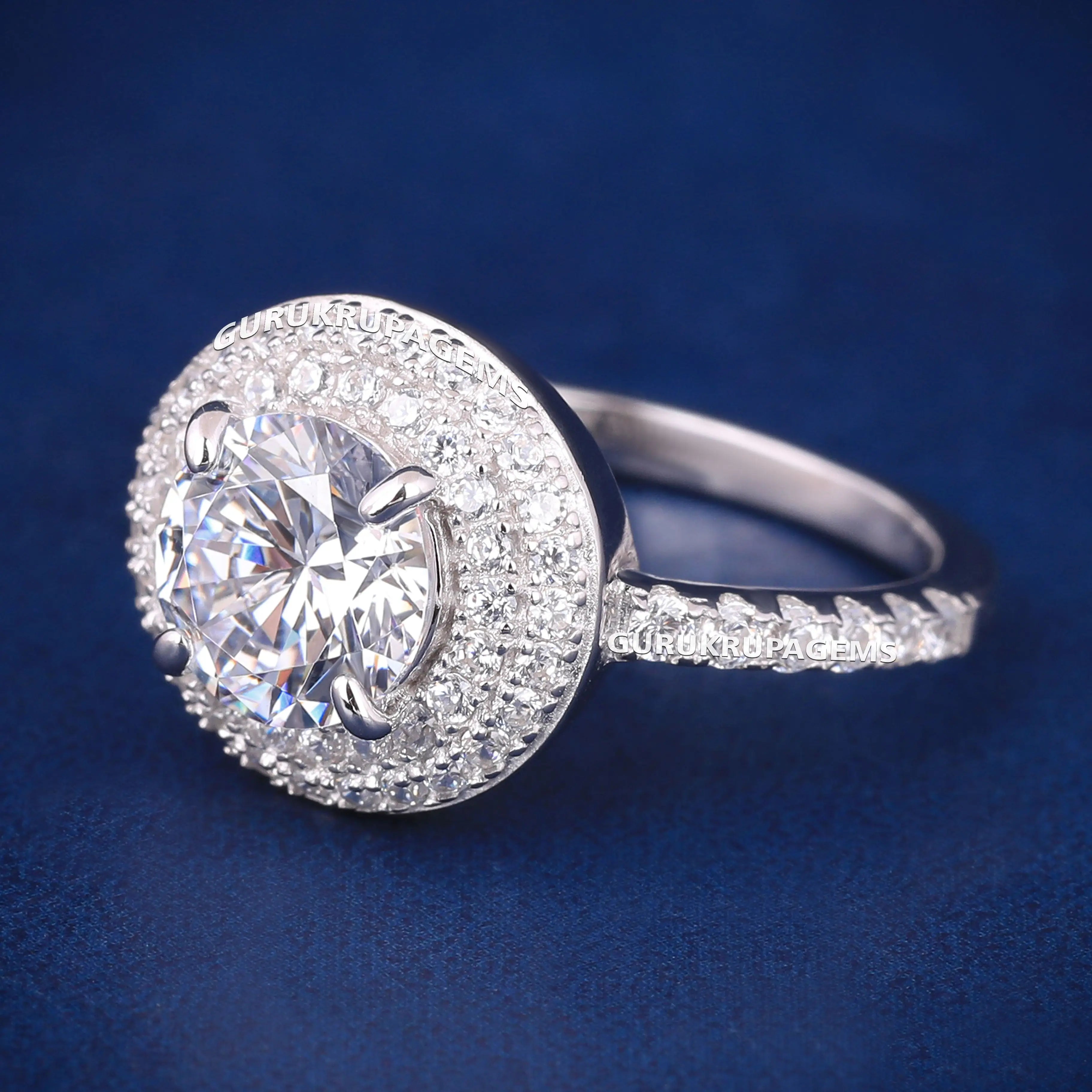 Iced Out Diamond Engagement Rings Double Halo Custom Round Unique Expensive Silver Diamond Rings