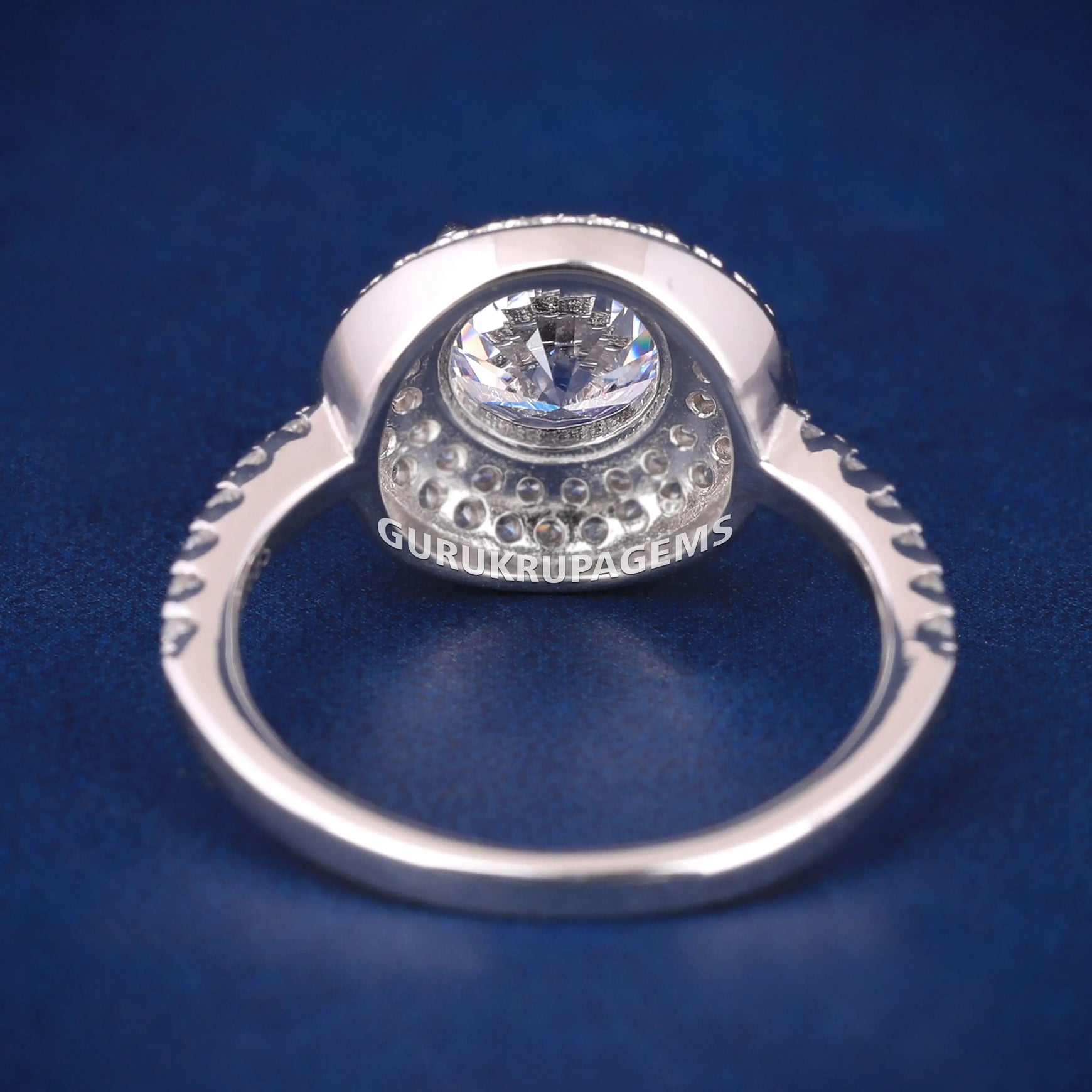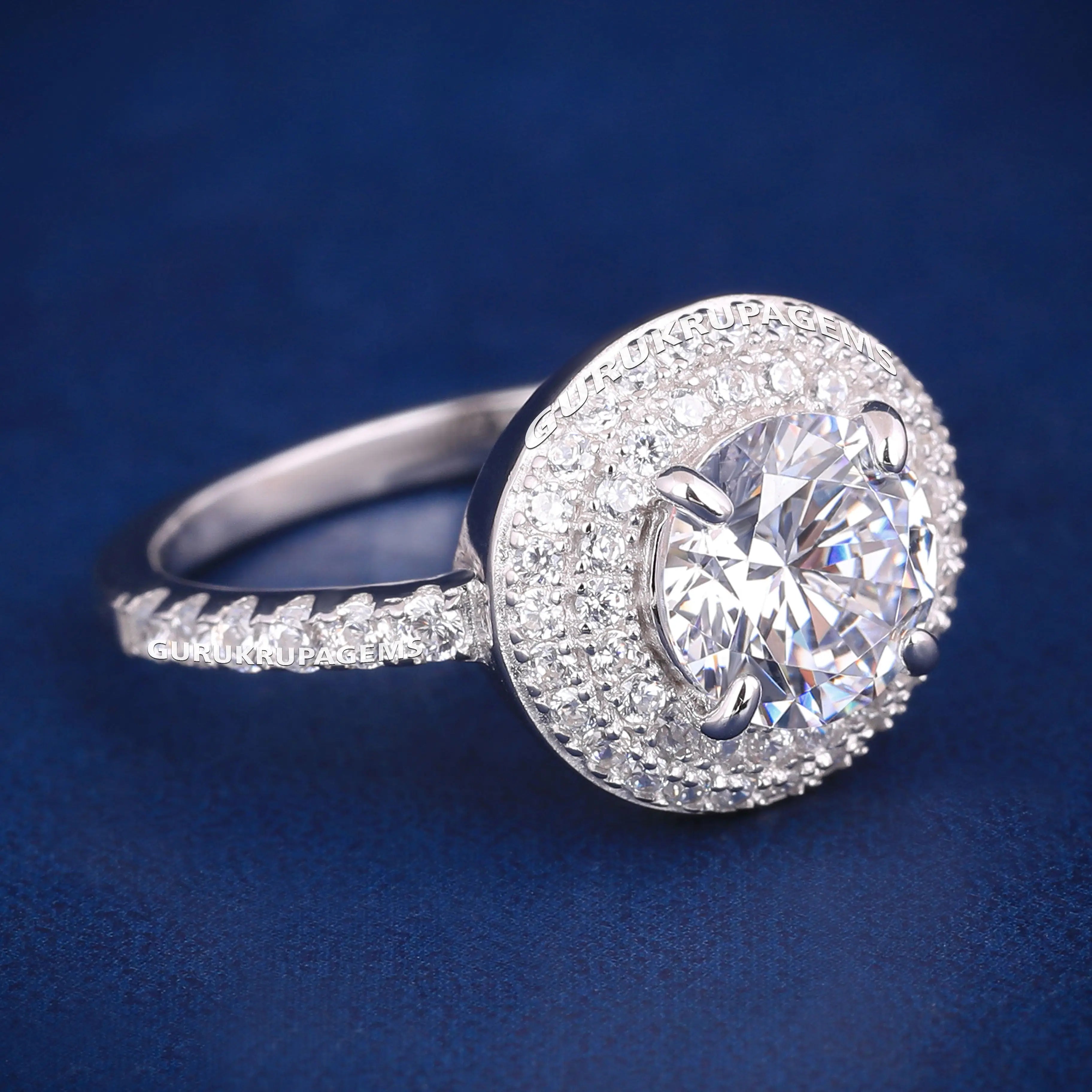 Double Halo Round Design in Unique Expensive Silver Diamond Rings for Engagement