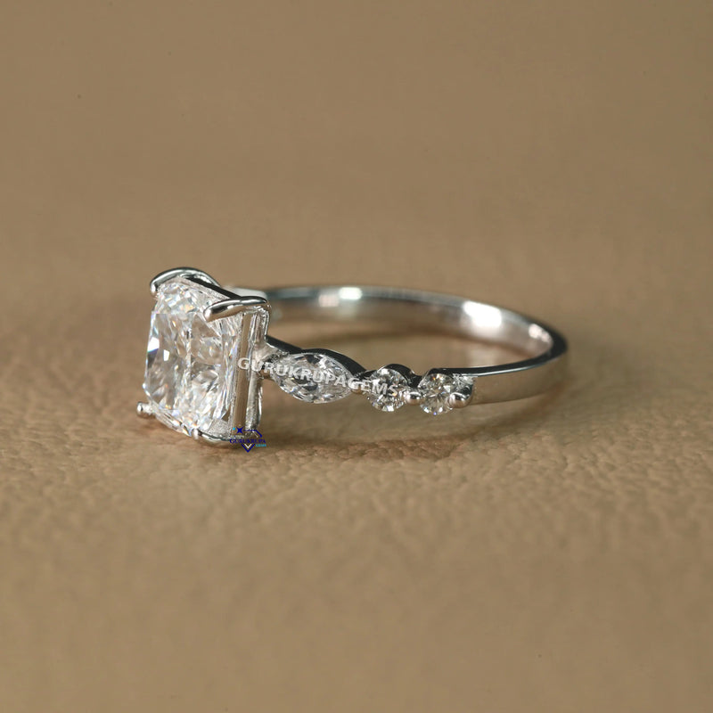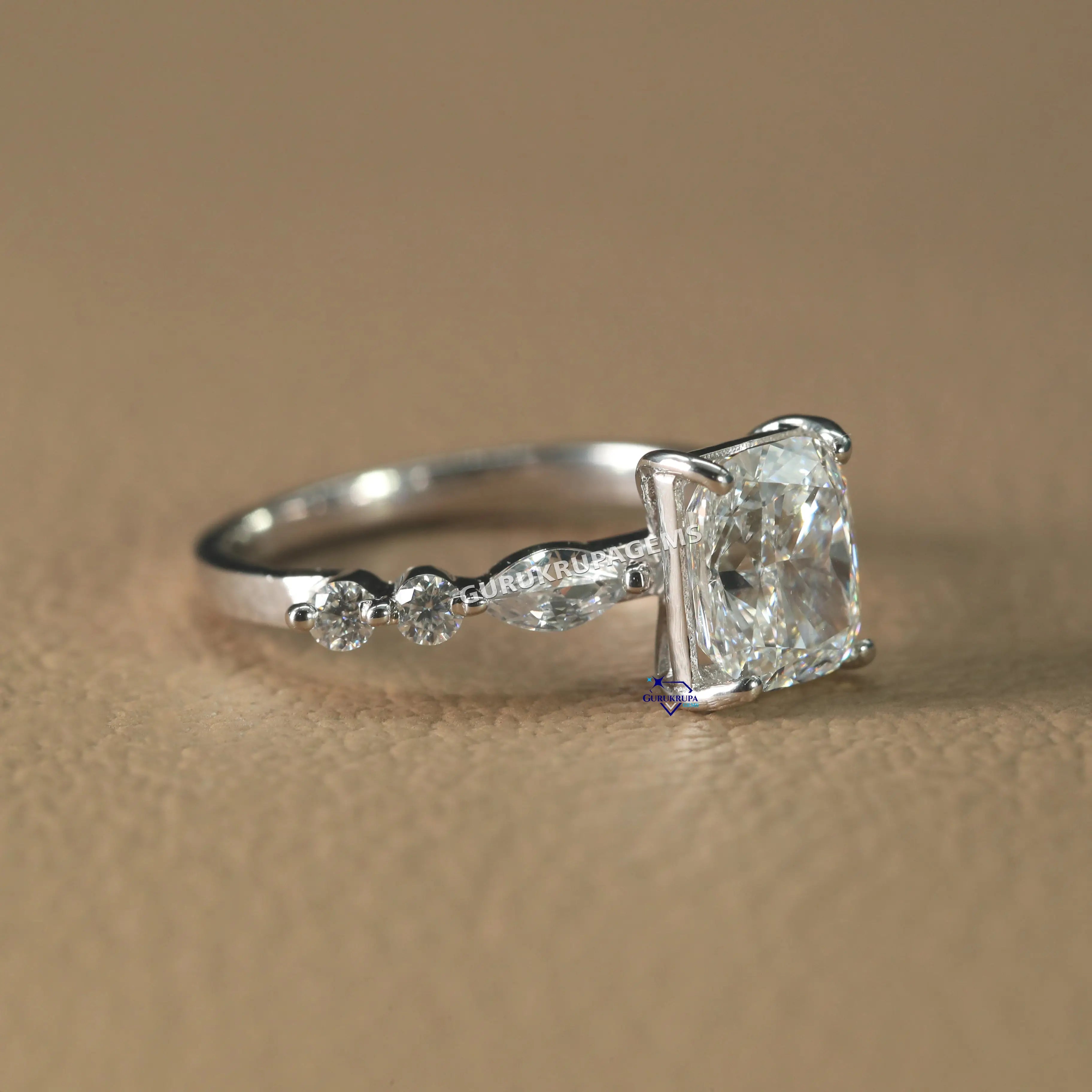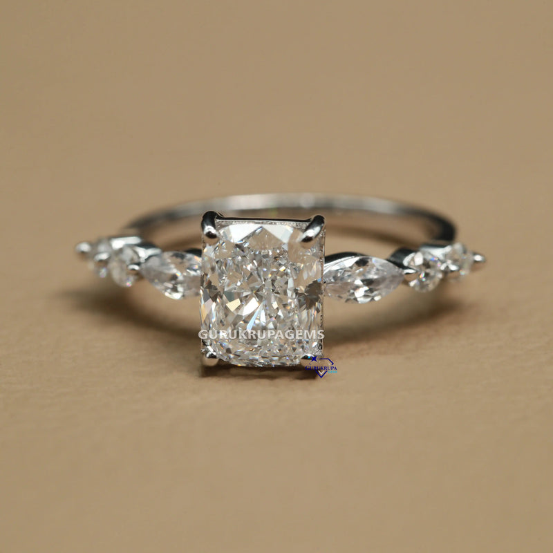 Cushion and Marquise Cut Diamond Ring in 14KT White Gold with VVS Sparkle
