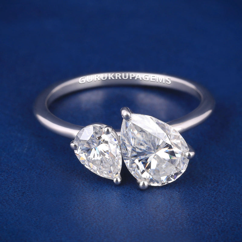 Toi et Moi Engagement Design in Custom Expensive Silver Womens Diamond Rings with Pear Cut Lab Diamonds
