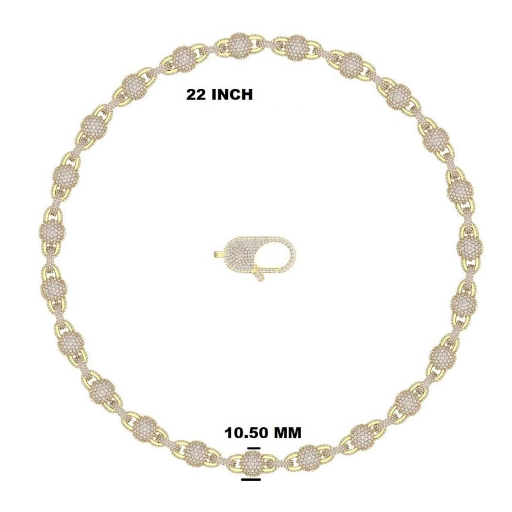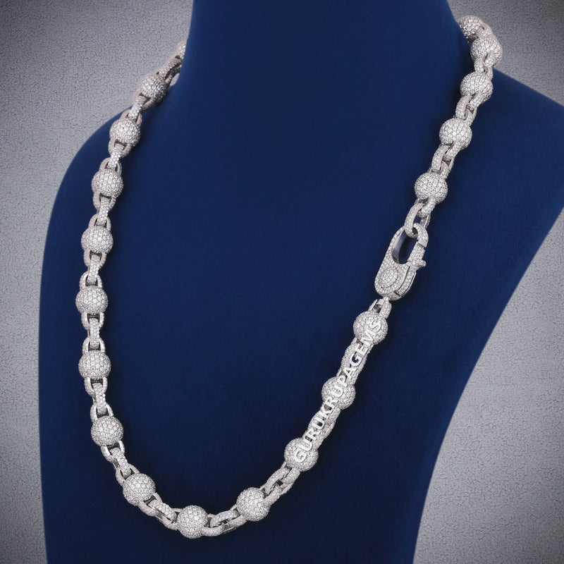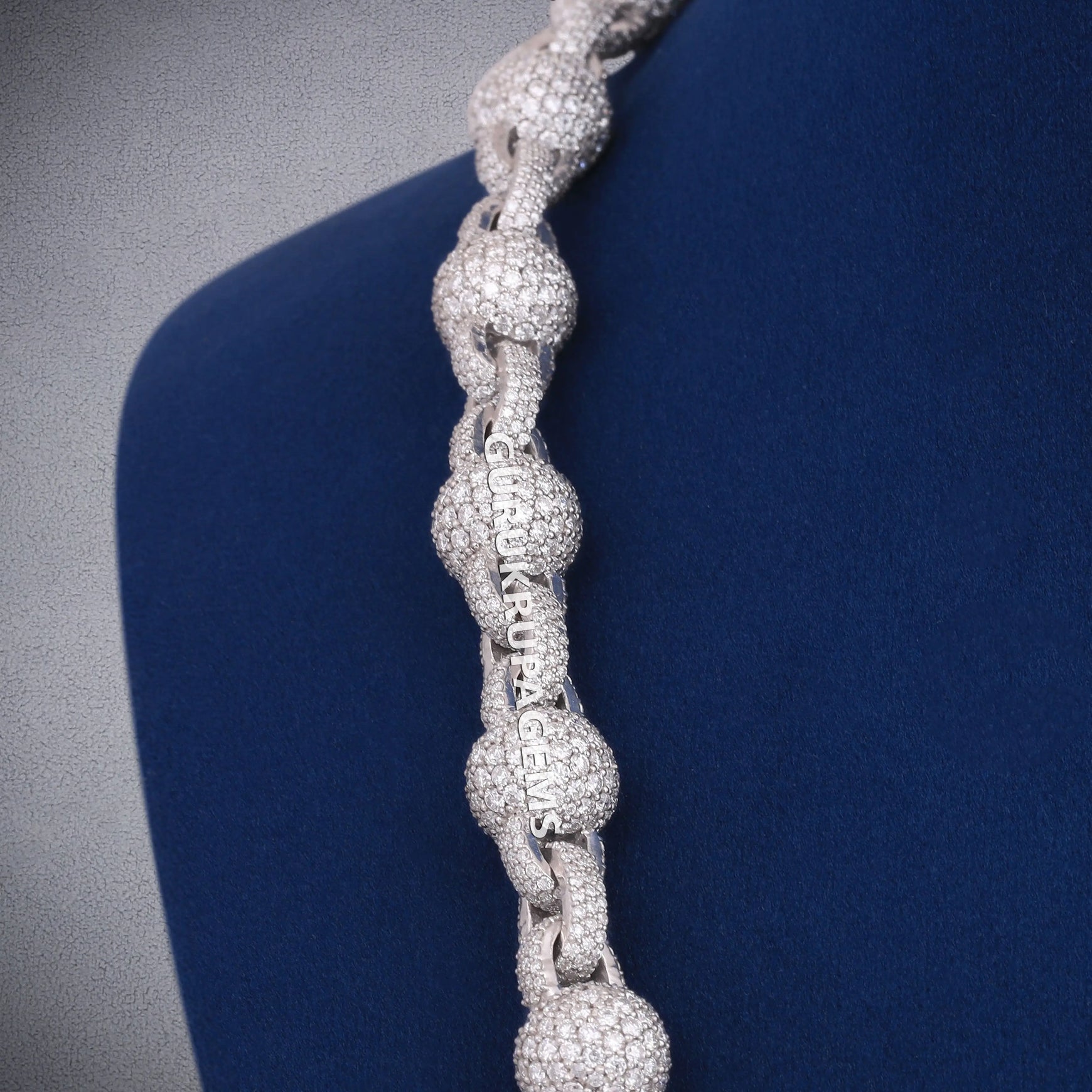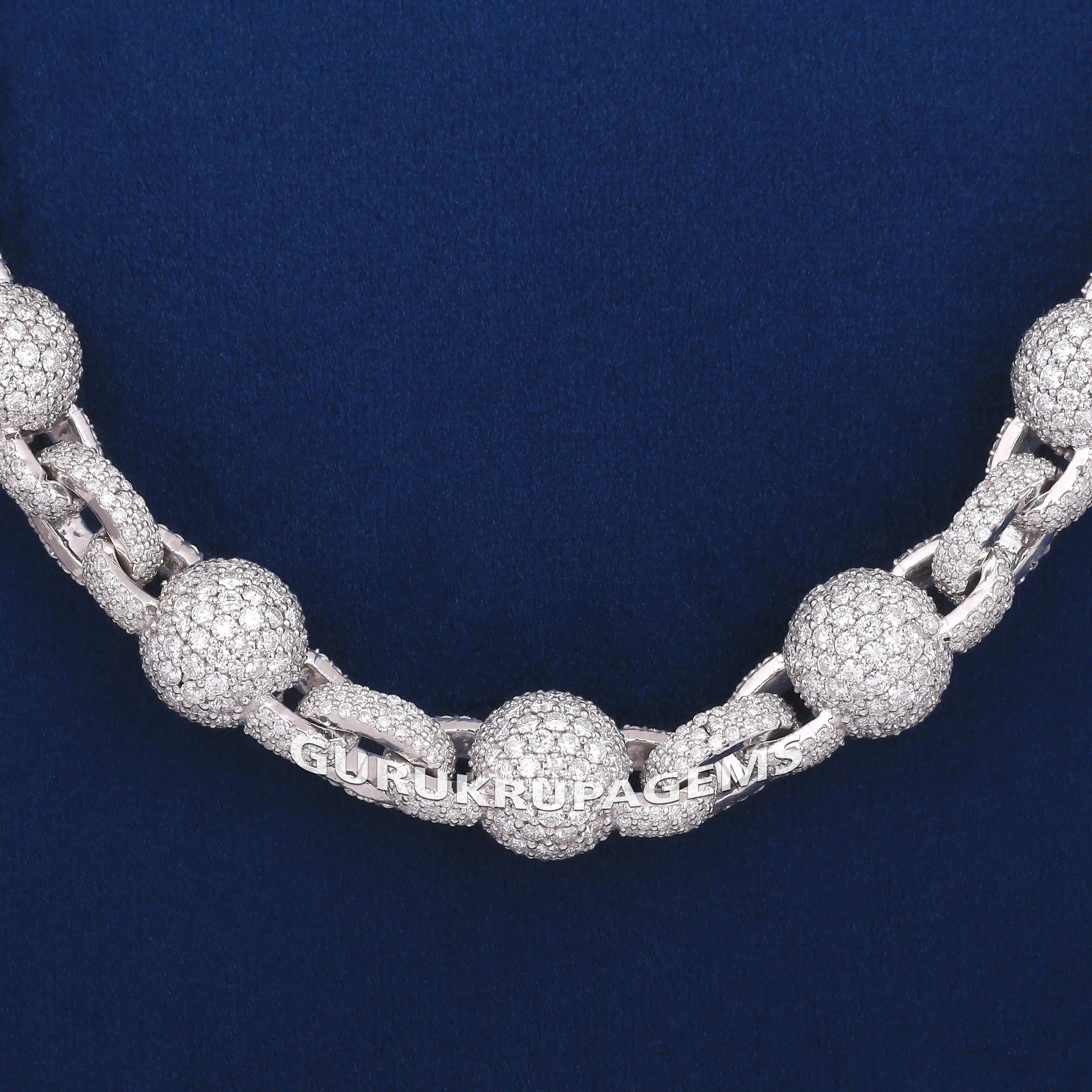 10.5MM Necklace Chain for Mens Womens Fully Iced Out Ball Link Beads VVS Diamond 925 Silver 22 inch Miami Ball Necklace