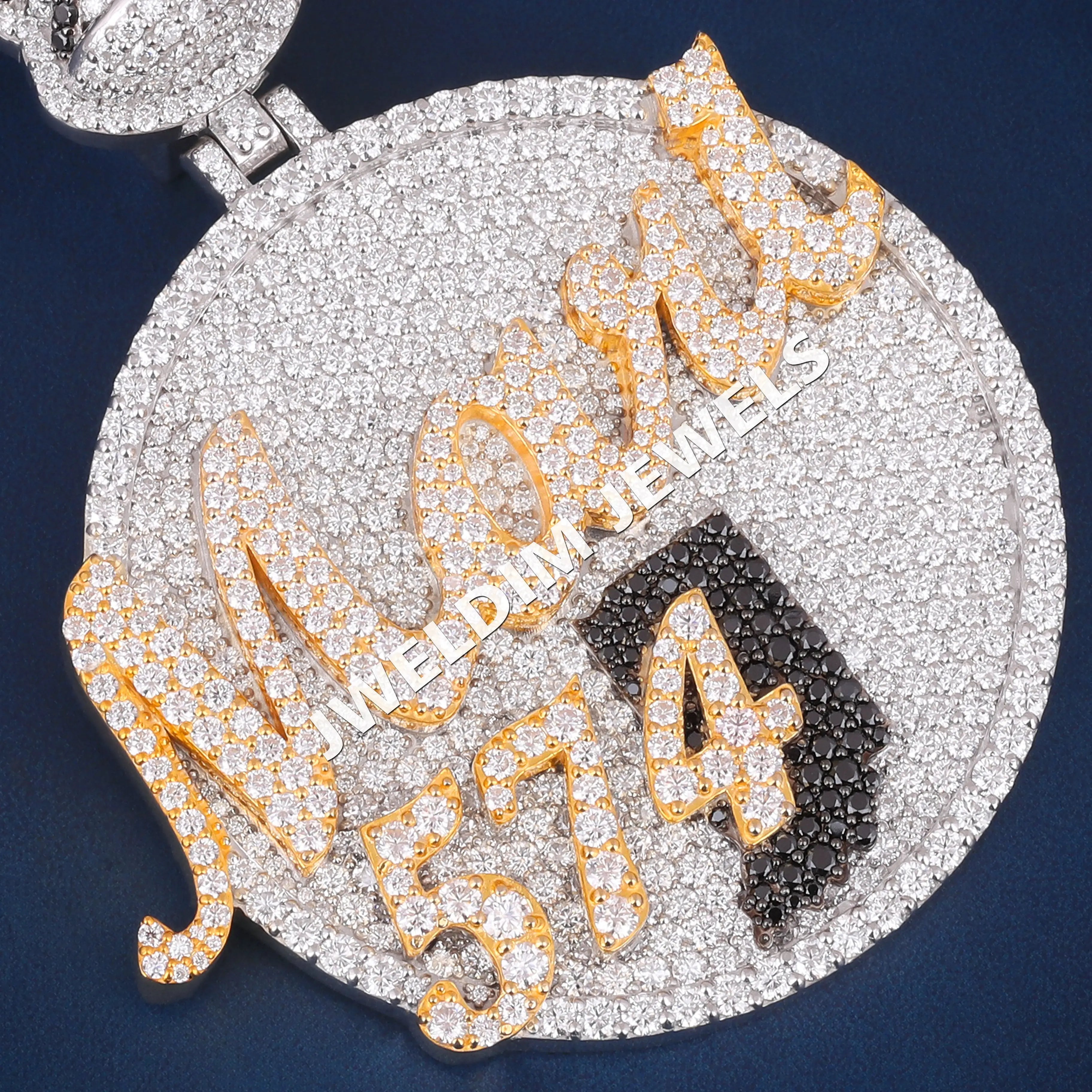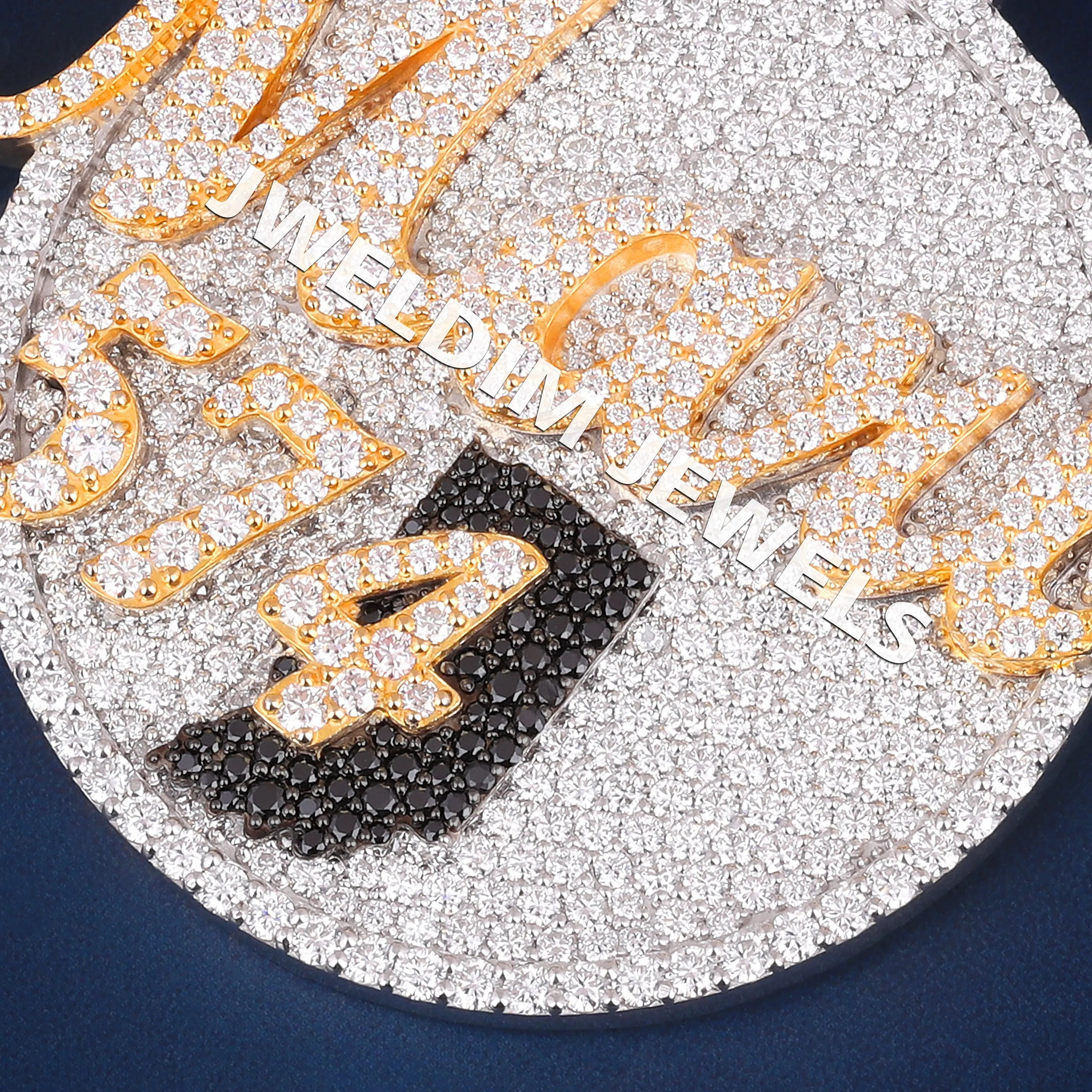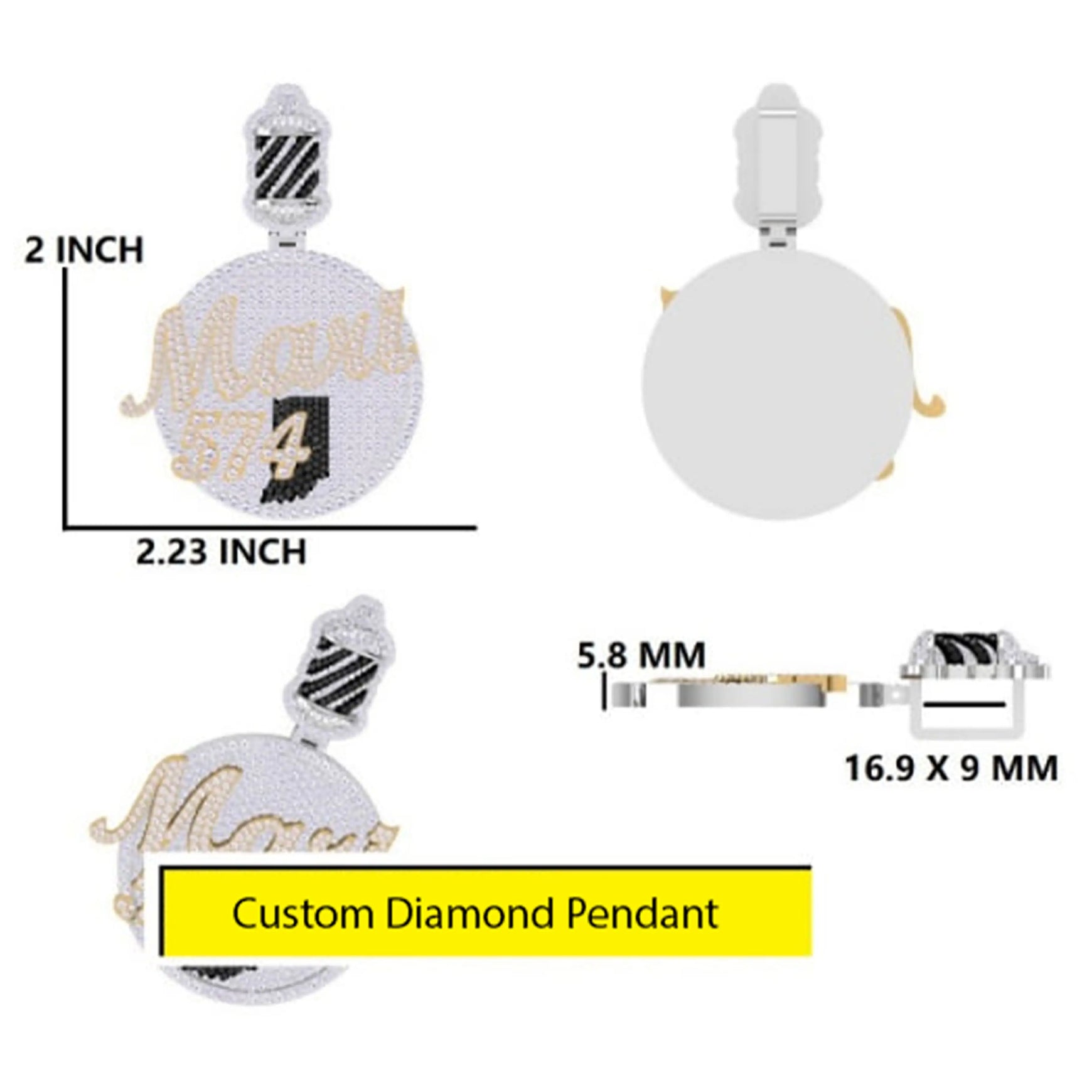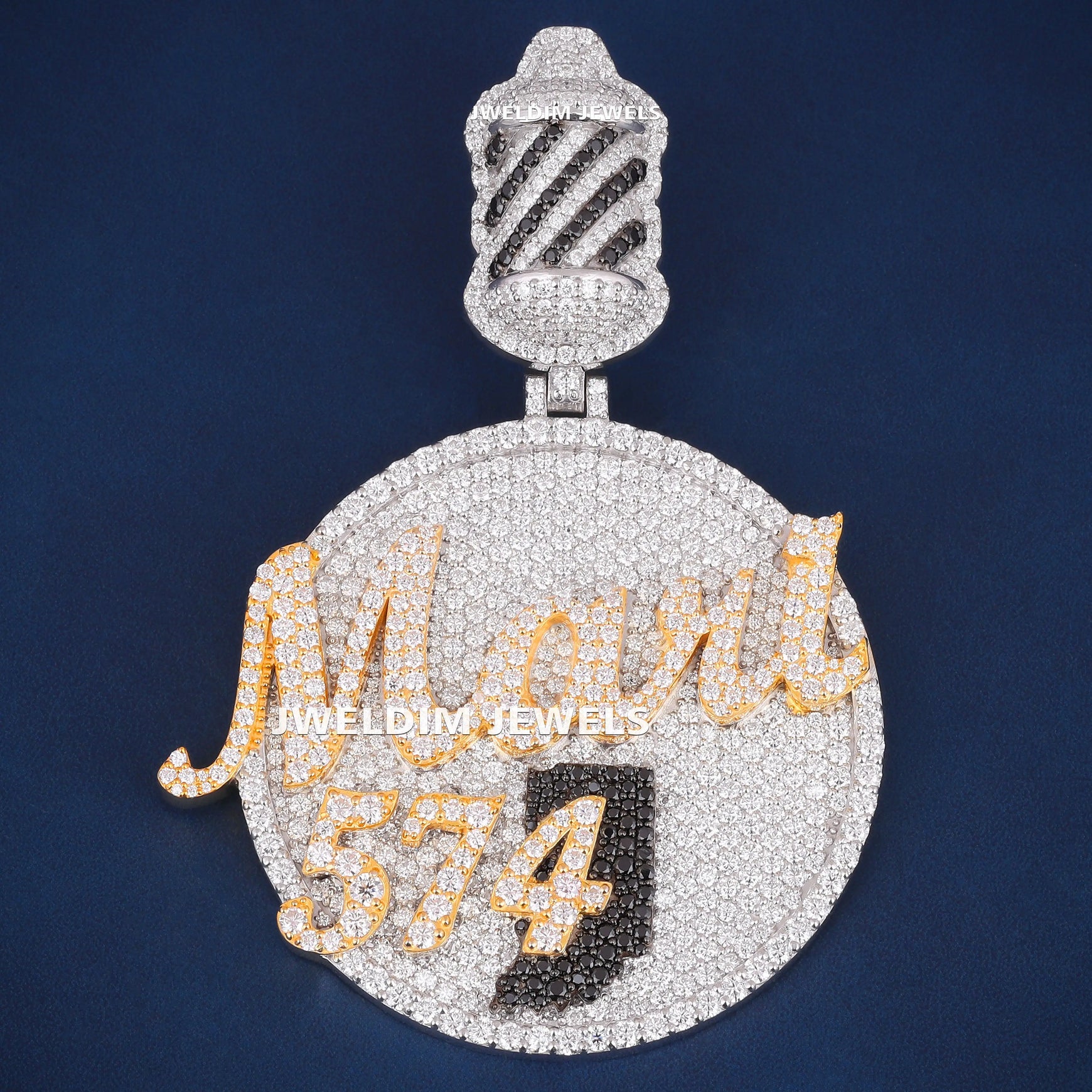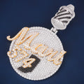 Custom jewelry crafted in a modern circle name with number design pendants style
