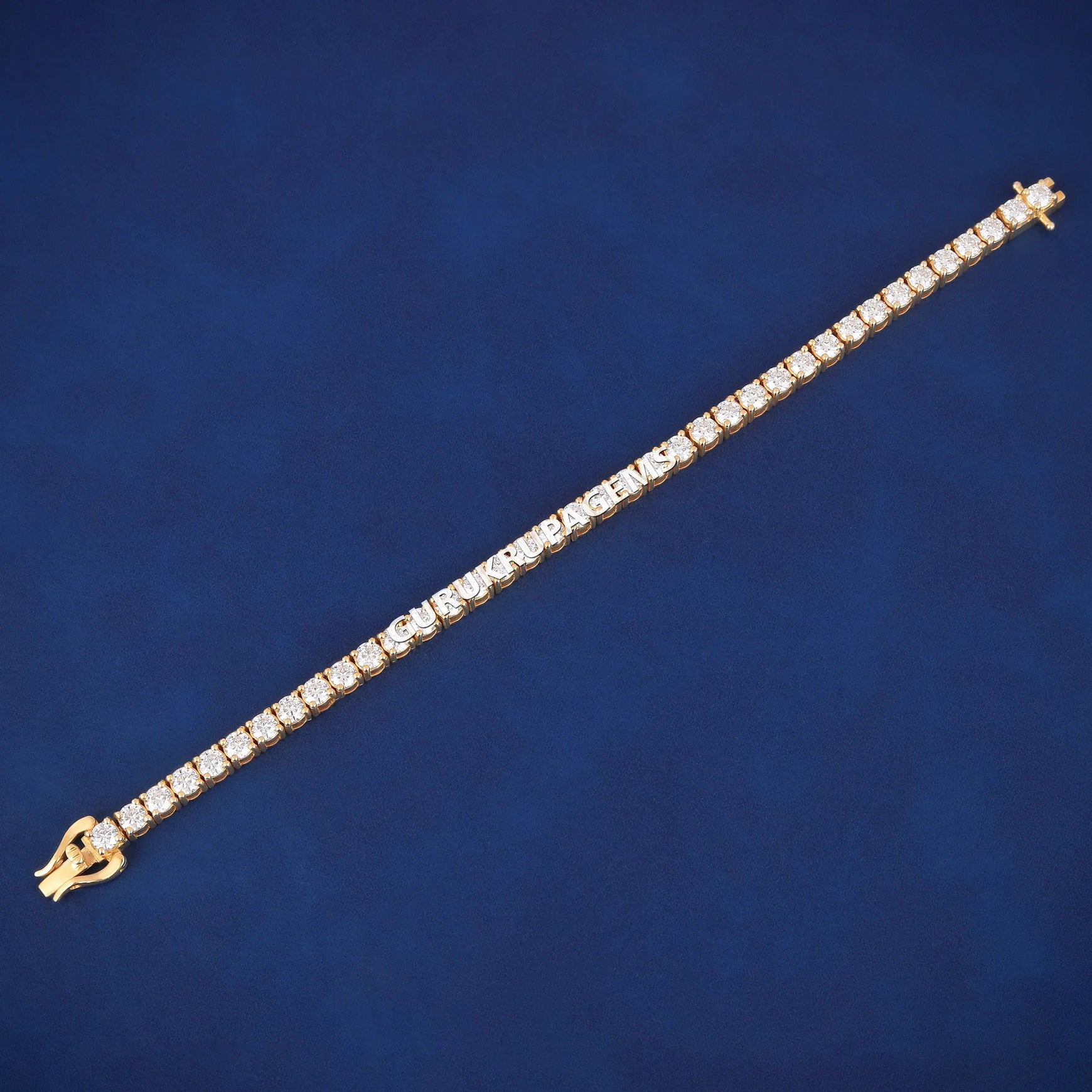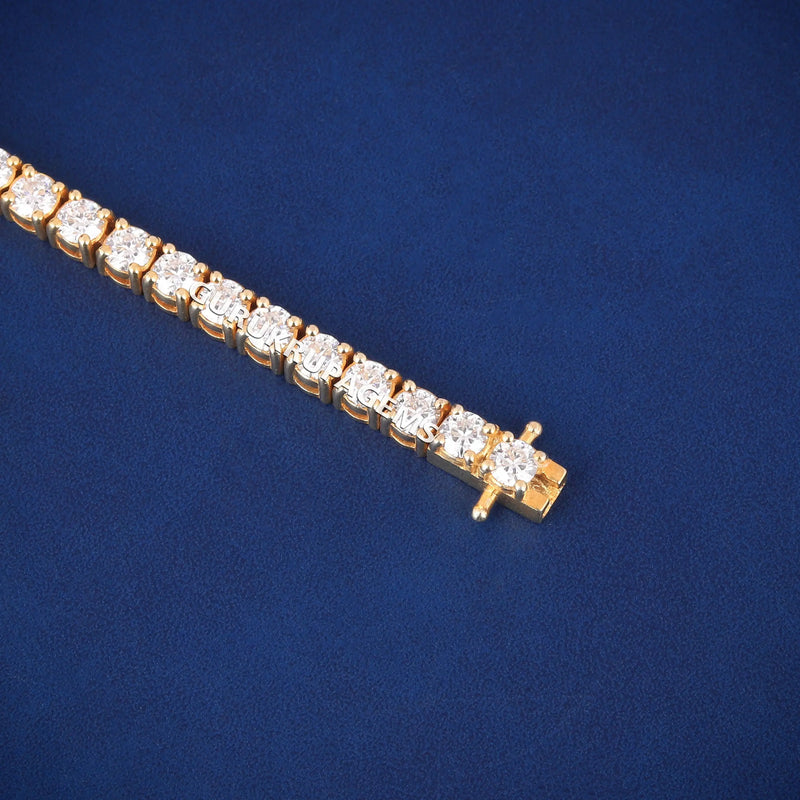 14kt Yellow Gold Plated VVS Round Diamond 4mm Tennis Bracelet for Mens Womens