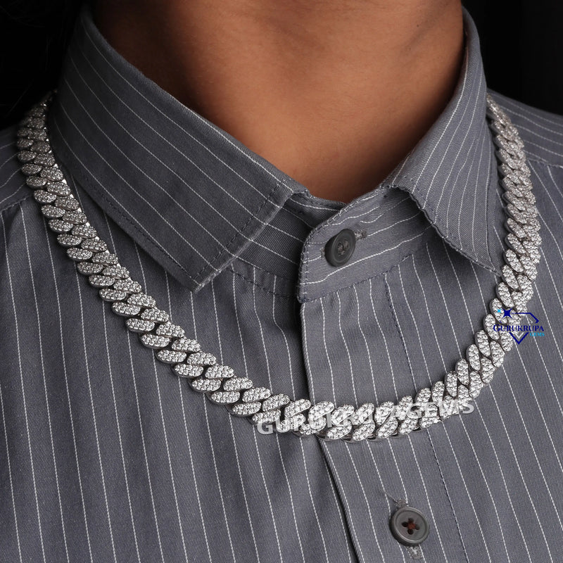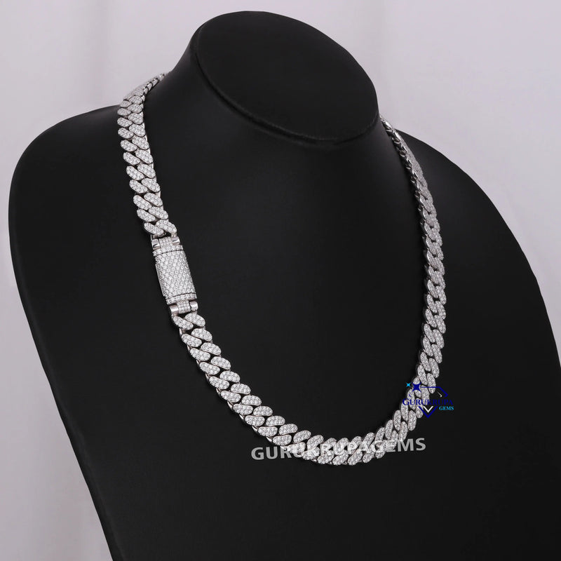 18 inch 10 mm minimalist designer cuban chain made in 14 kt gold with moissanite diamonds vvs clarity