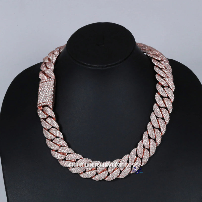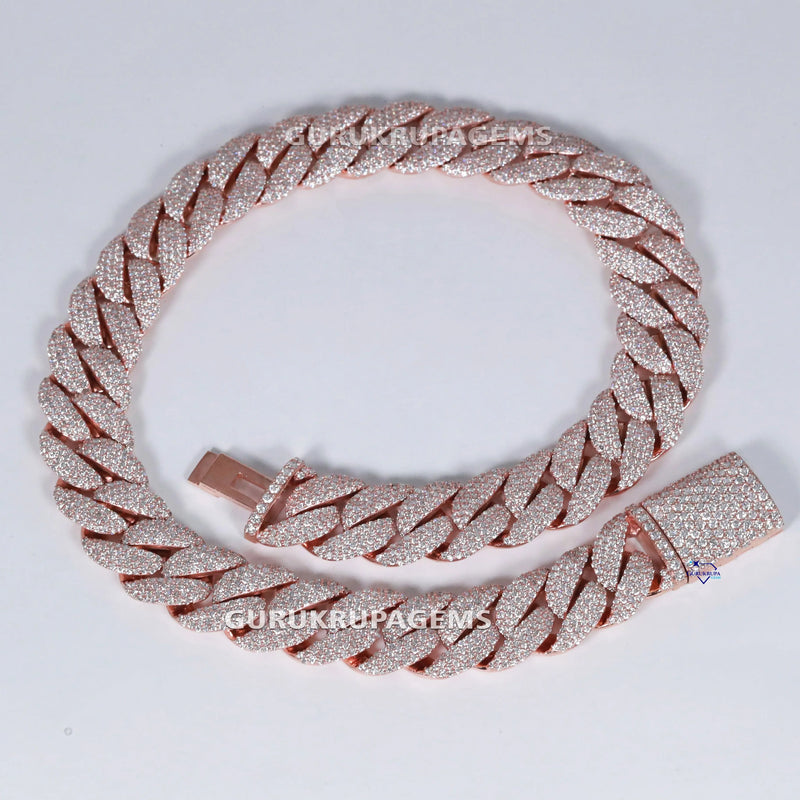 Rose gold diamond chain for men in bold Cuban style with intense VVS brilliance