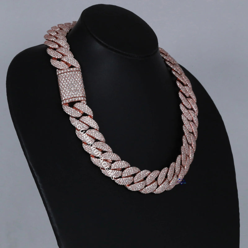 20 inch 20 mm classic studded cuban link 14 kt rose gold diamond chain for men with vvs clarity diamond
