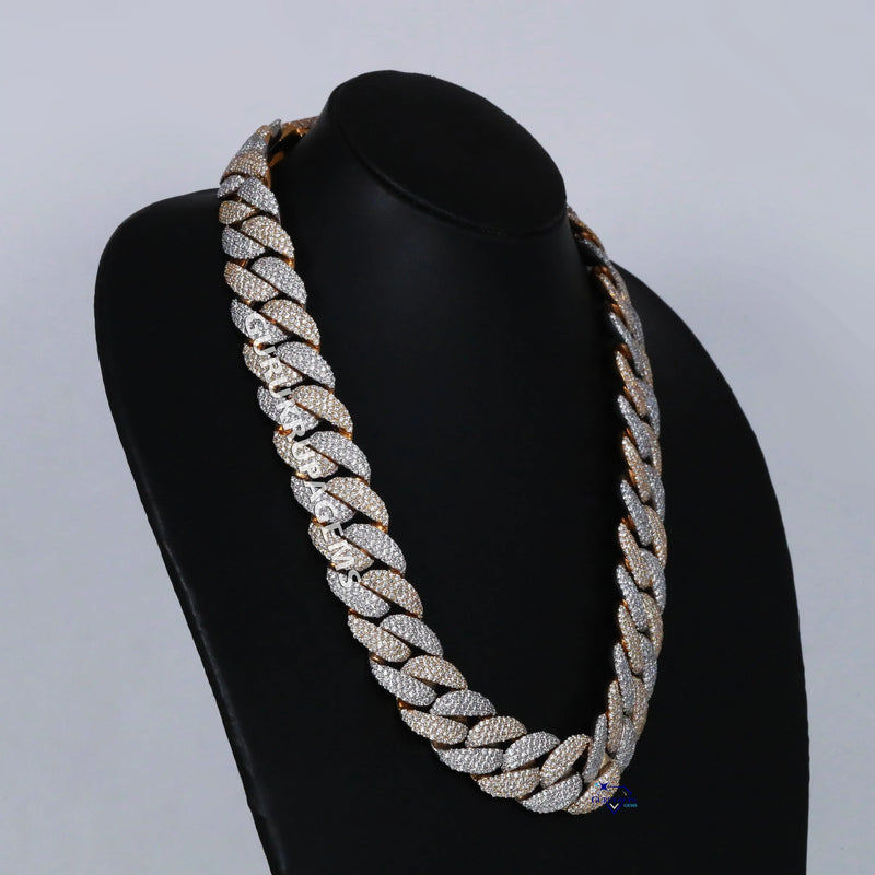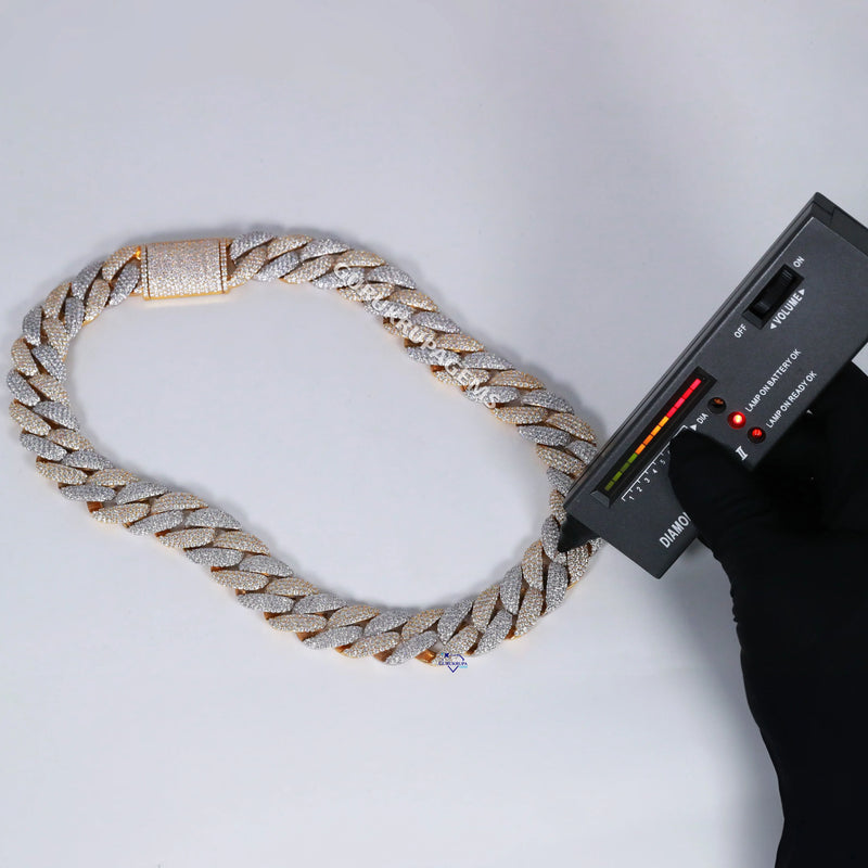 20 inch 20 mm presenting a white and yellow gold Cuban chain showcases VVS clarity