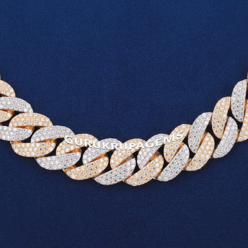 22 inch 14mm Two Tone Silver Yellow 14k gold Moissanite Cuban Link Chain Biggest rapper Chains