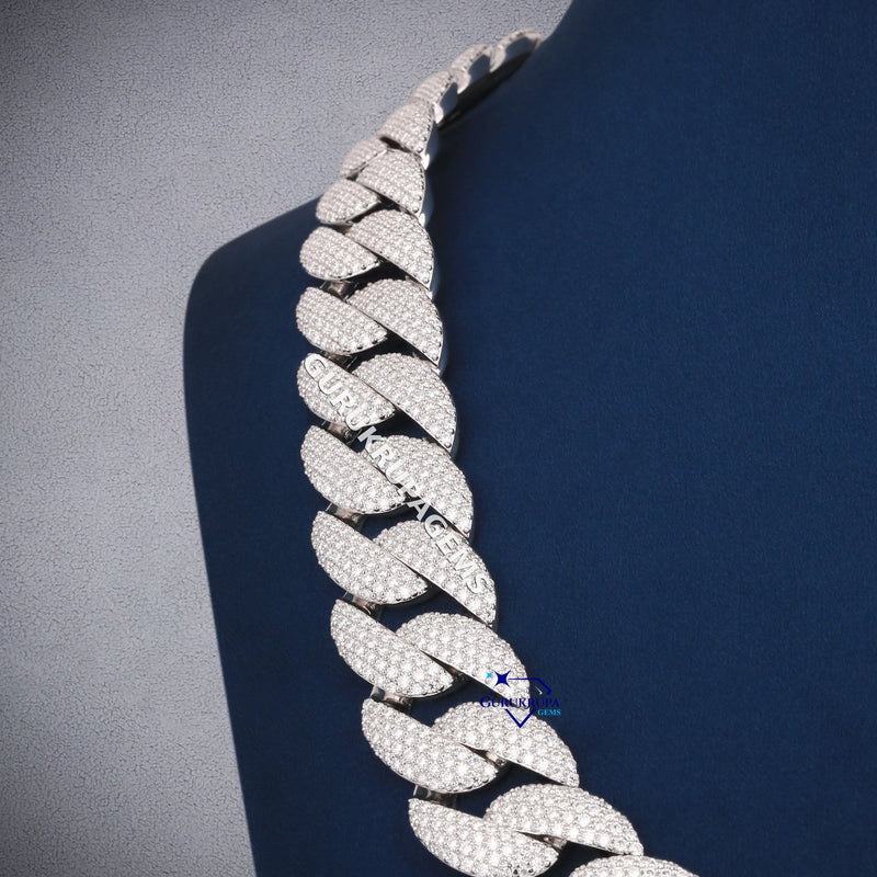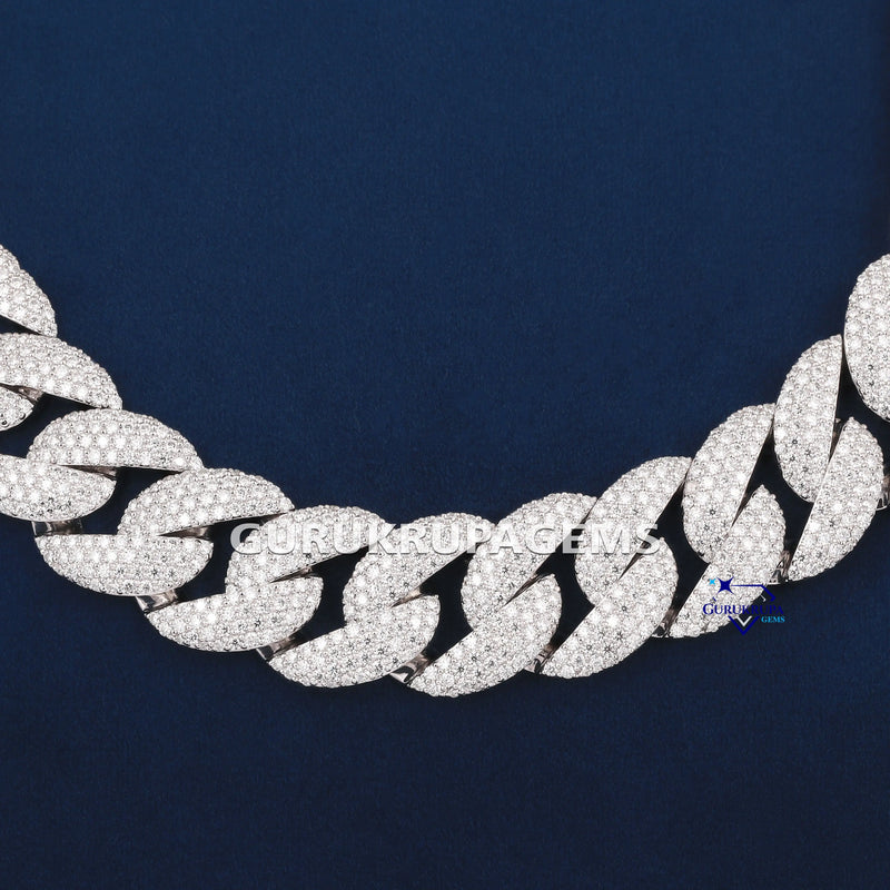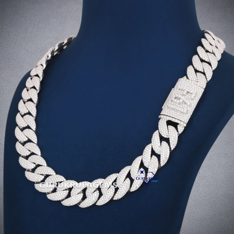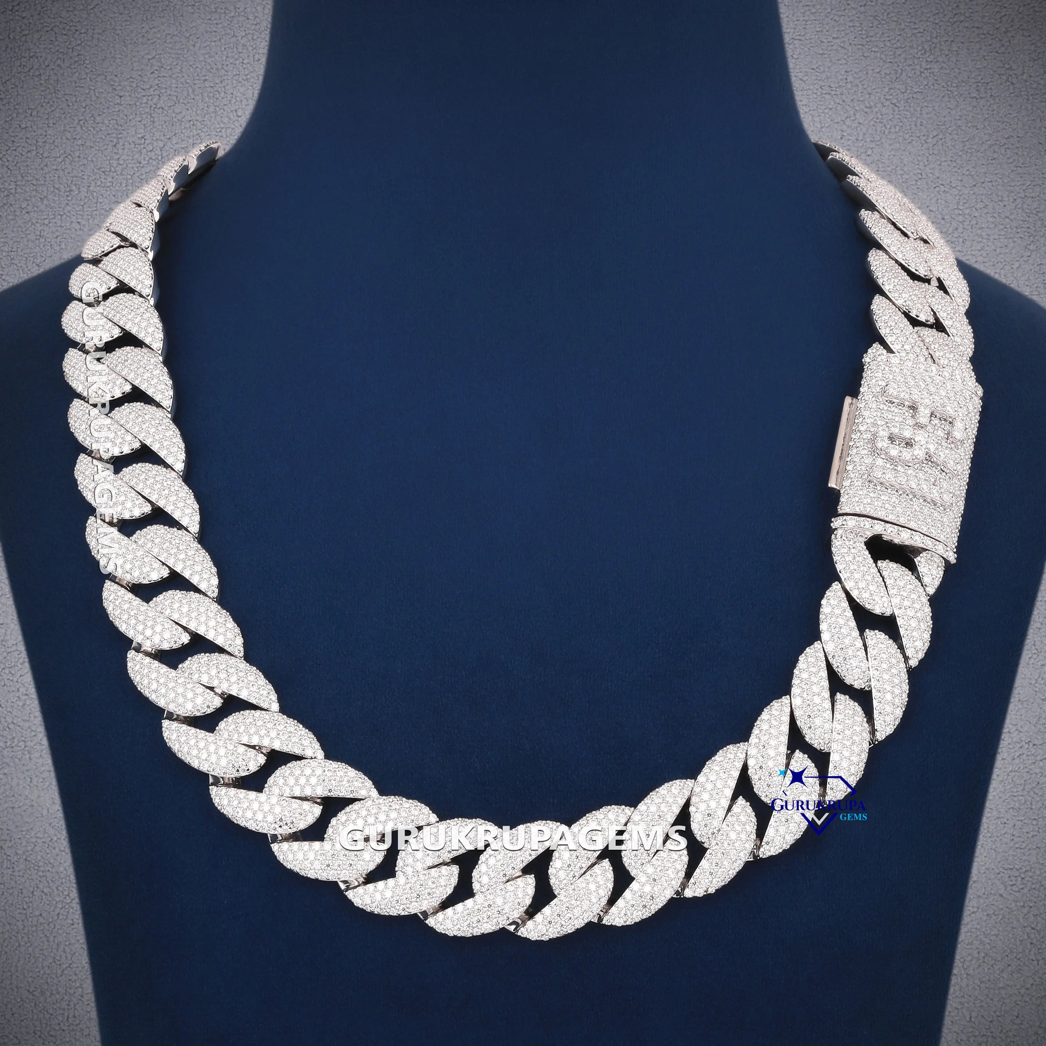 22 inch 20 mm hiphop full white cuban diamond chain vvs clarity