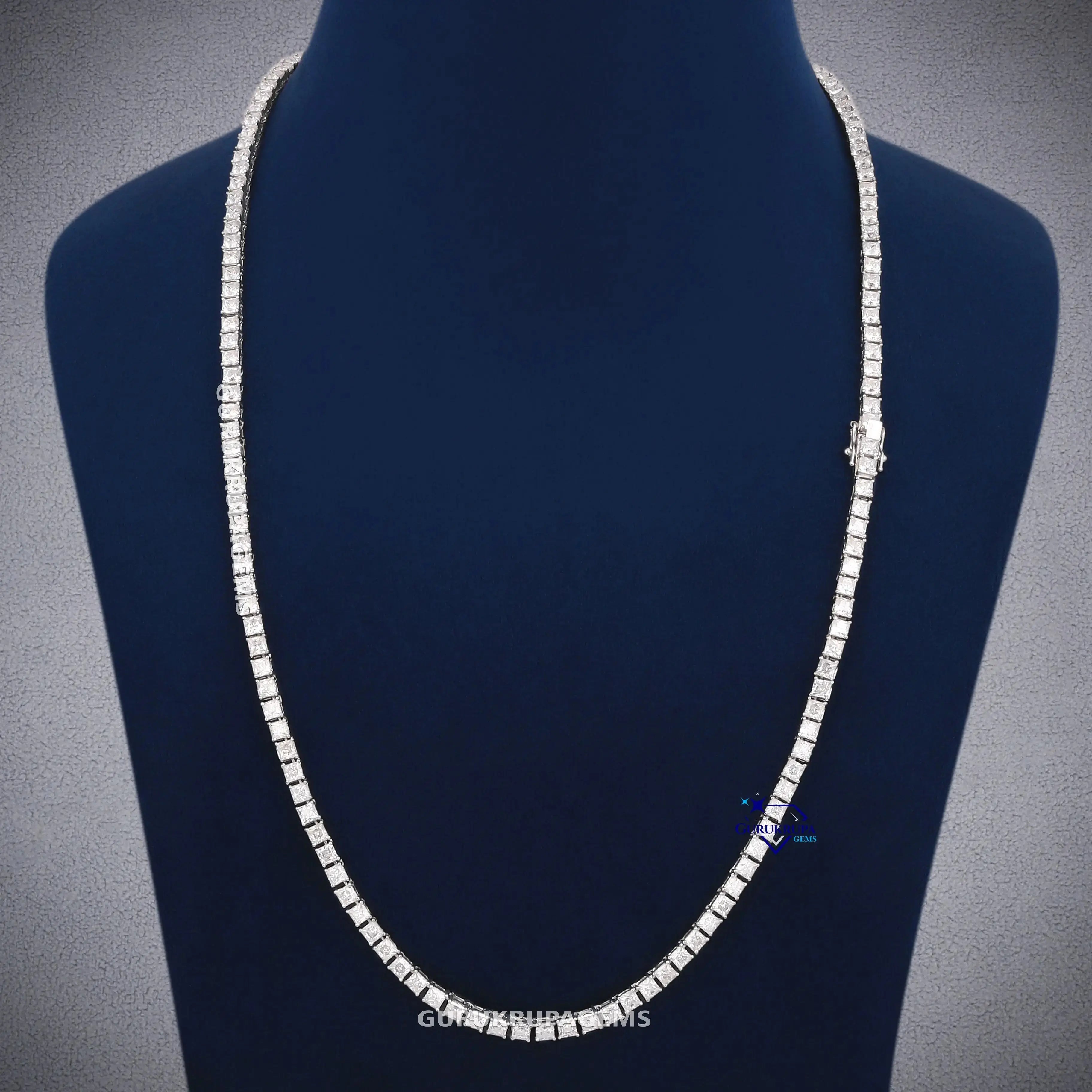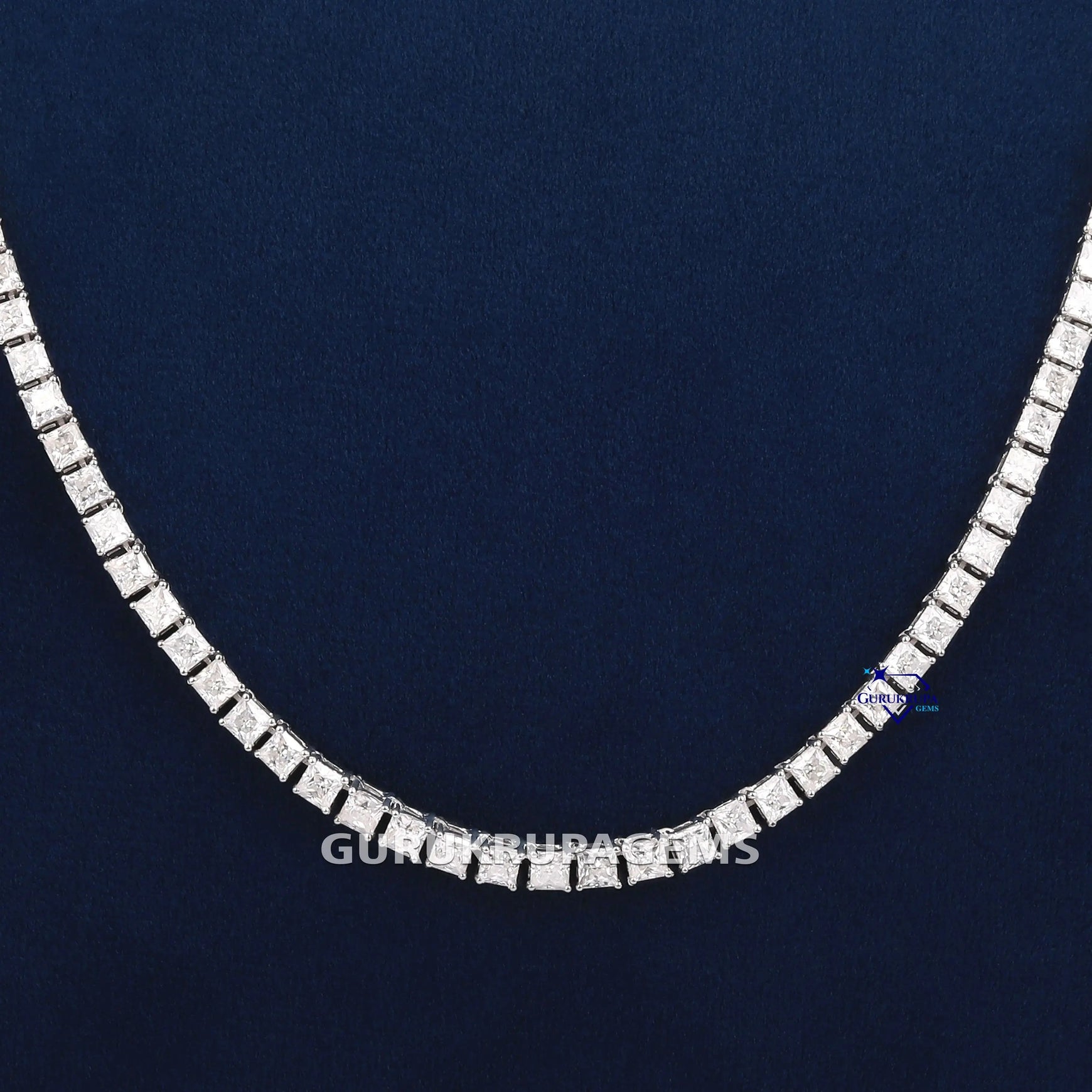 3.5mm Princess Cut Tennis Necklace – Full White Drip in 22 Inch Style