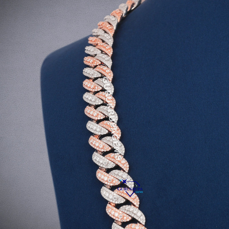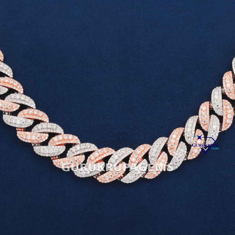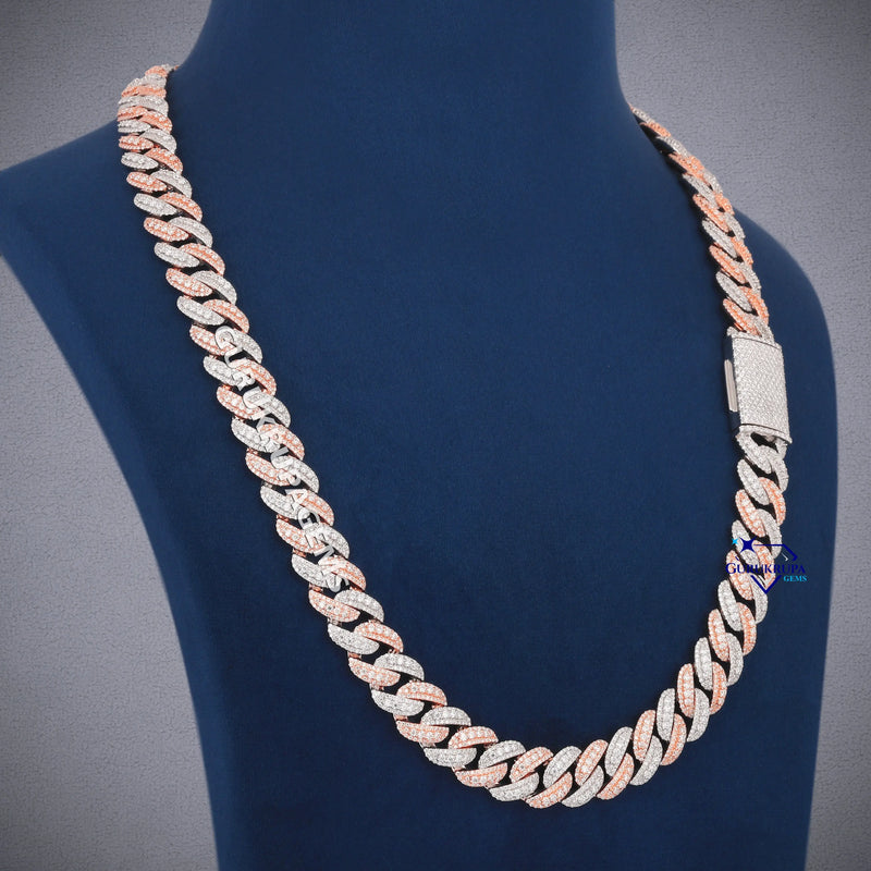 13MM 24 Inch Two Tone Cuban Diamond Chain with VVS Clarity Stones