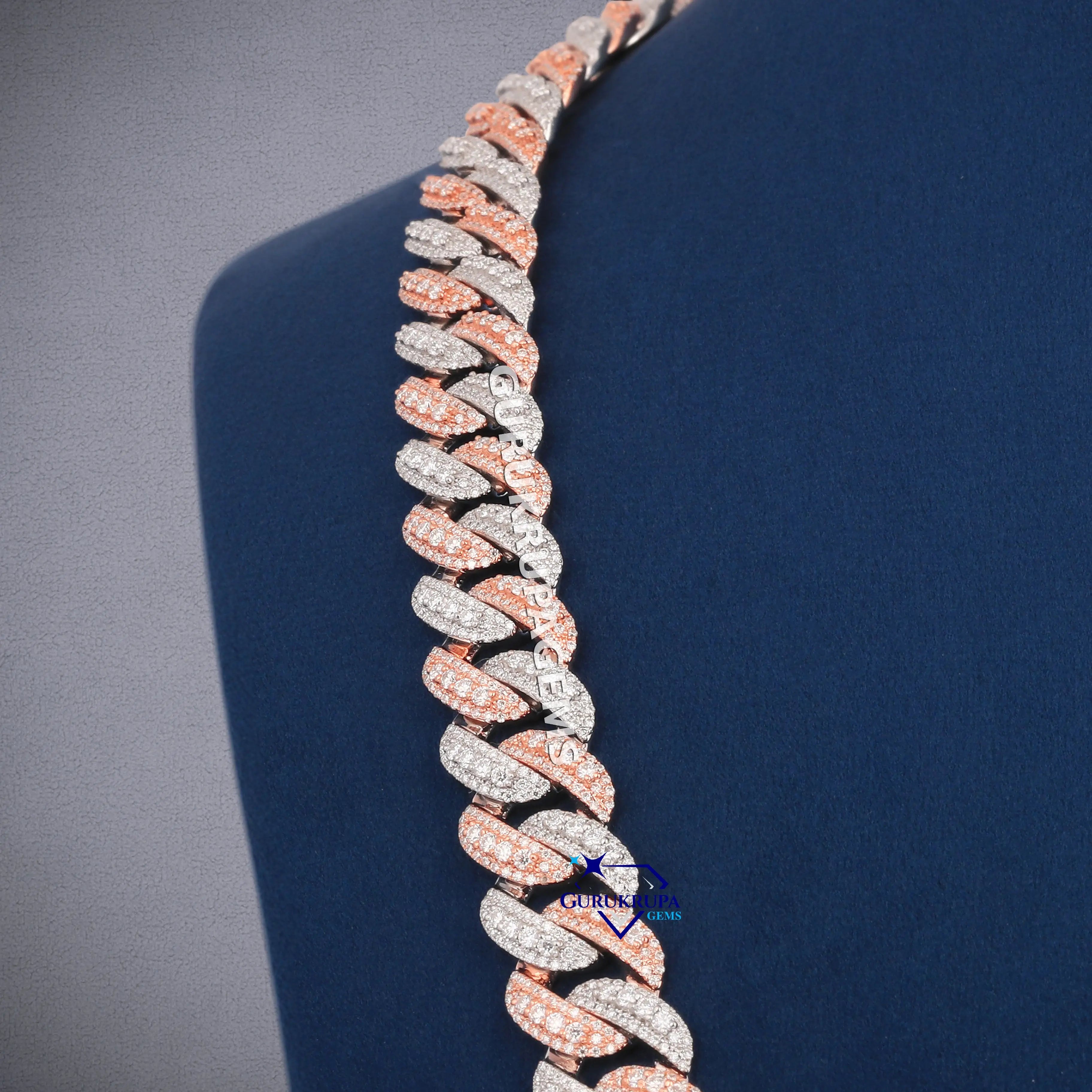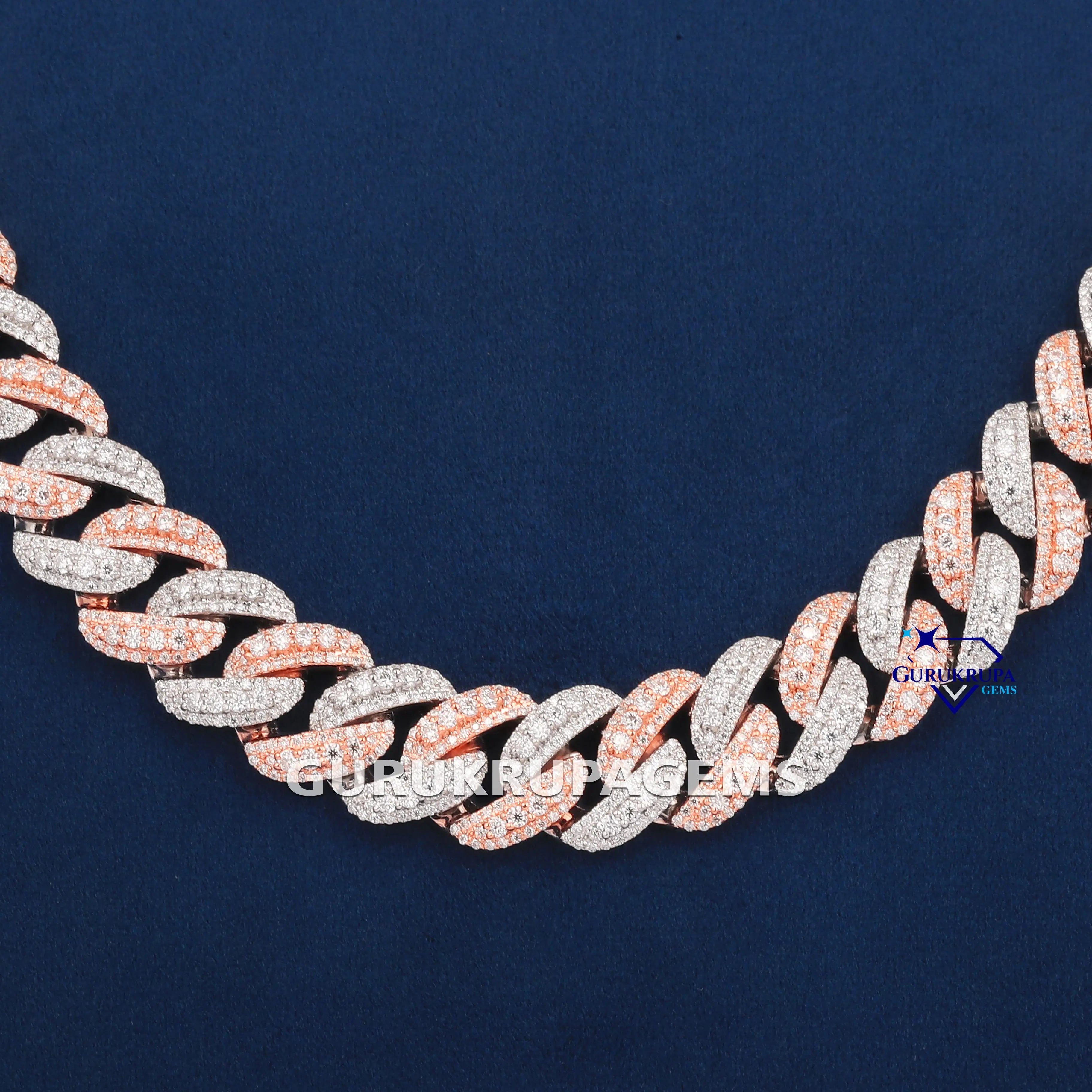 24 inch 13 mm two tone cuban diamond chain vvs clarity