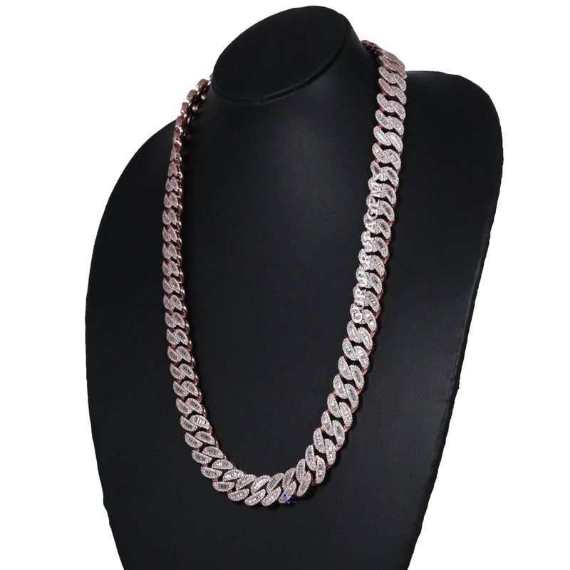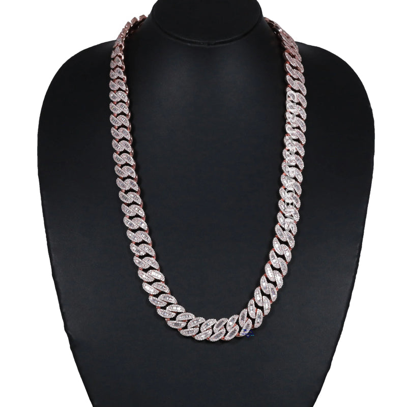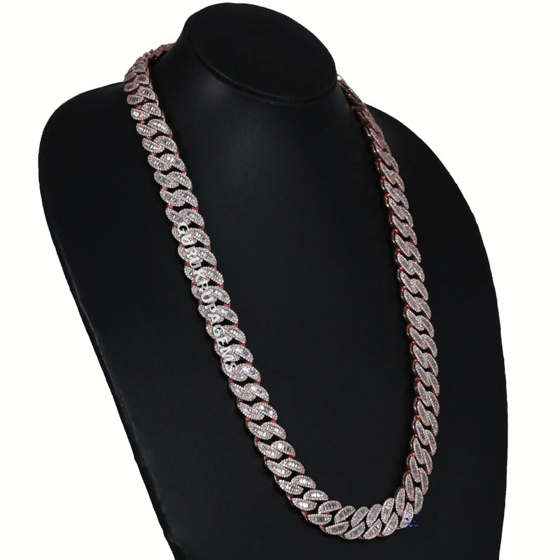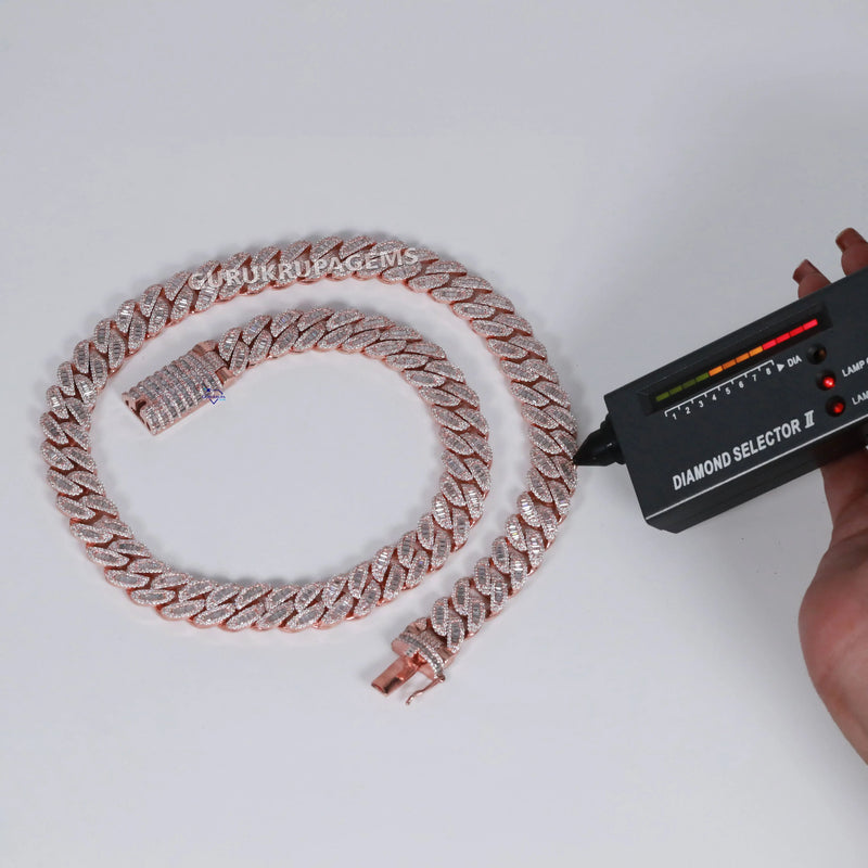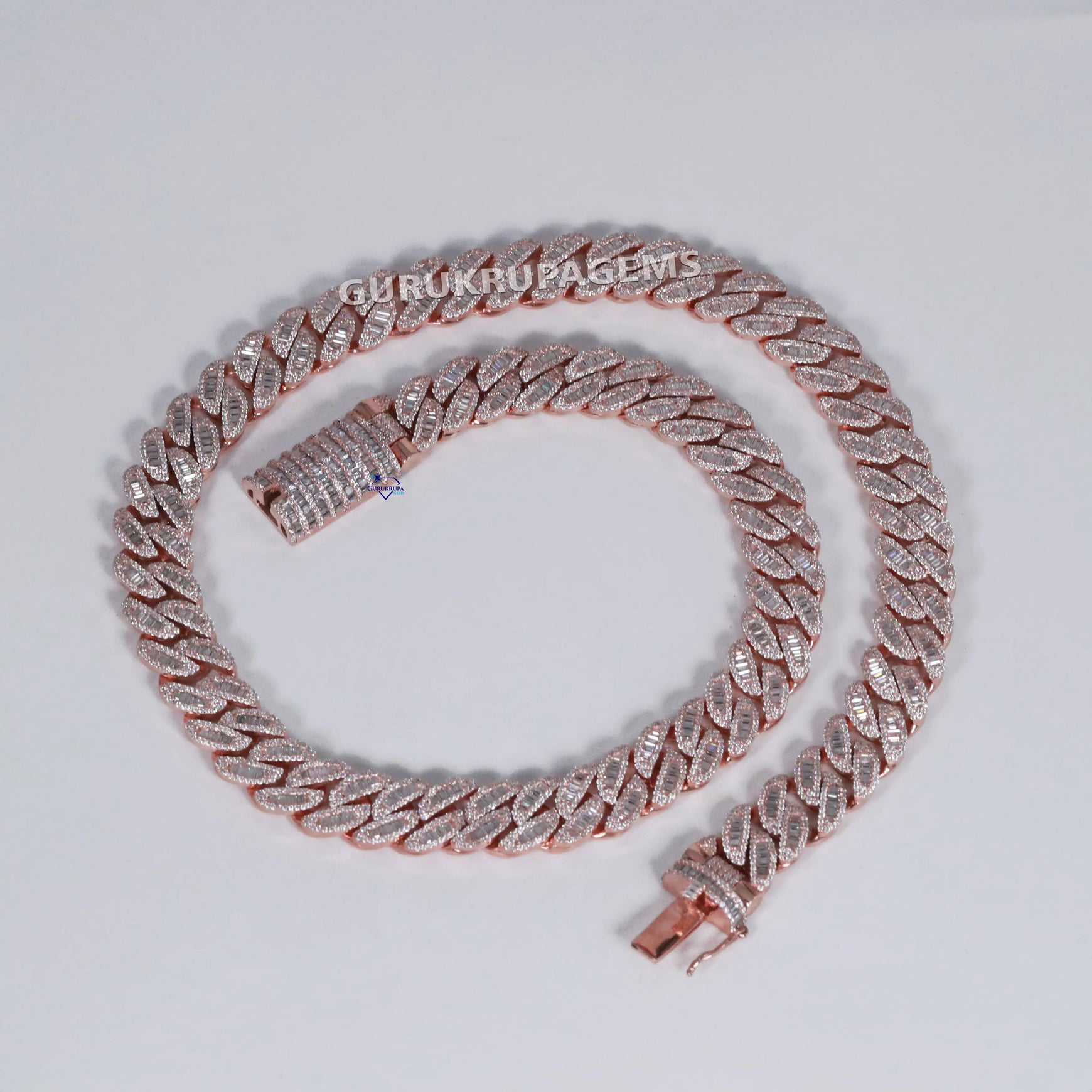 Fully iced out diamond chain in 24 inch length with VVS clarity for ultimate drip