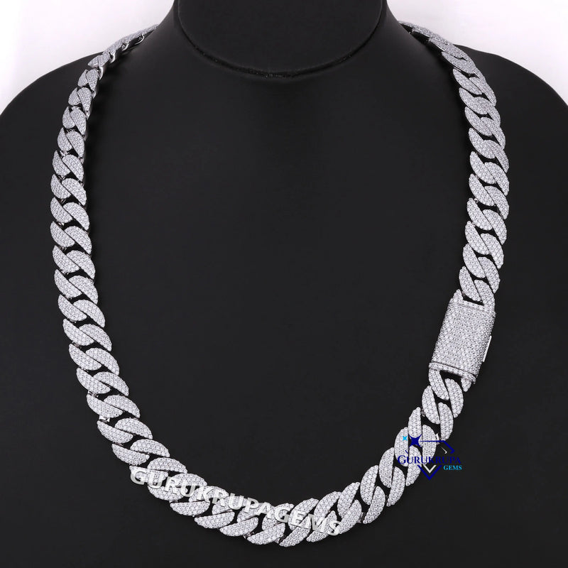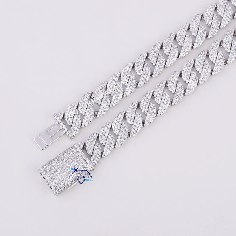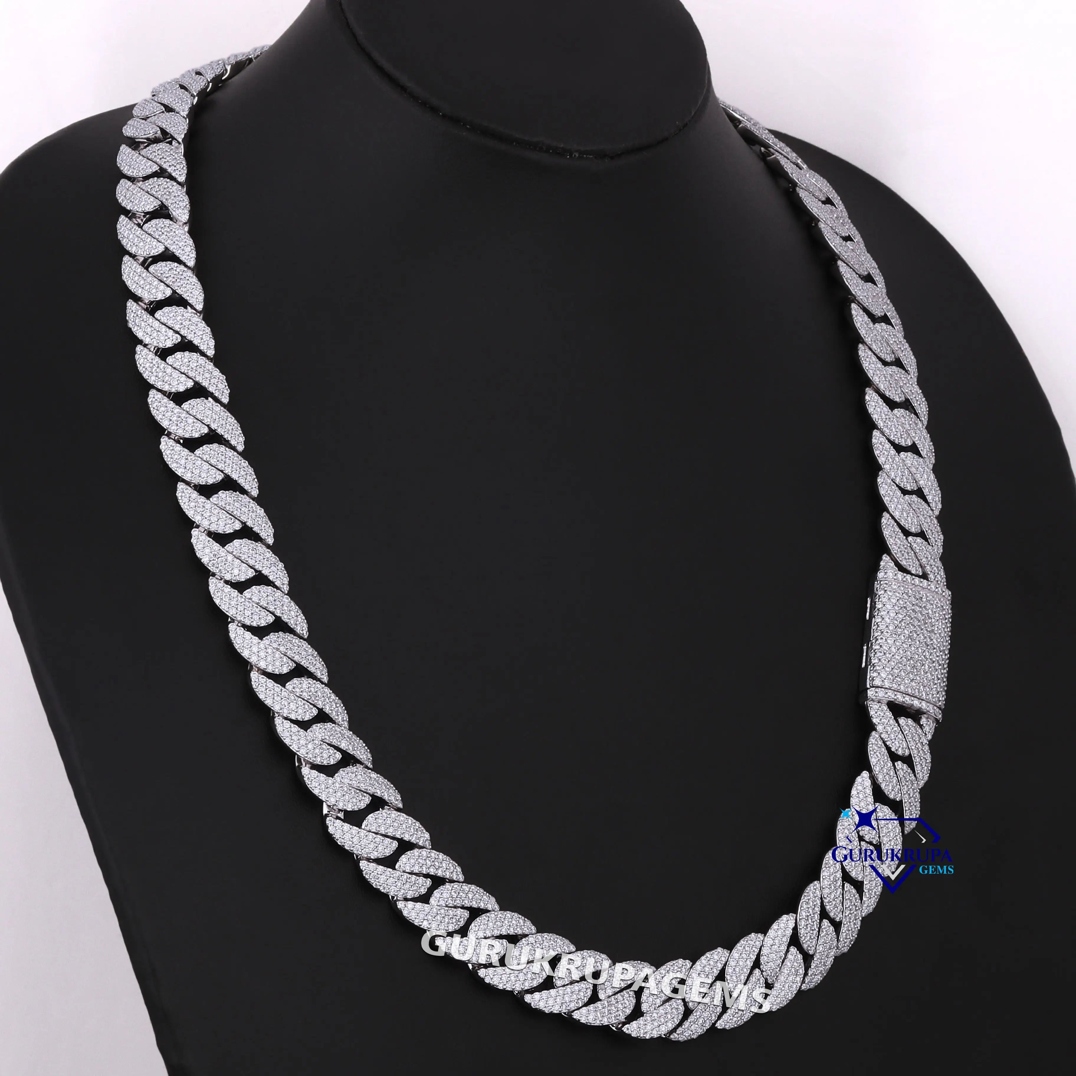 24 inch 22 mm hip hop cuban diamond chain for men d color vvs clarity