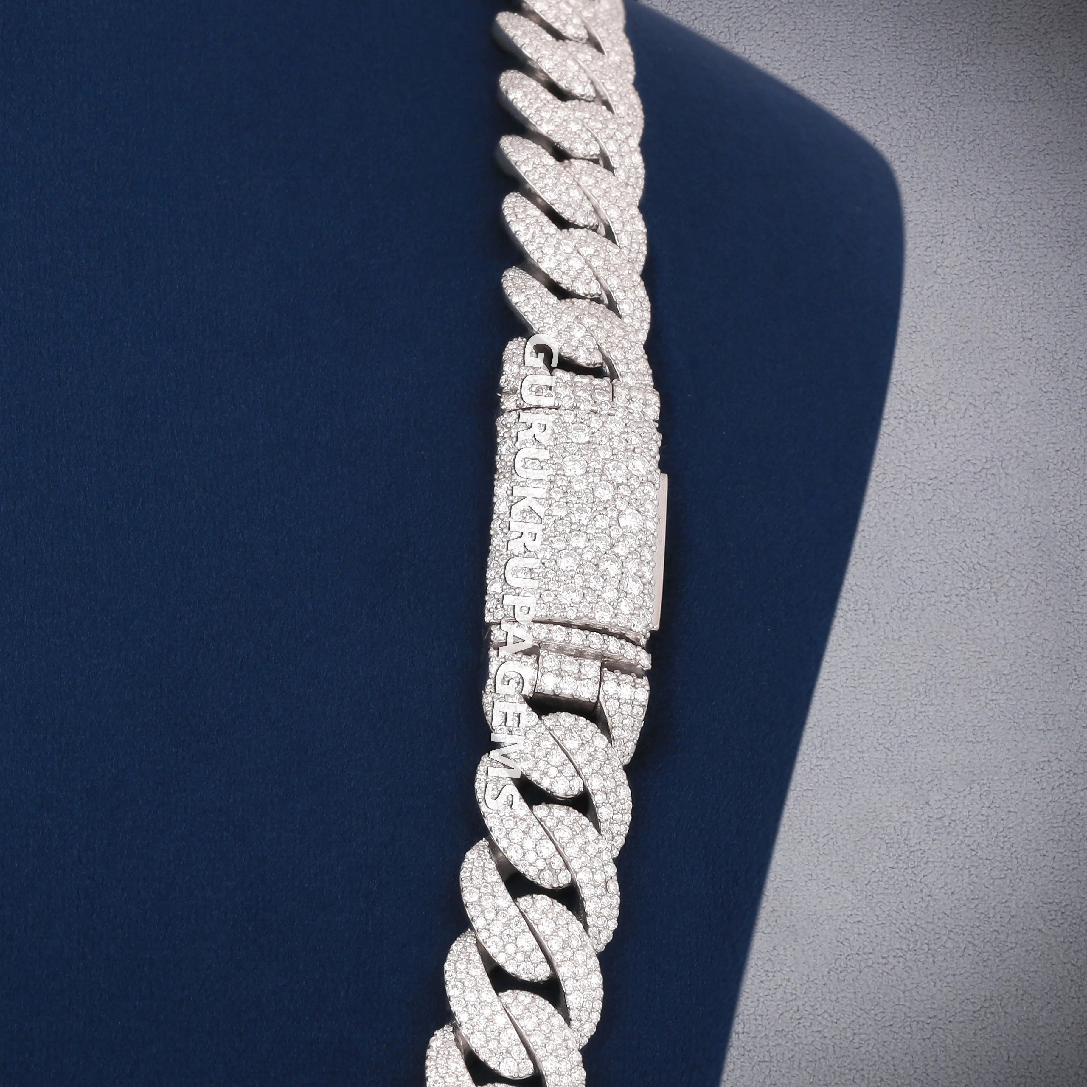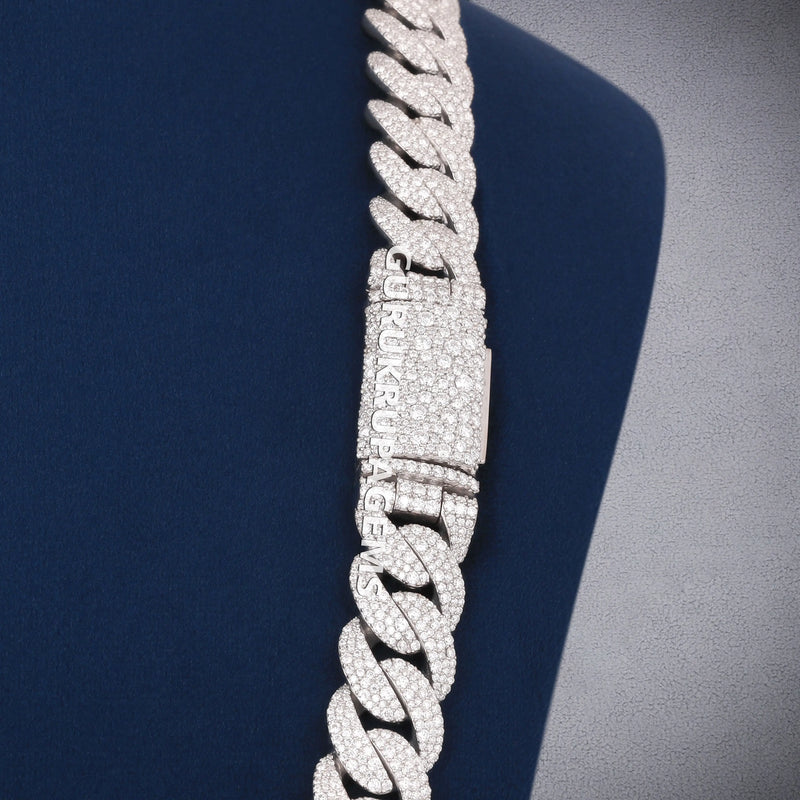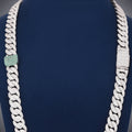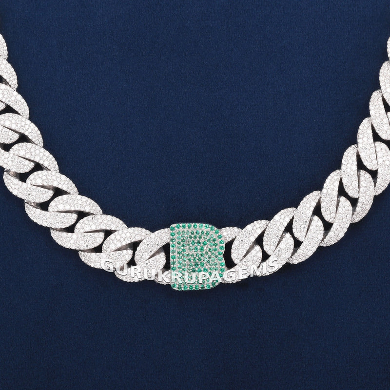 28 Inch White Gold Miami Cuban Link Chain with Green Diamond Iced Finish