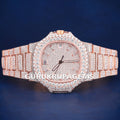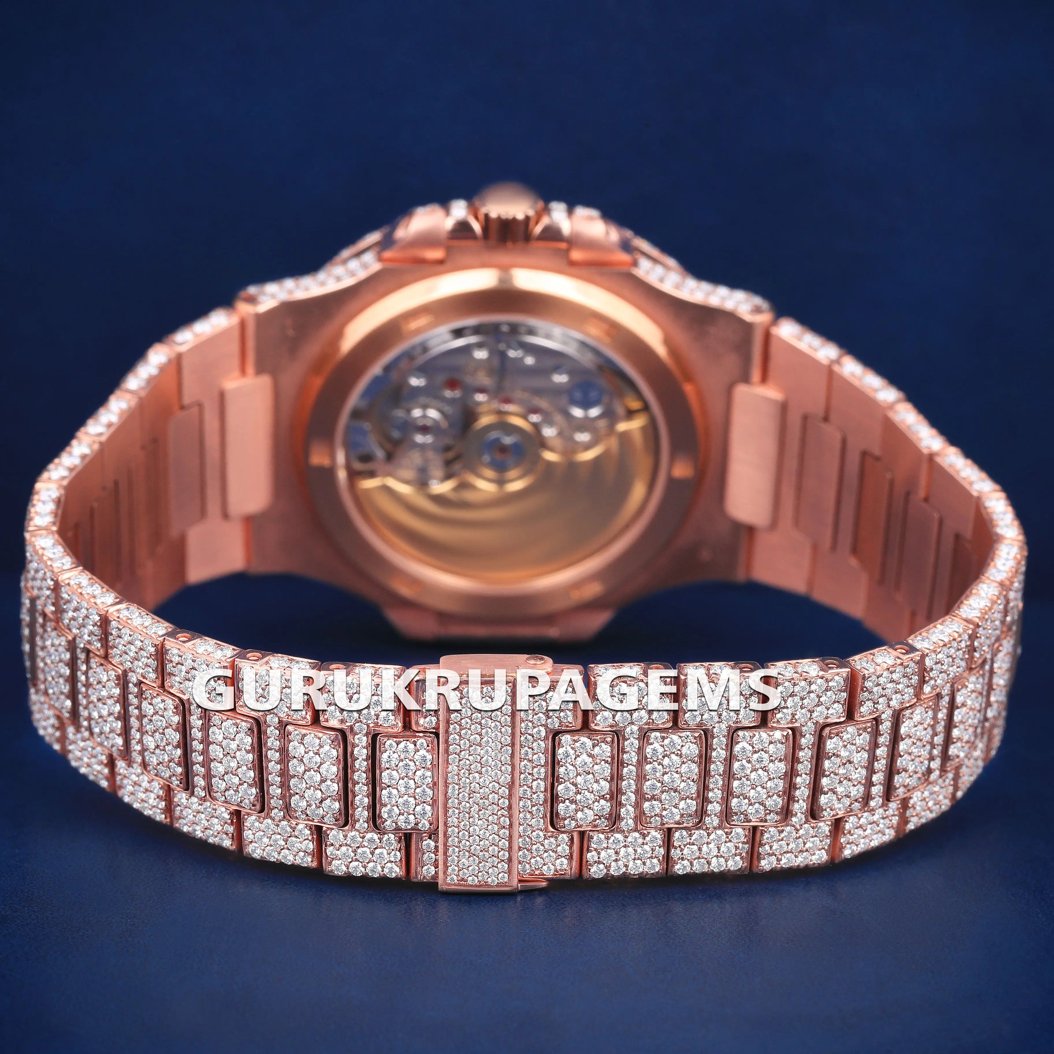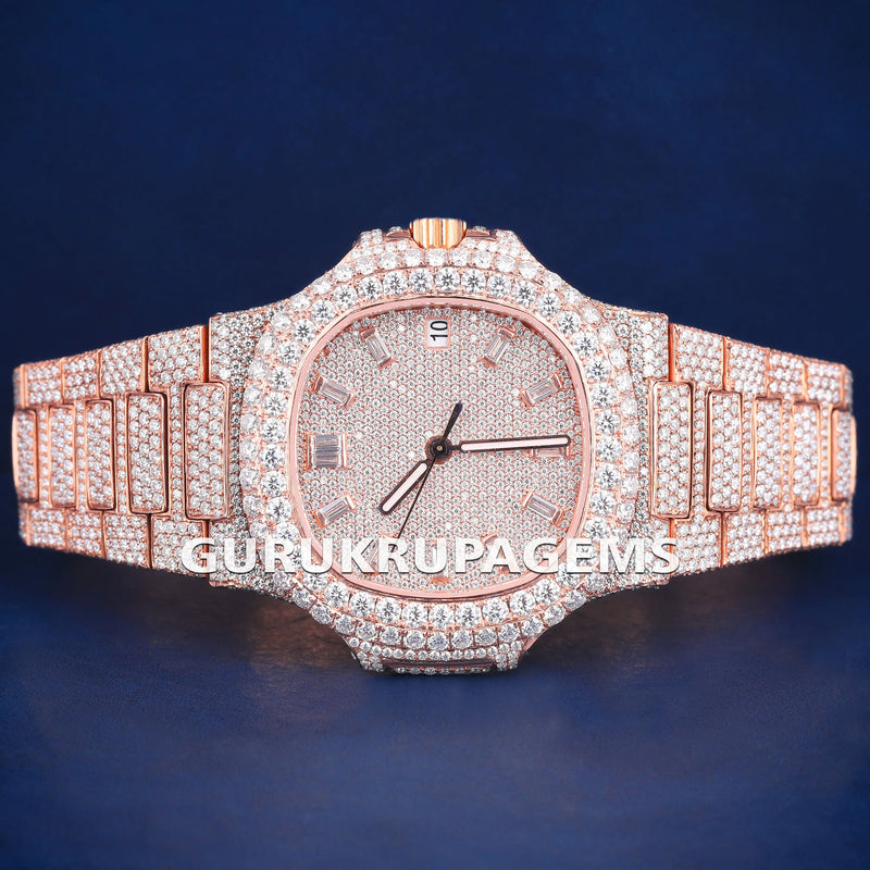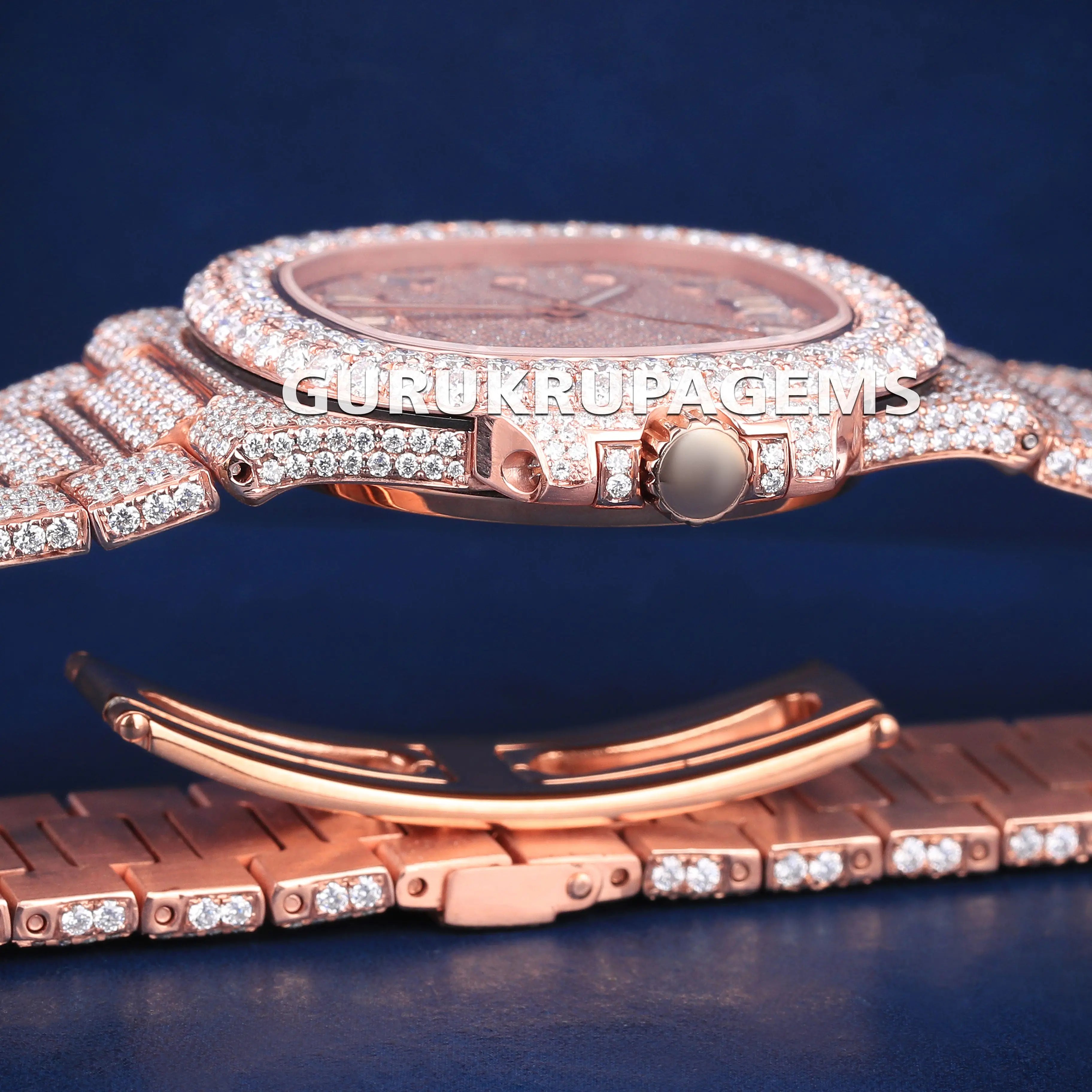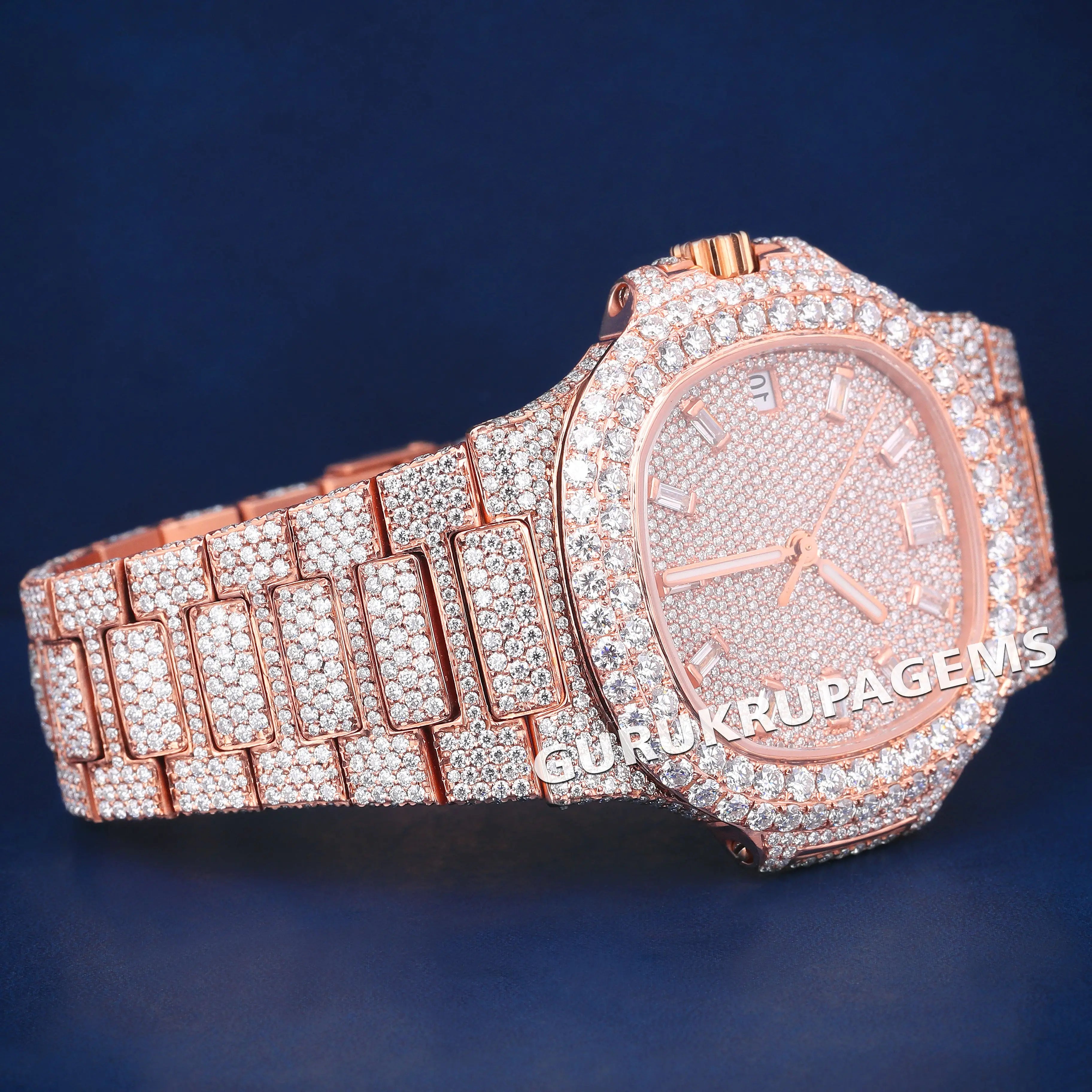 41mm Baguette Diamond Rose Dial Watch Fully Iced Out VVS Moissanite Diamond Watch for Men
