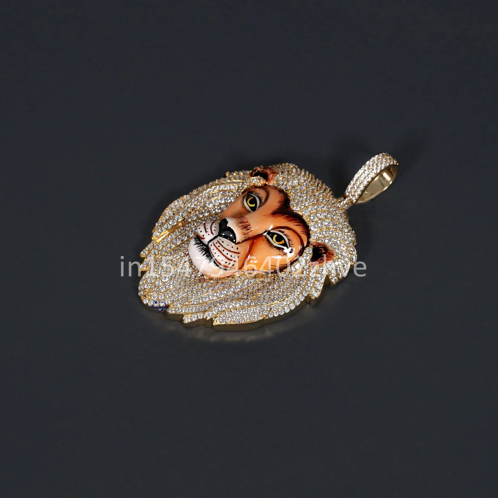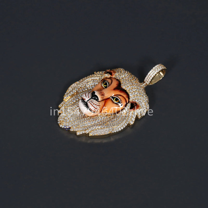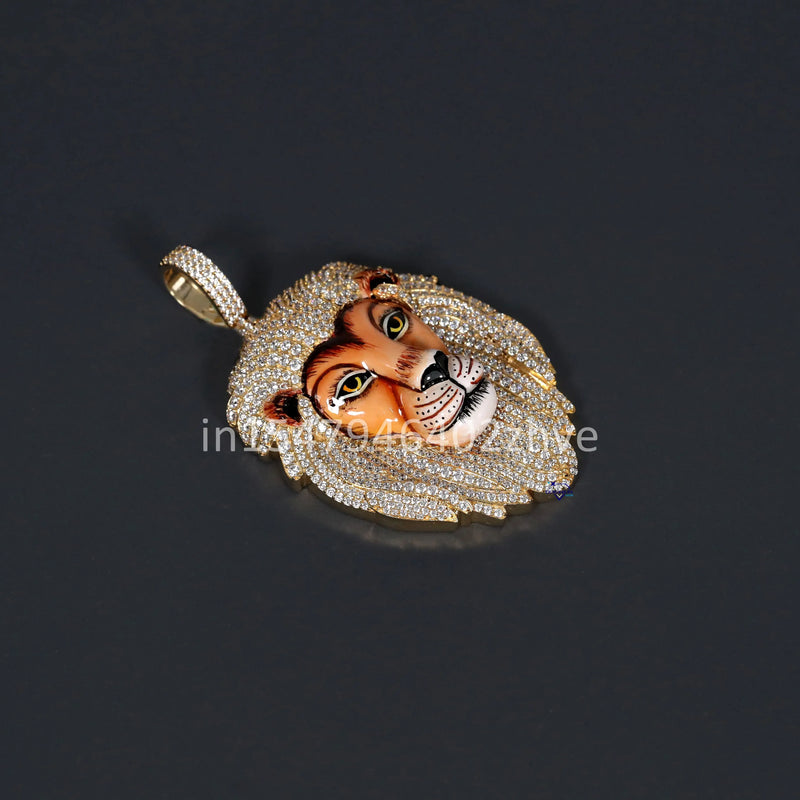 Yellow Gold Lion Head Pendant with Lab Diamond Detailing
