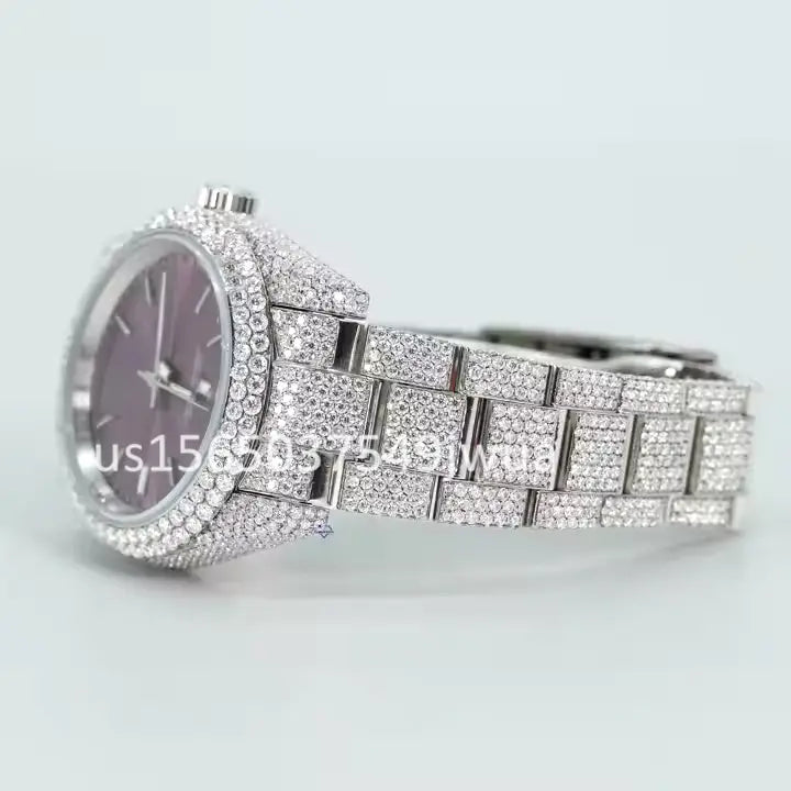 A hip hop diamond watch with moissanite stones fully iced out vvs clarity diamonds crafted for men