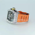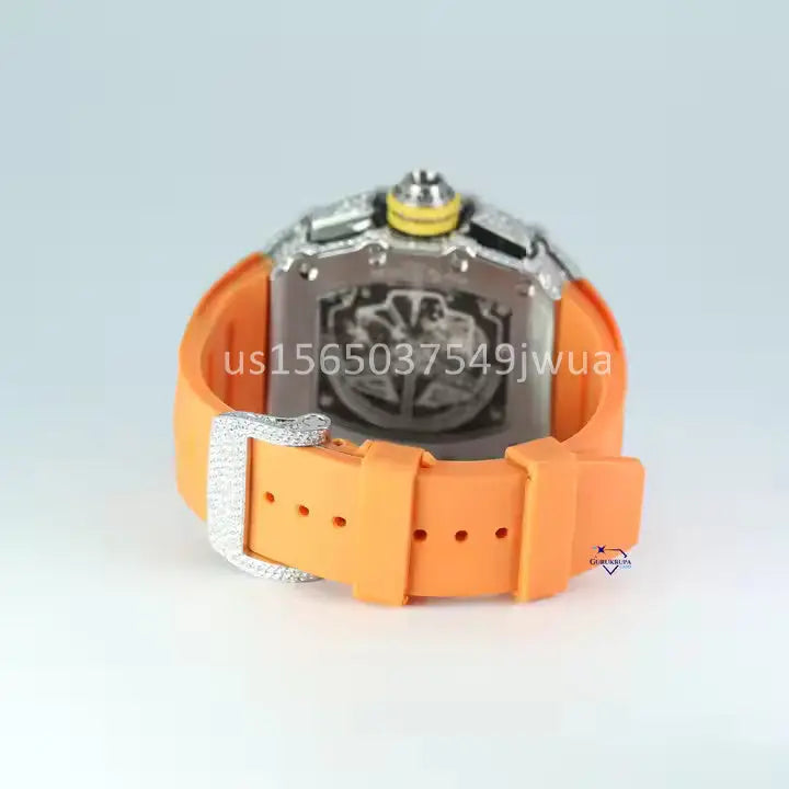 A hip-hop jewelry, this skeleton dial diamond watch with moissanite diamonds offers a classic and stylish vibe