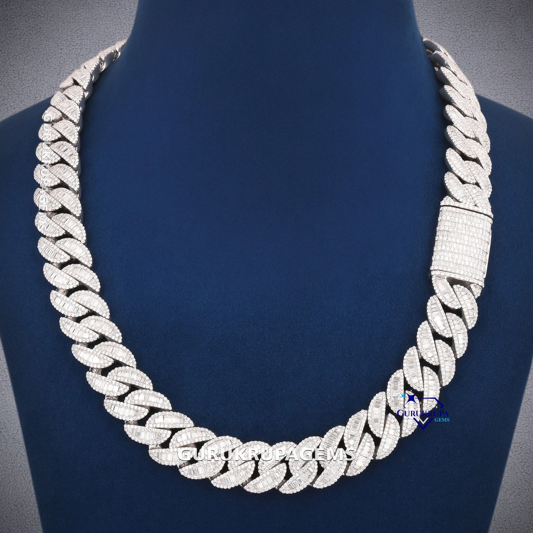 Baguette and round cut celebrity inspired miami cuban diamond chain