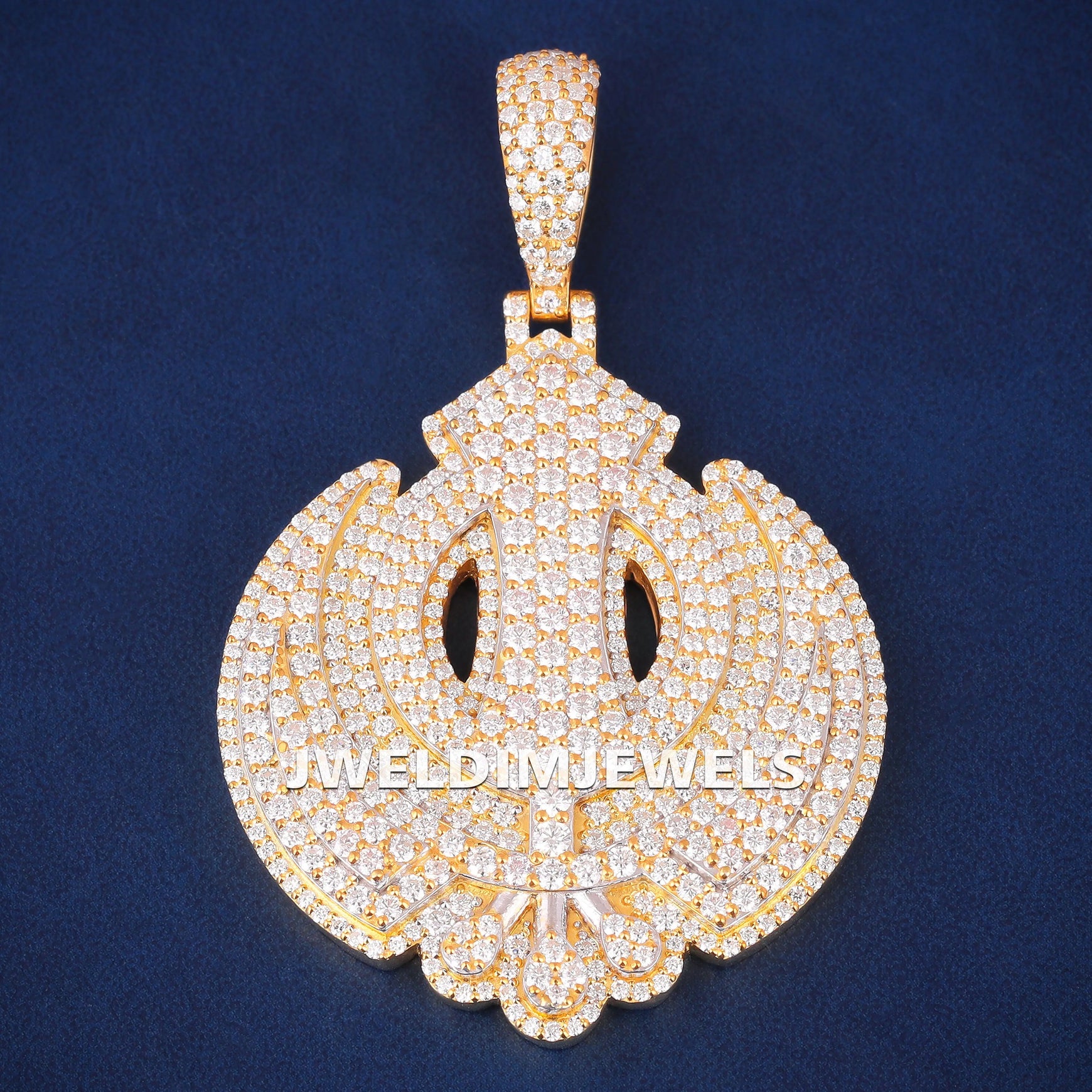 Buy Fully Iced Out Lab Grown Diamond 14kt Gold New Customized Sikh Khanda Pendants Necklace Mens Womens