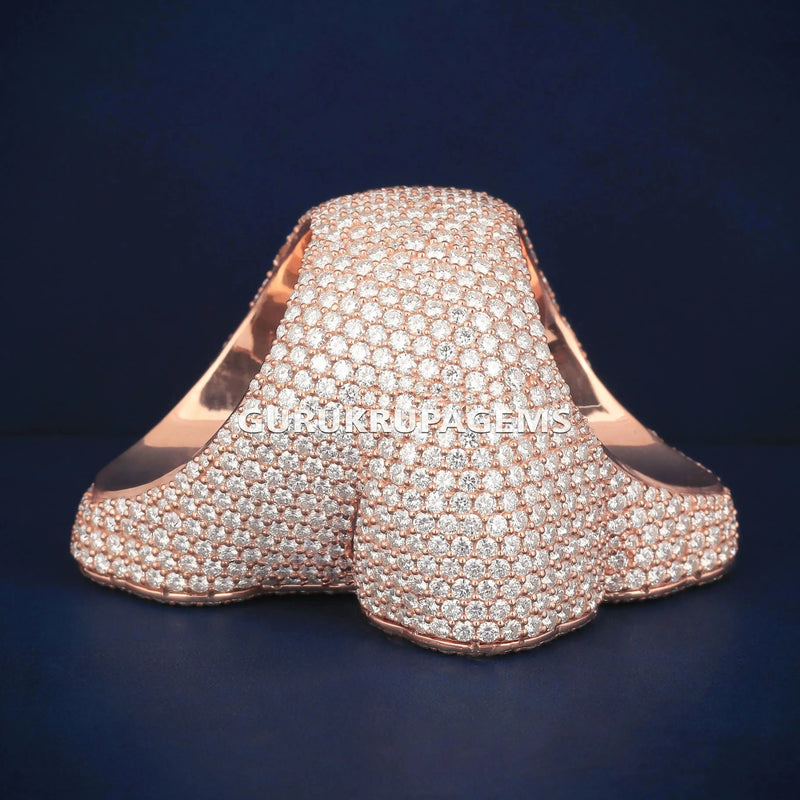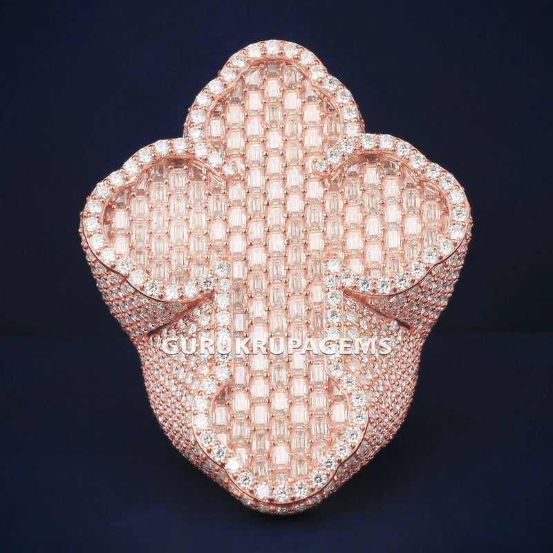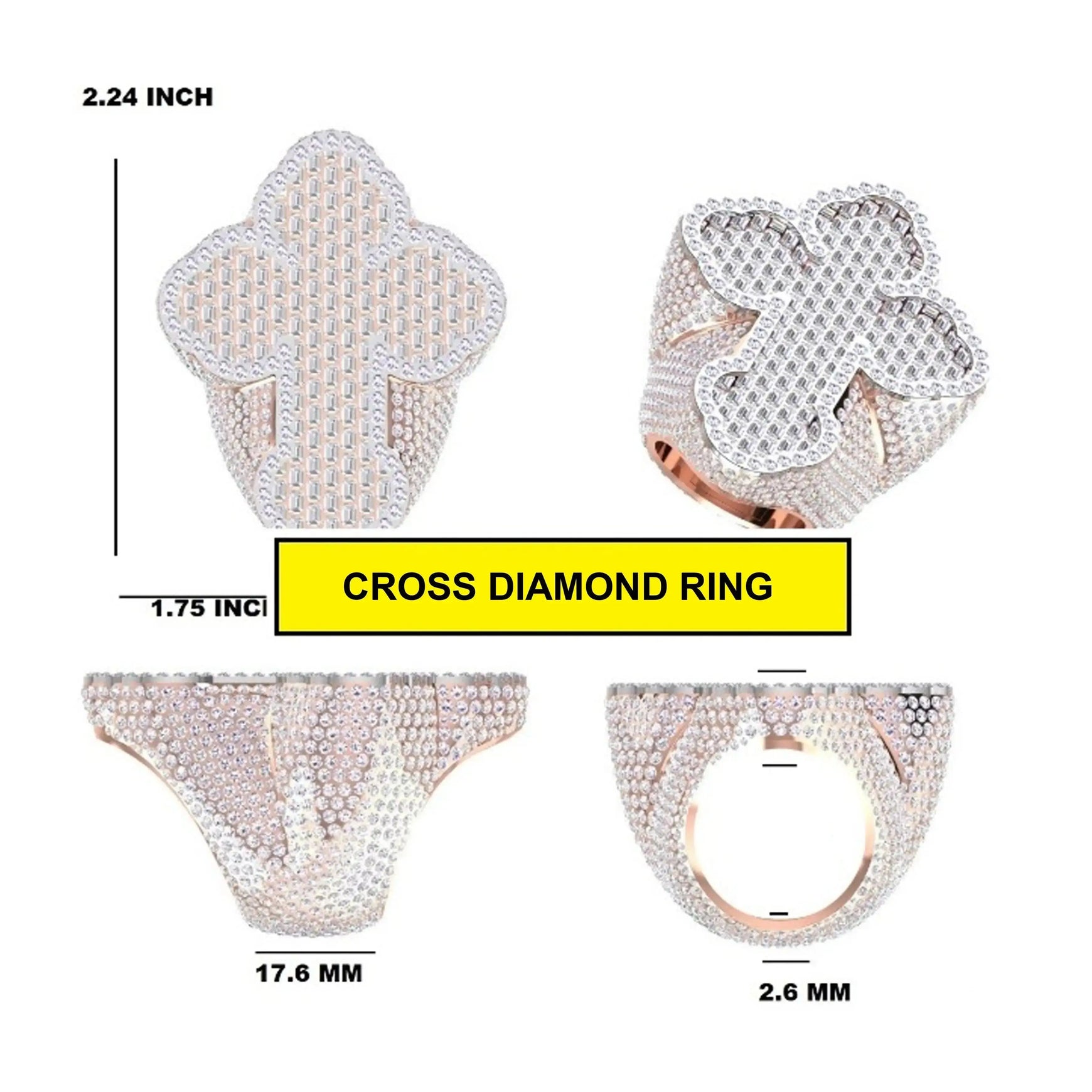Custom 14kt Rose Gold Cross Hip Hop Ring with Full VVS Diamond Iced Out Shine