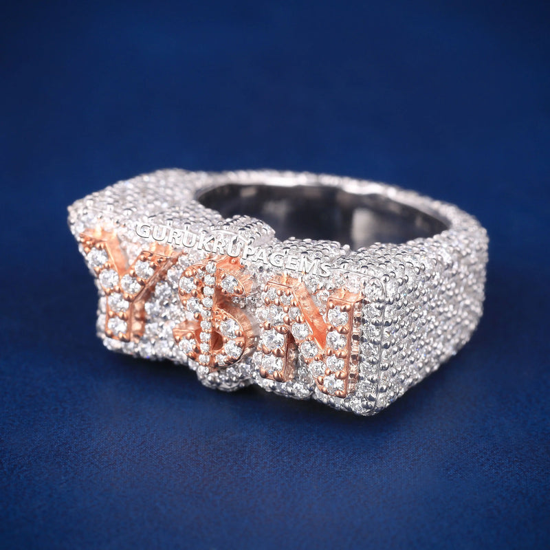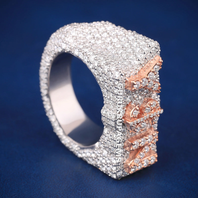 Alphabets Name Letter Two Tone VVS Diamond Hip Hop Iced Out Mens Custom Hip Hop Ring
