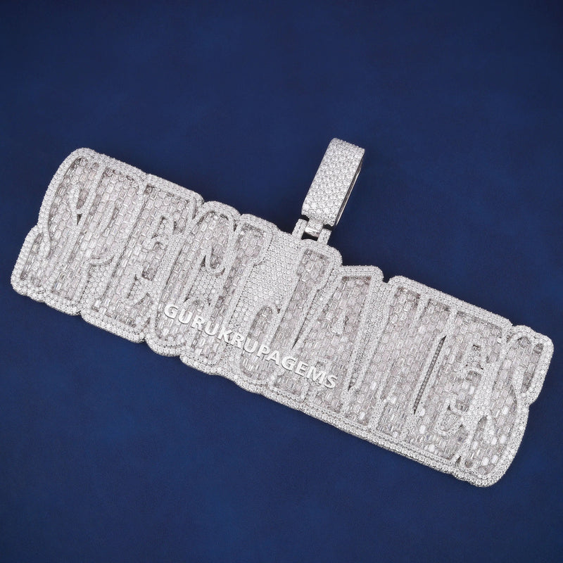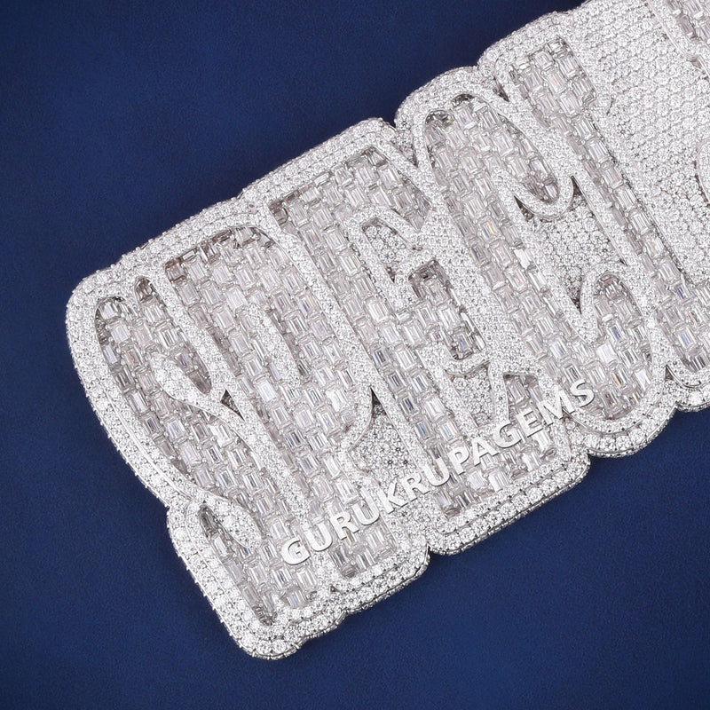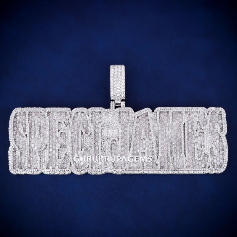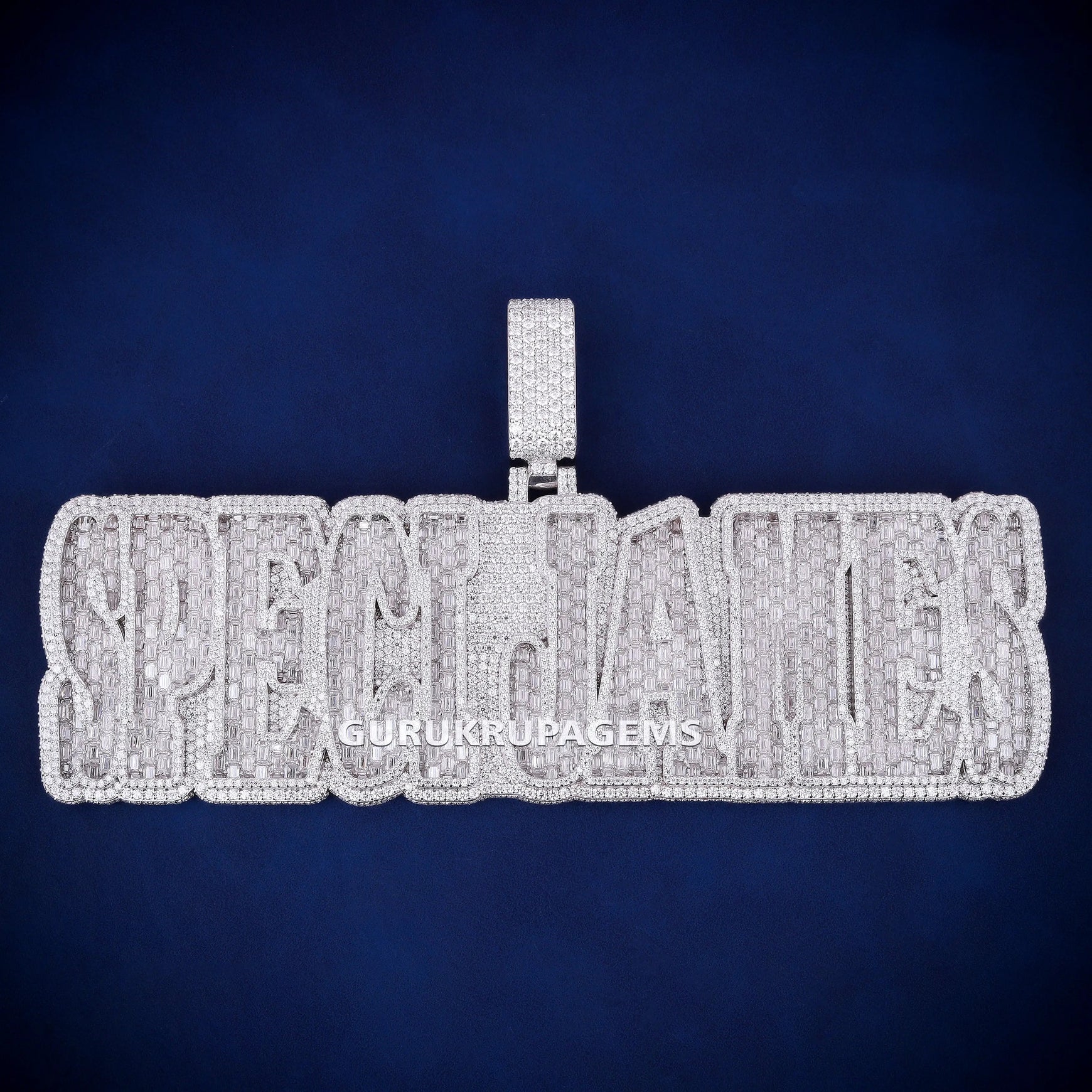 Men’s hip hop chain featuring a custom baguette letter name pendant