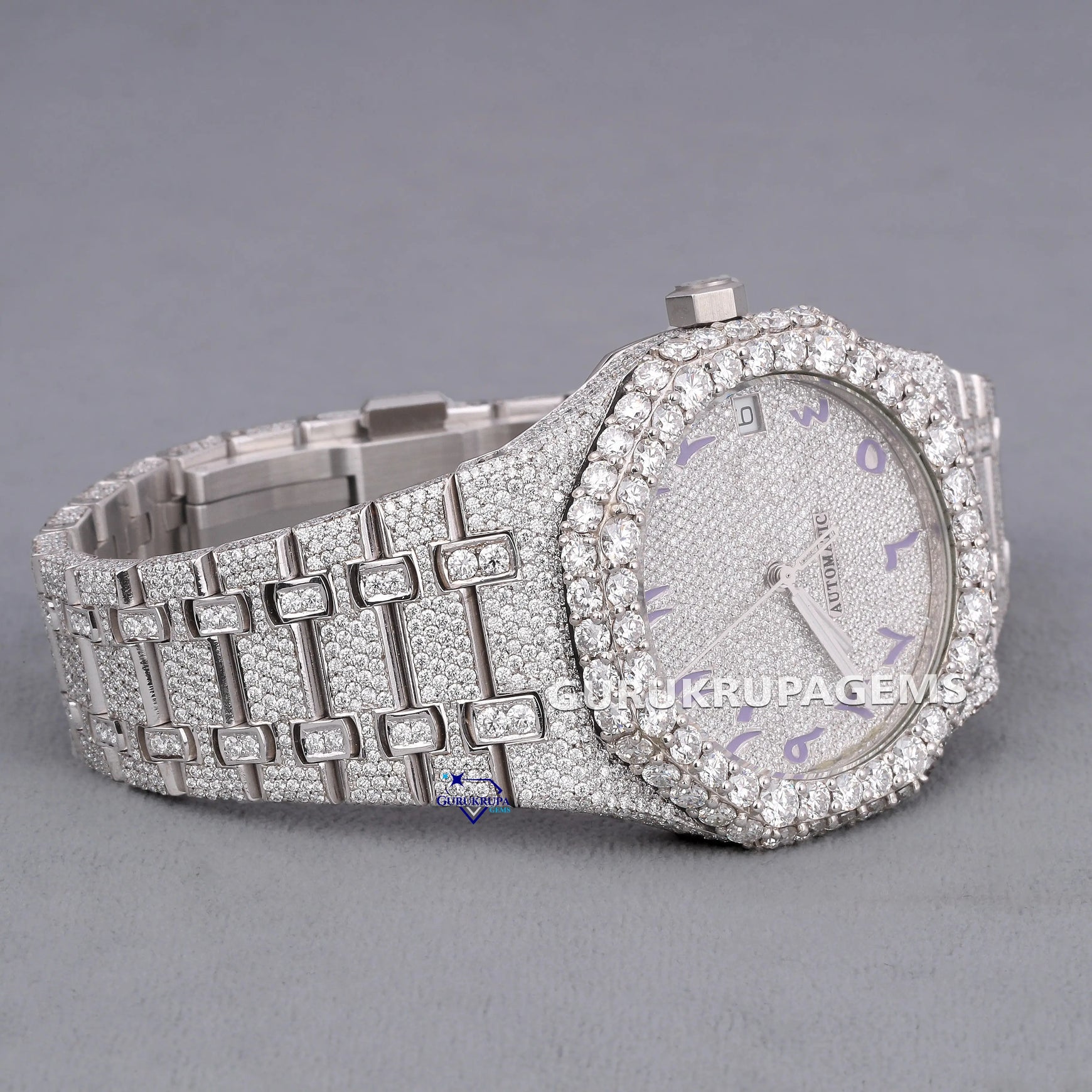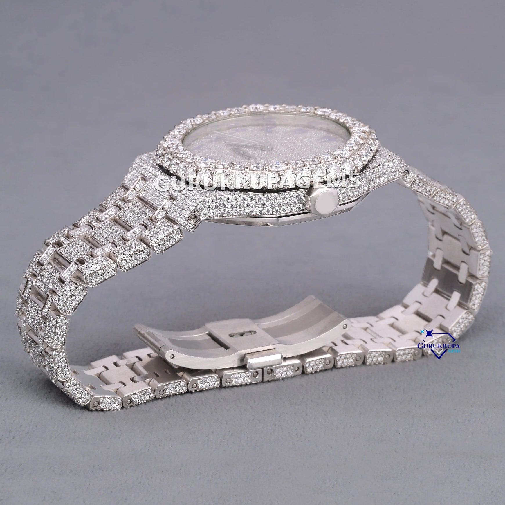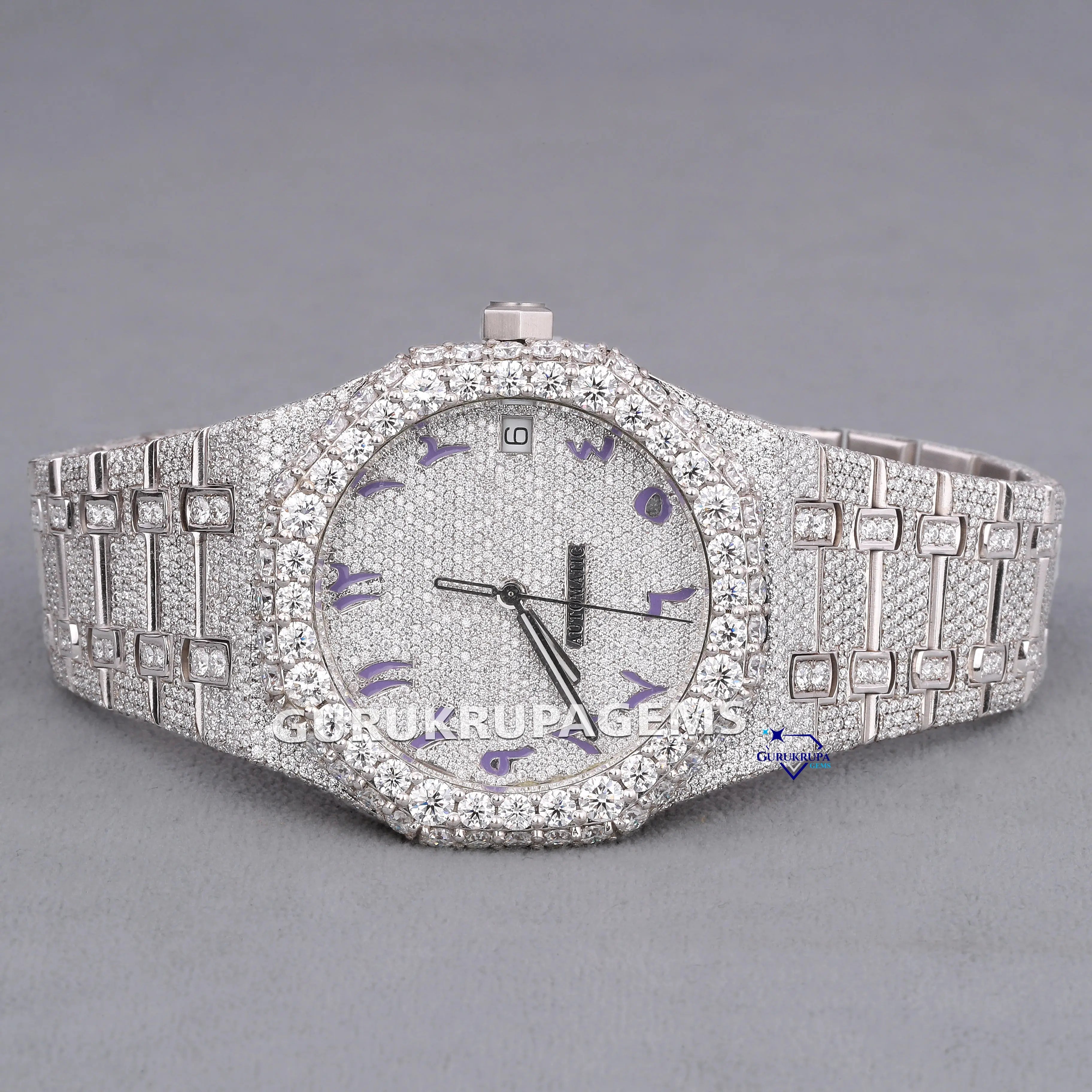 Custom dials fully iced out stainless steel hip hop diamond watch crafted with Moissanite diamonds