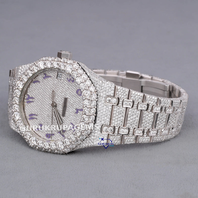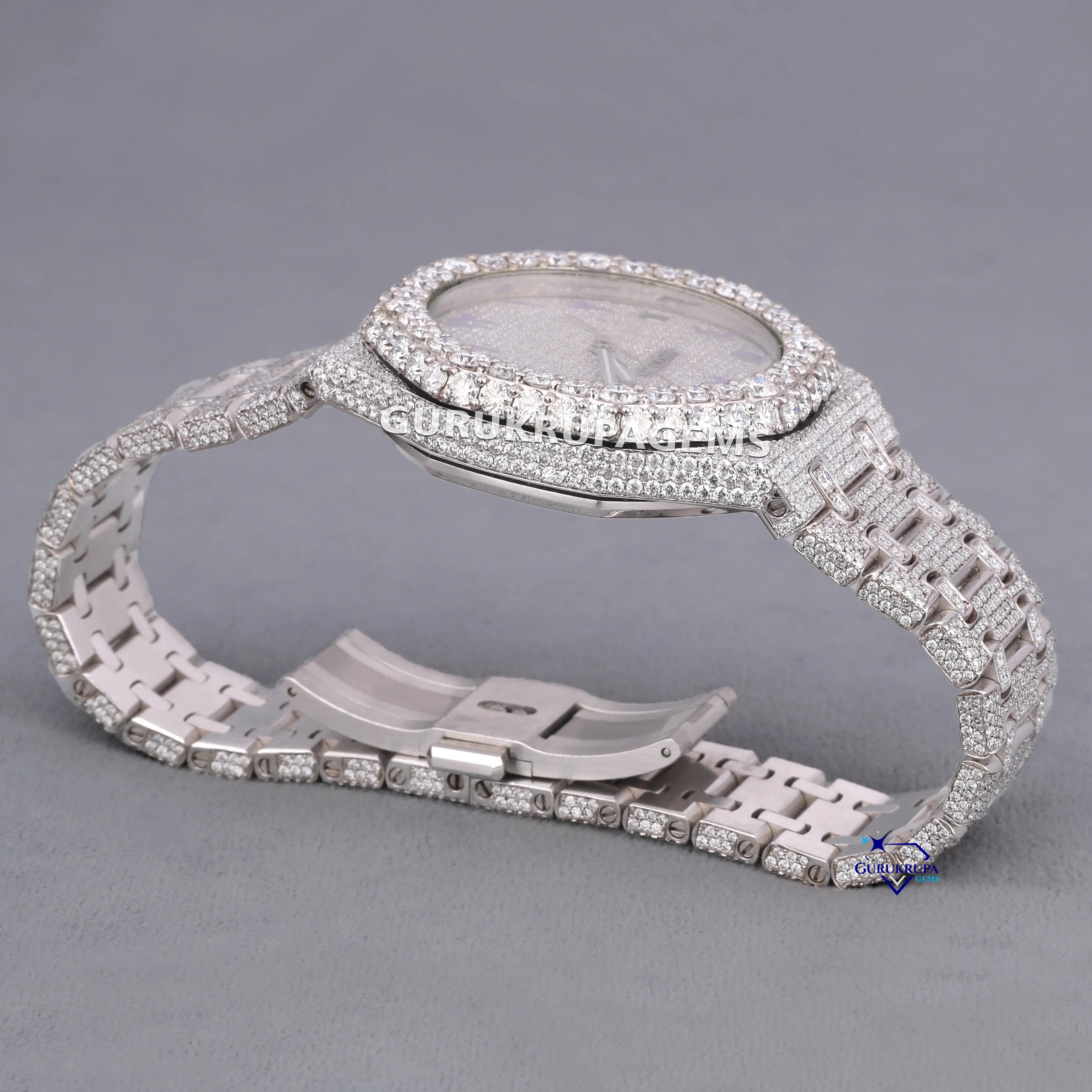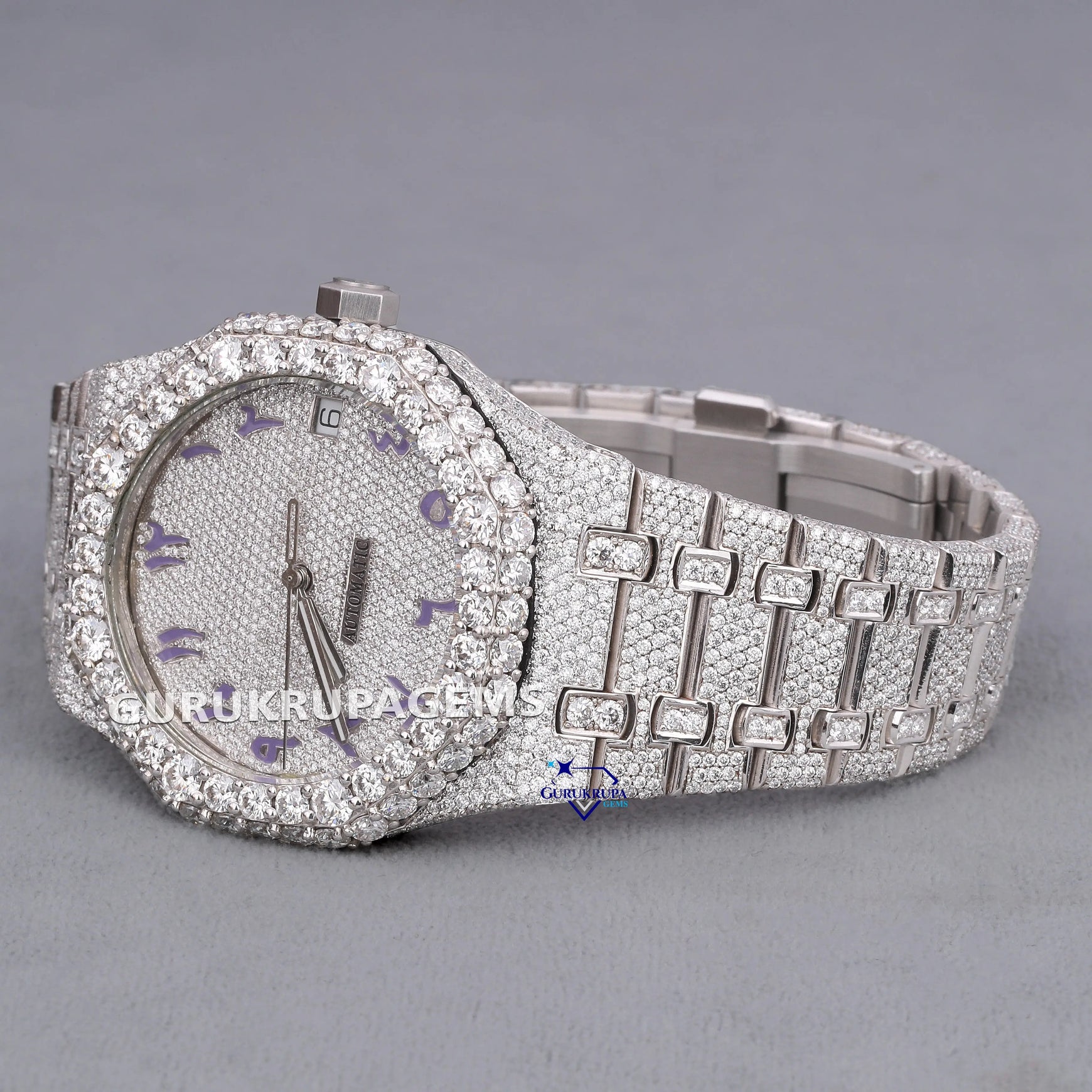 Custom dials fully iced out stainless steel hip hop diamond watch crafted with Moissanite diamonds