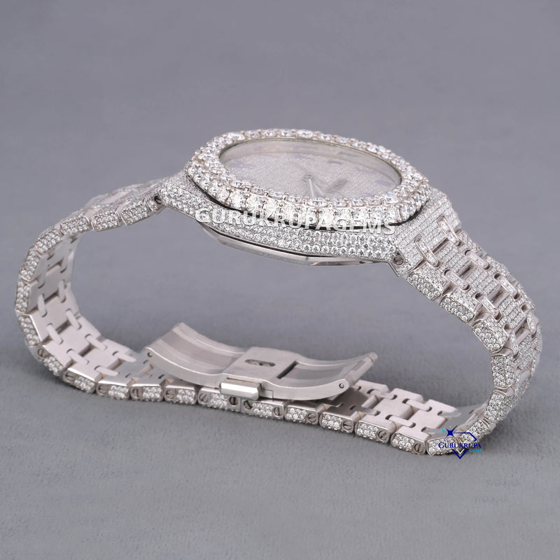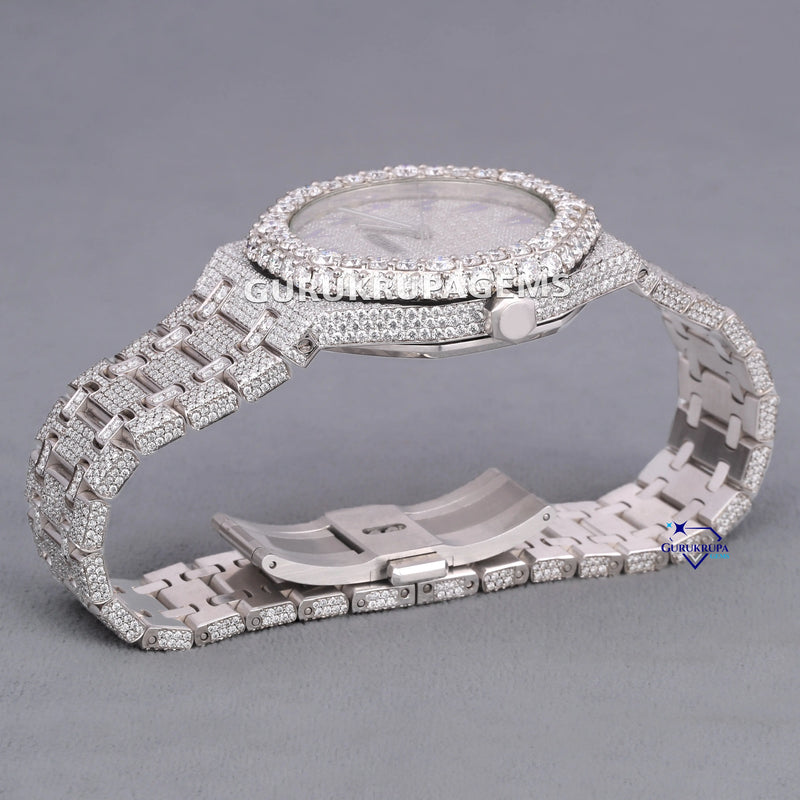 Stainless Steel Hip Hop Diamond Watch – Fully Iced Moissanite Timepiece with Custom Dials