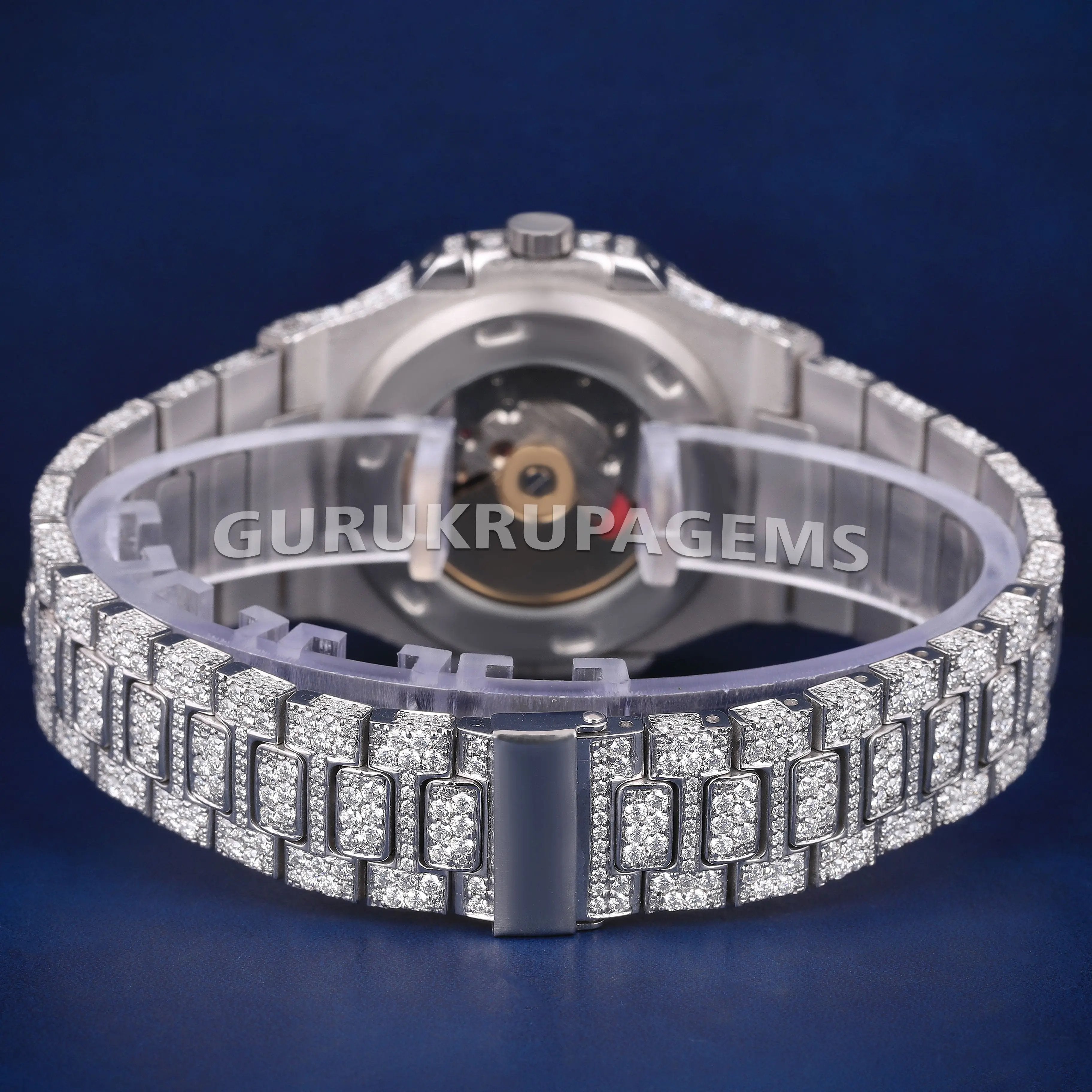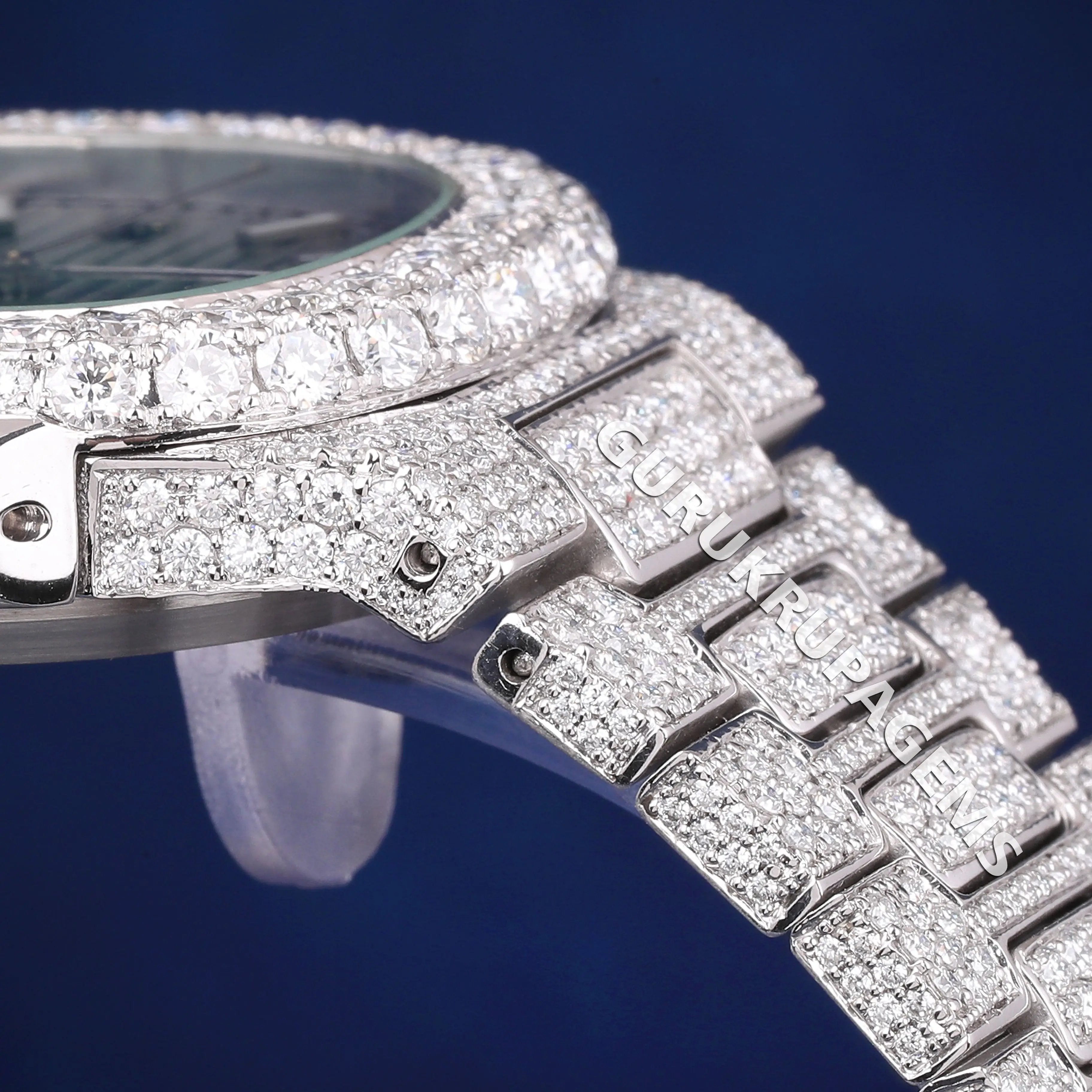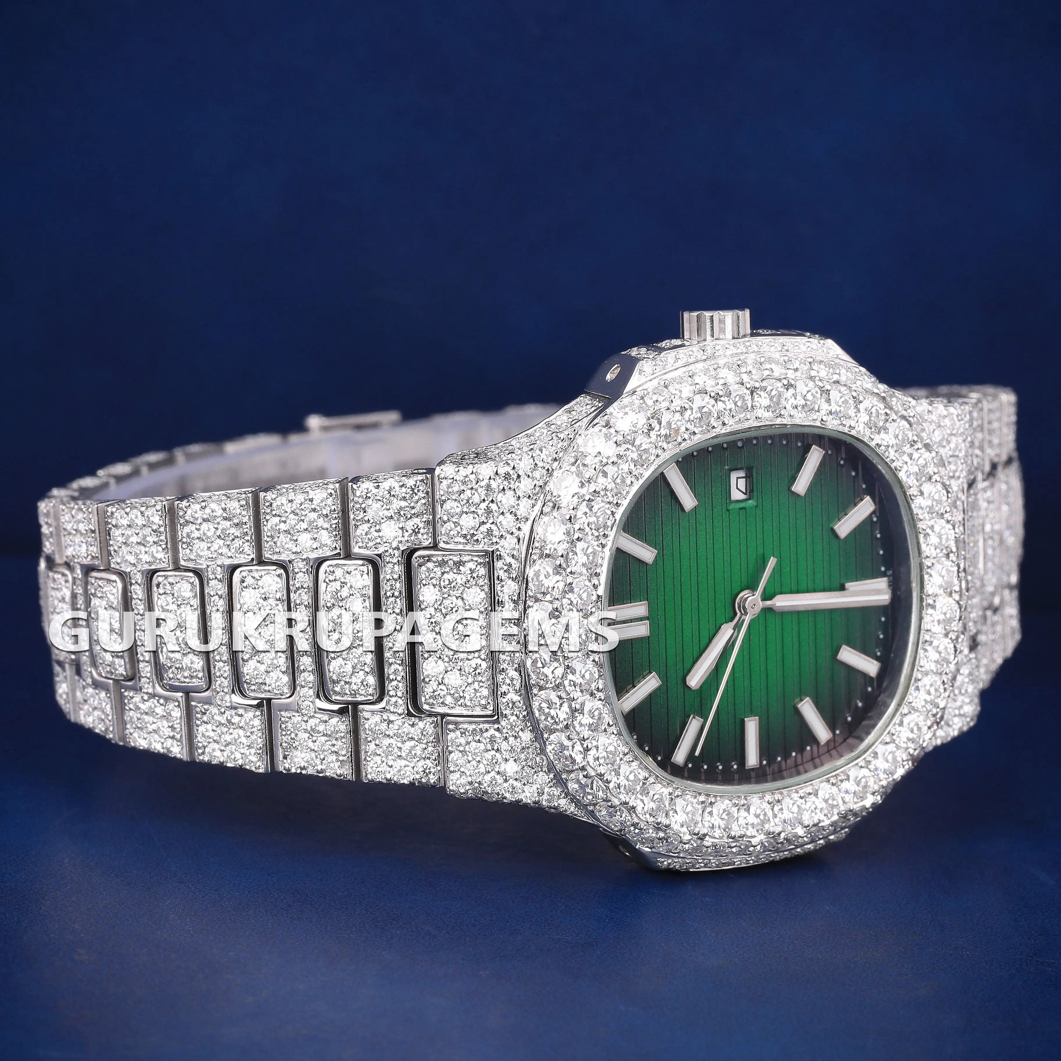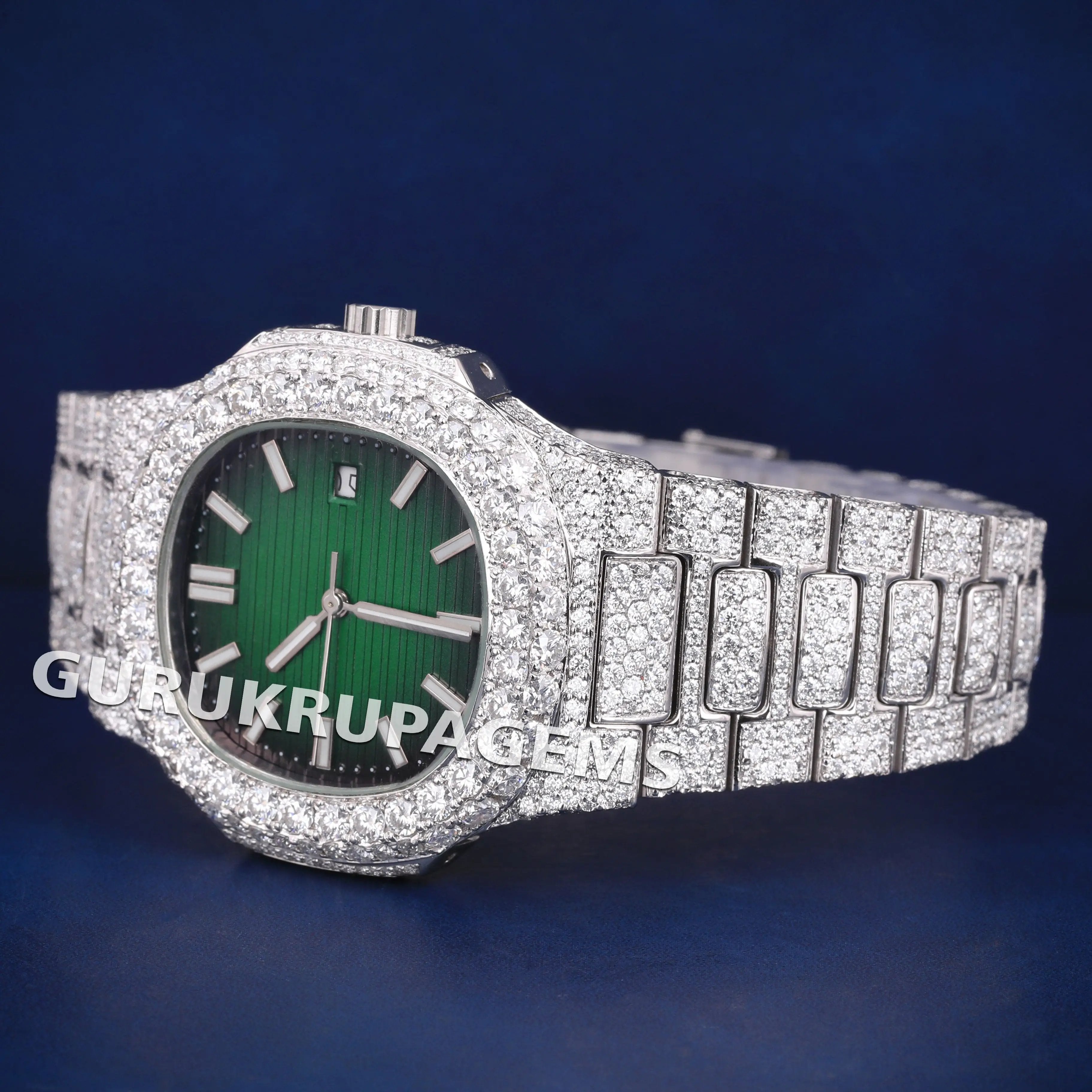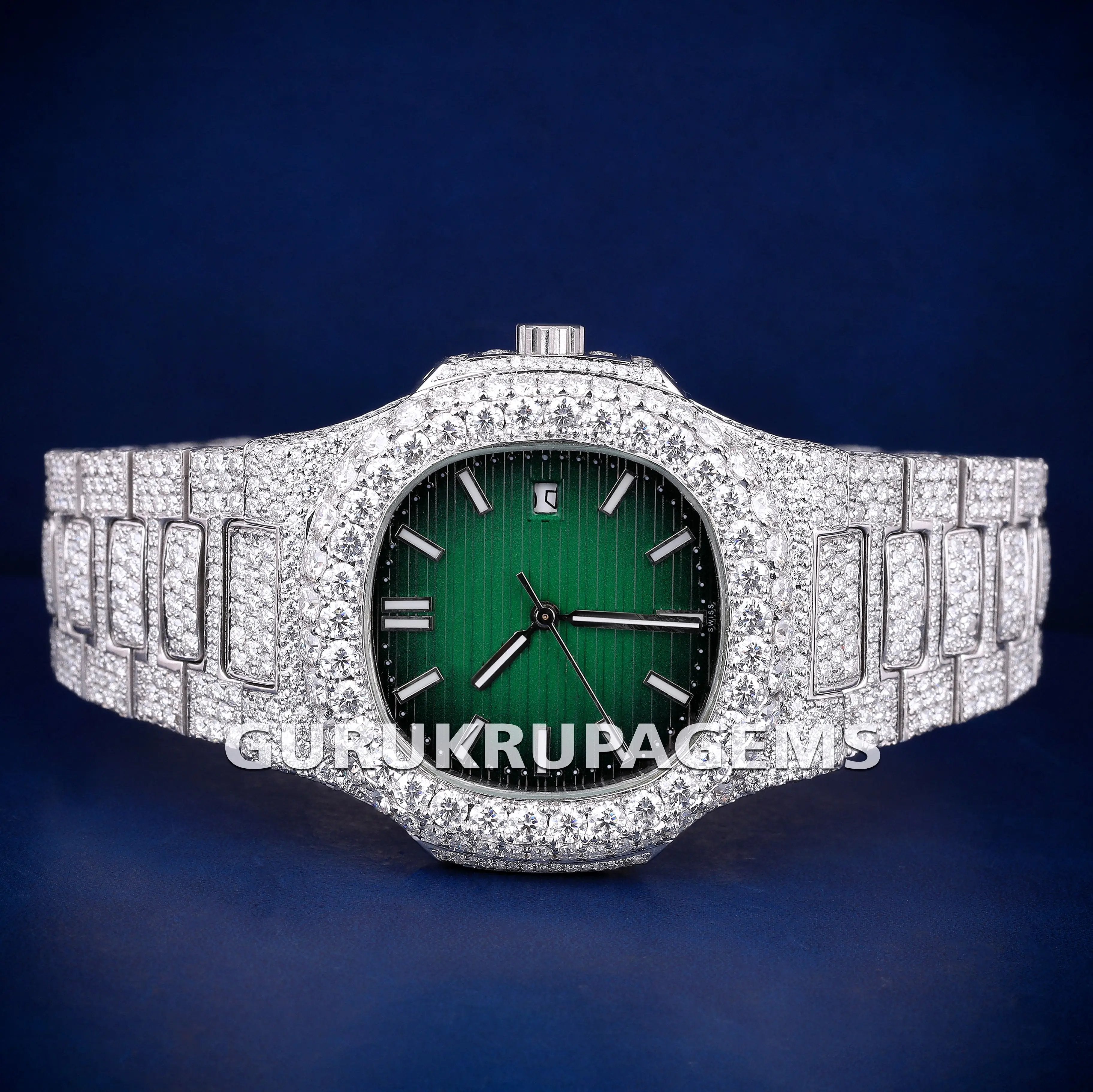 Custom Iced Out Moissanite Diamond Full White Green Face Watch Square Dial Watches for Women