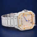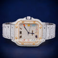 Custom two tone iced out diamond watch with multicolor roman dial
