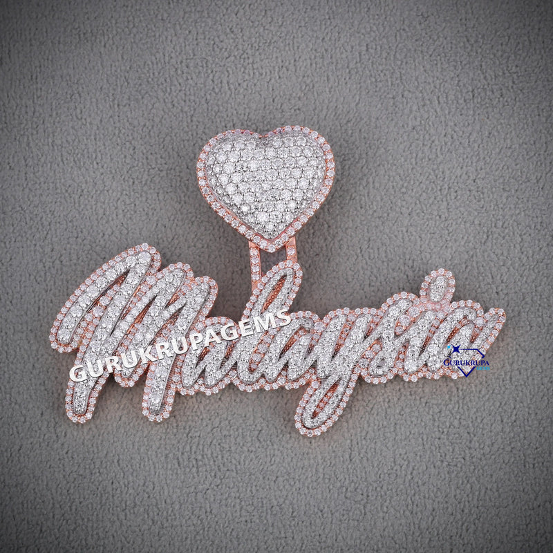 Customized gift stacked name pendant two toned Gurukrupa-Gems