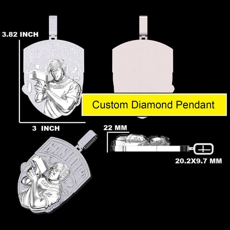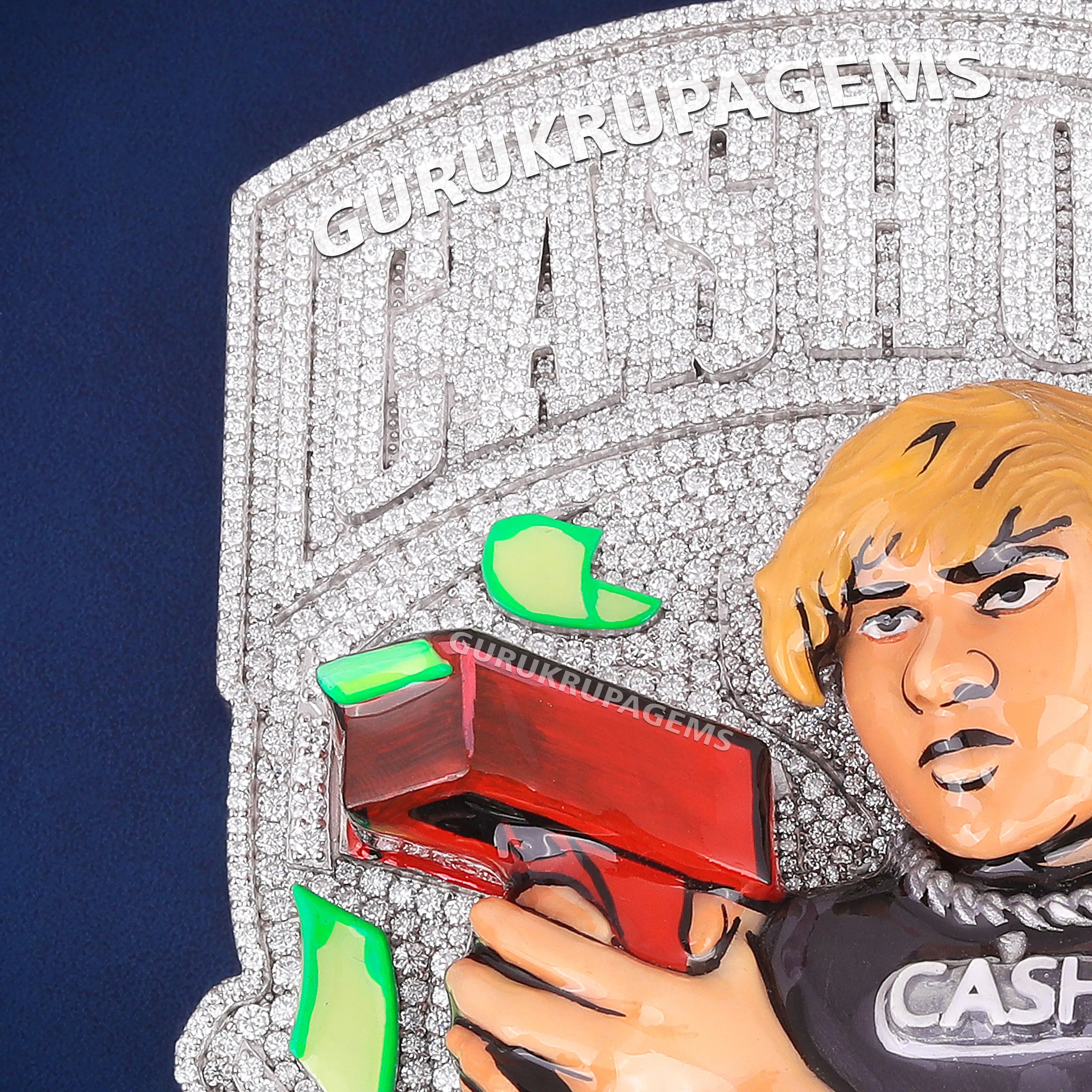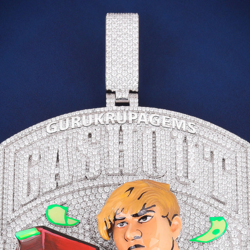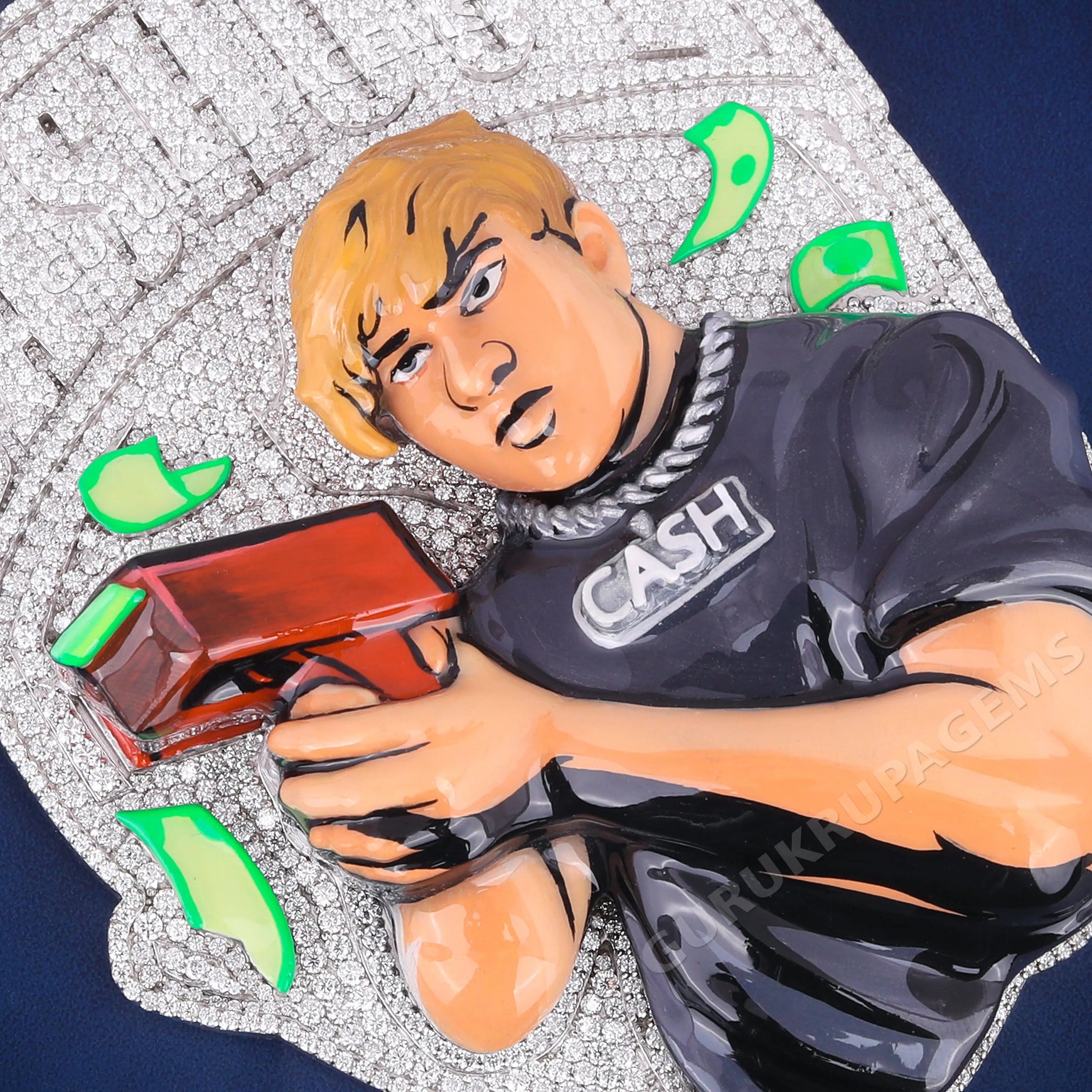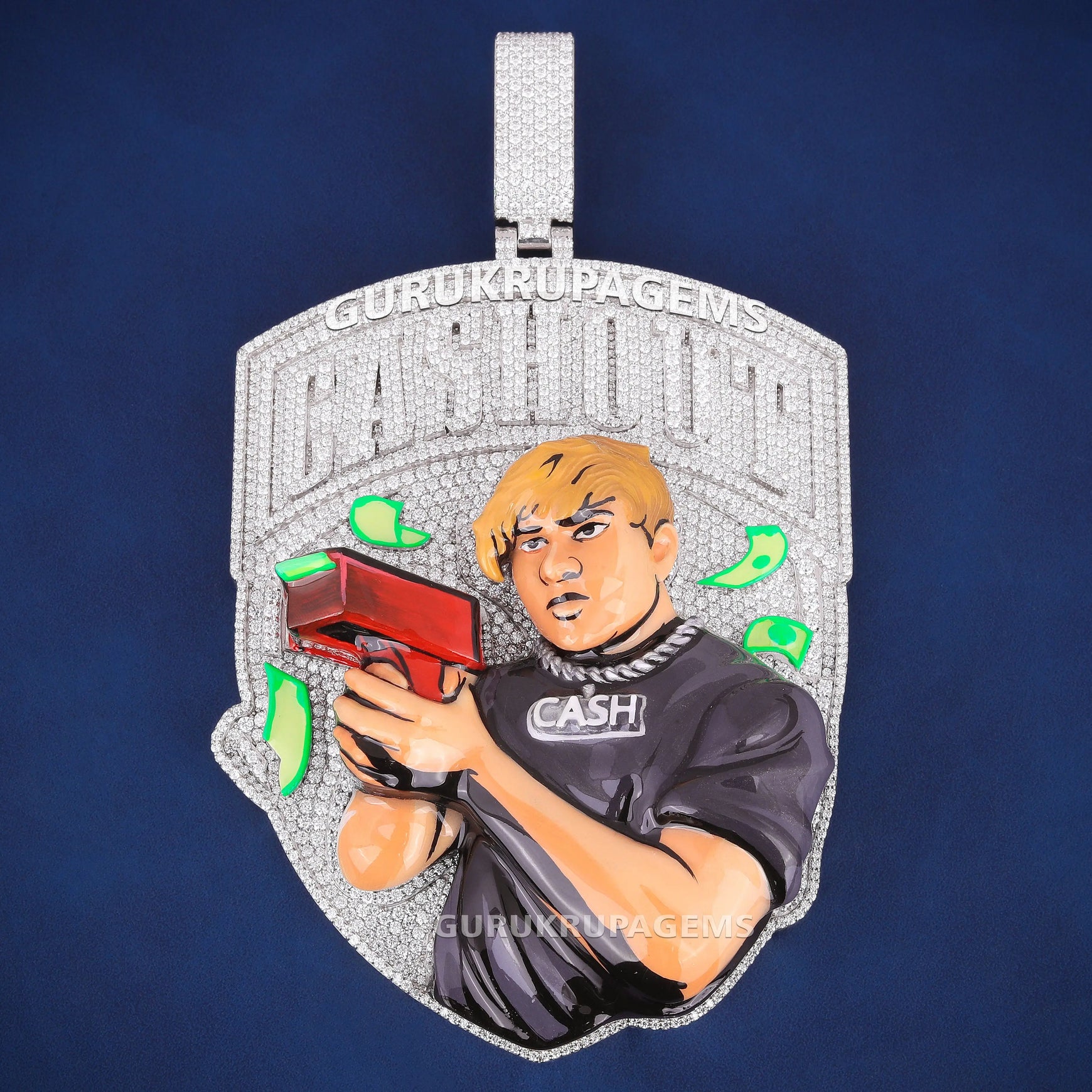 Customized Iced Out Diamond Cash Out Gun Cartoon Pendant with Flying Money Art Design Custom VVS Name Pendant