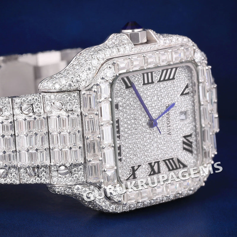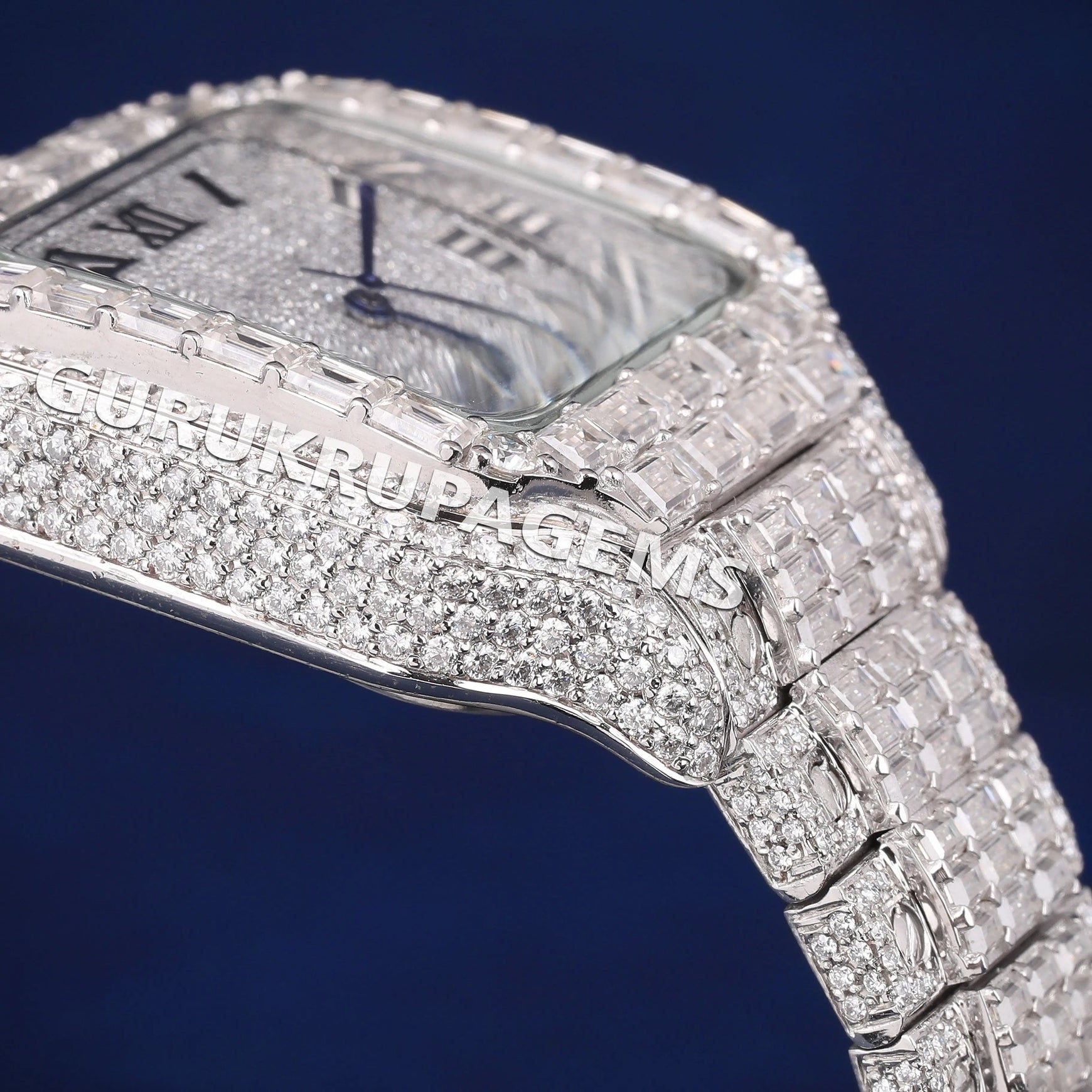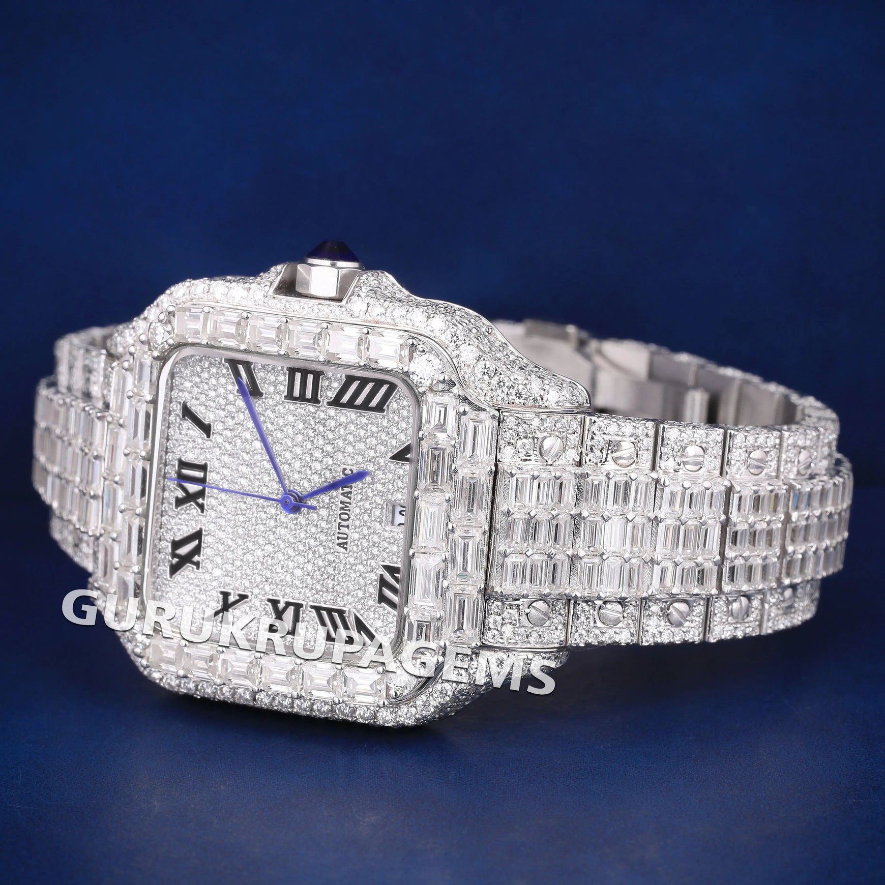 Roman numeral dial luxury timepiece iced out full diamond moissanite watch