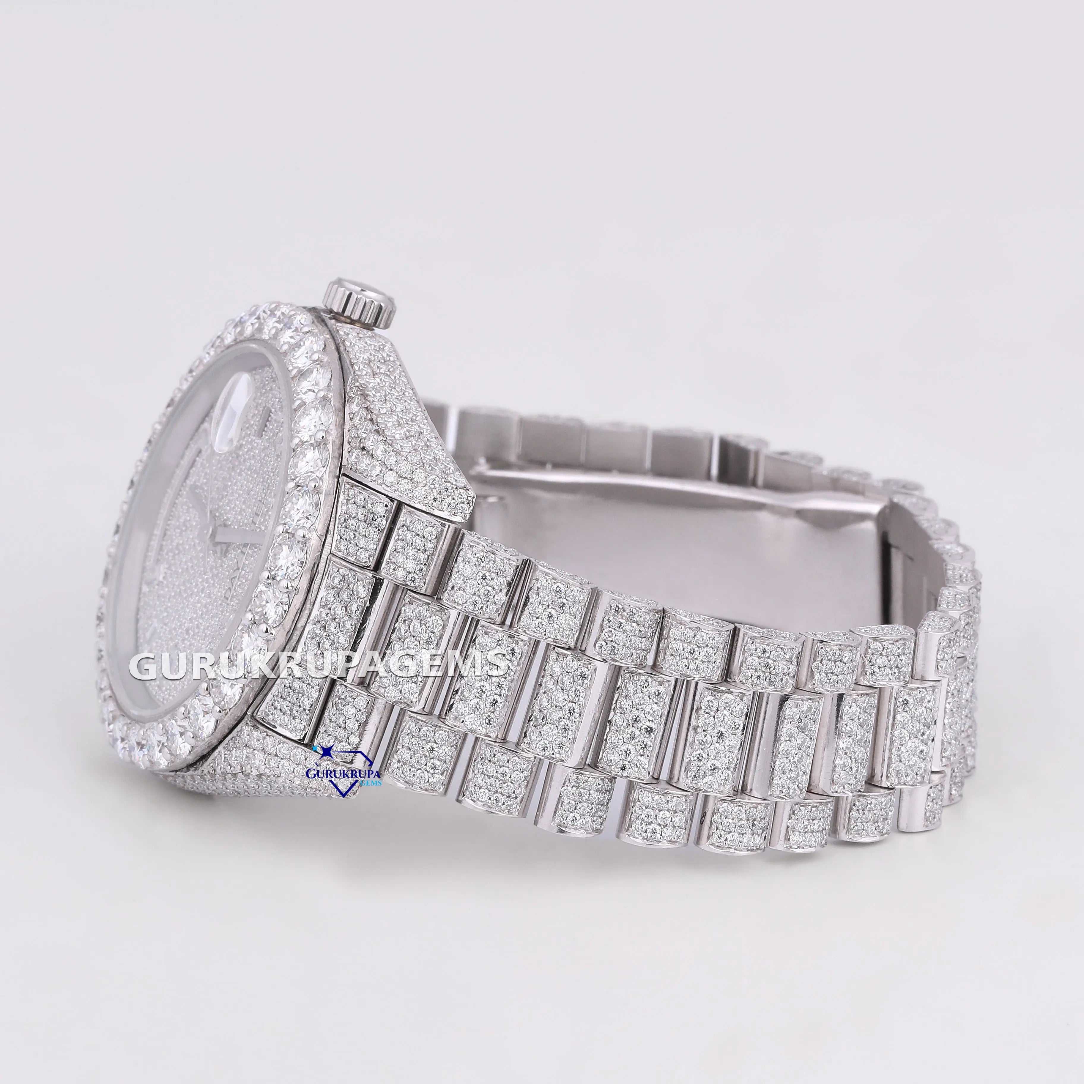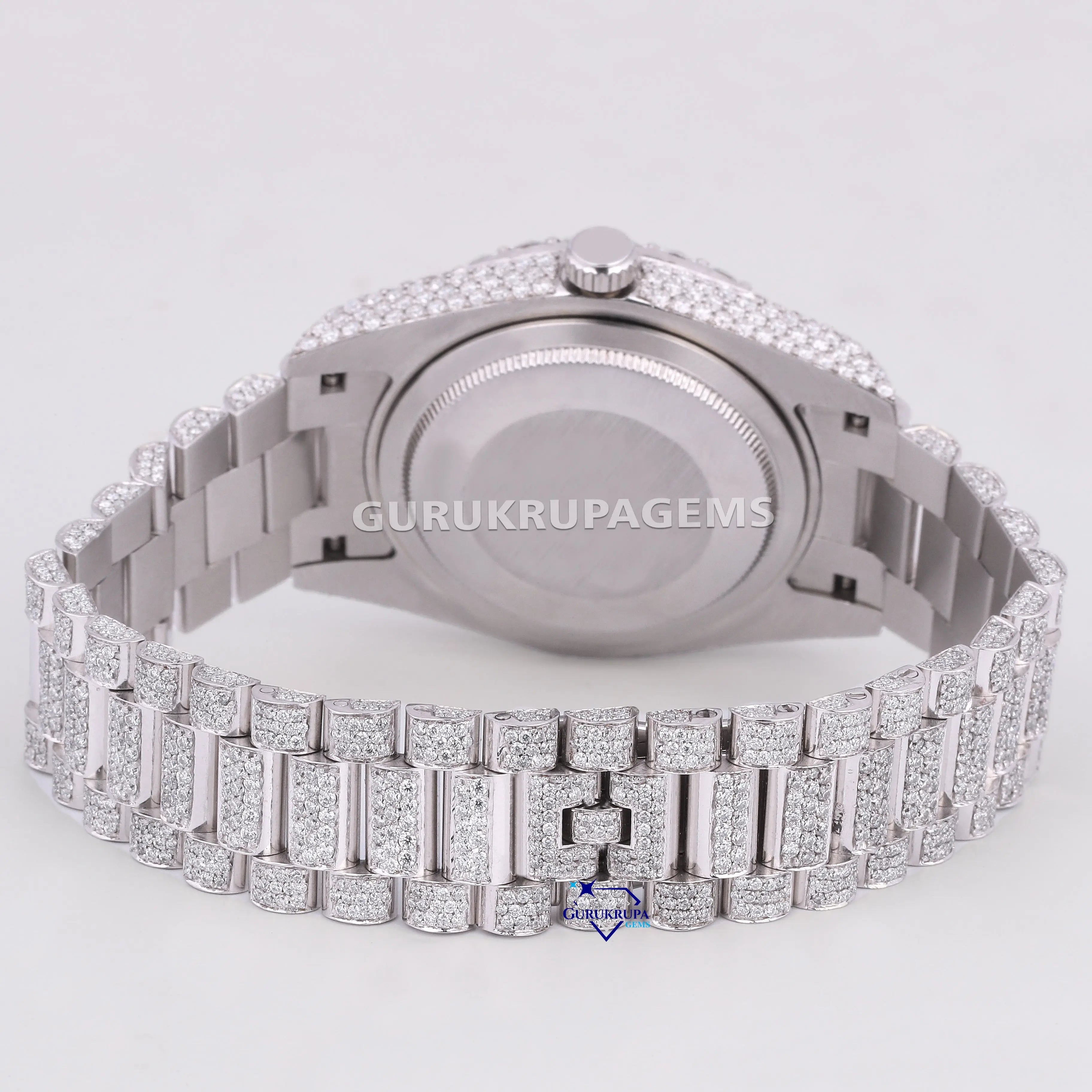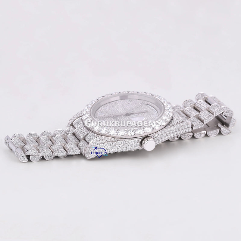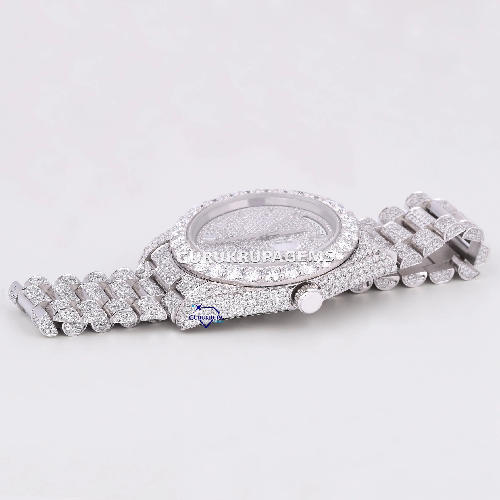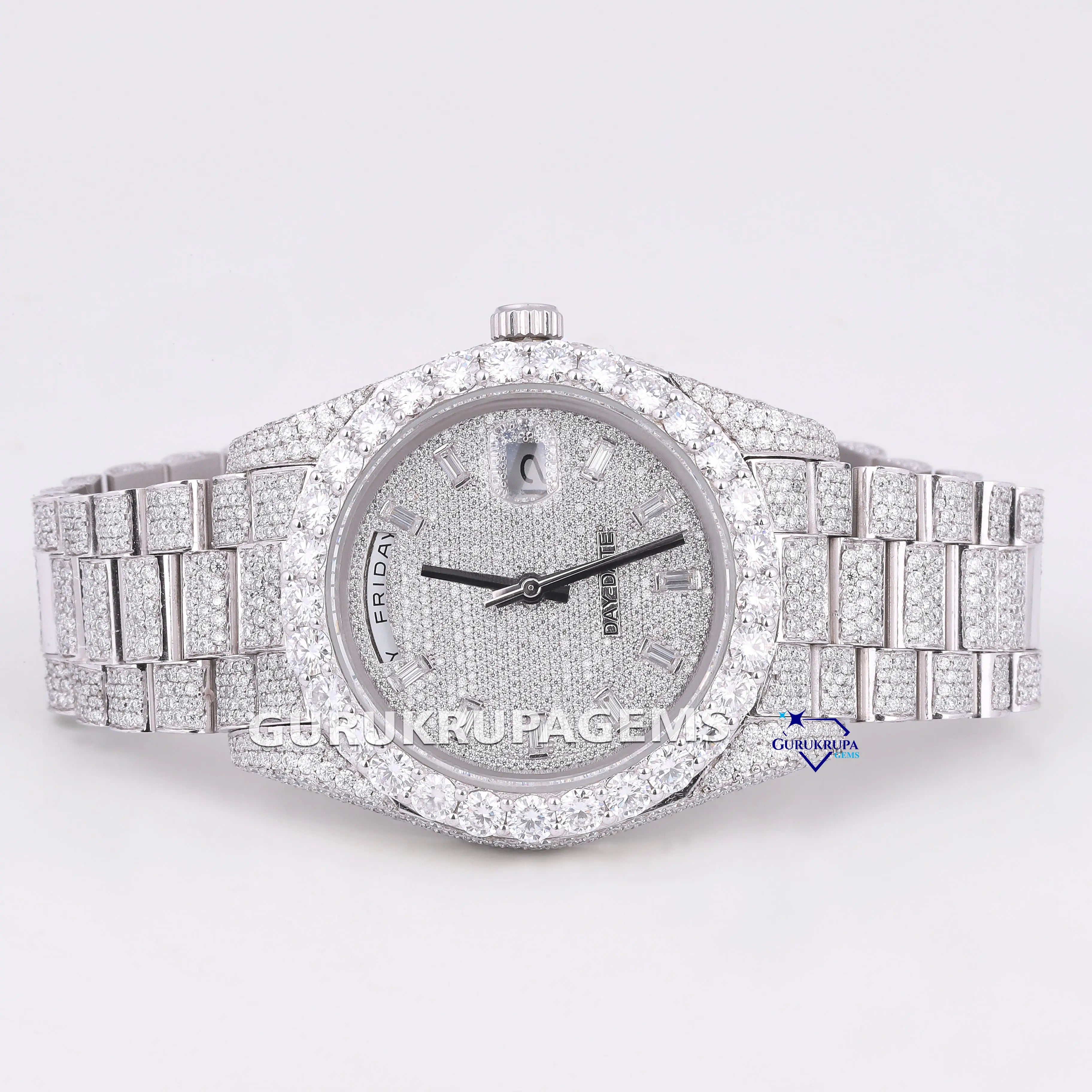 Day and date hip hop fully iced out diamond moissanite watch mens