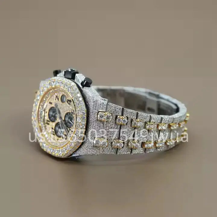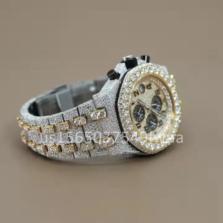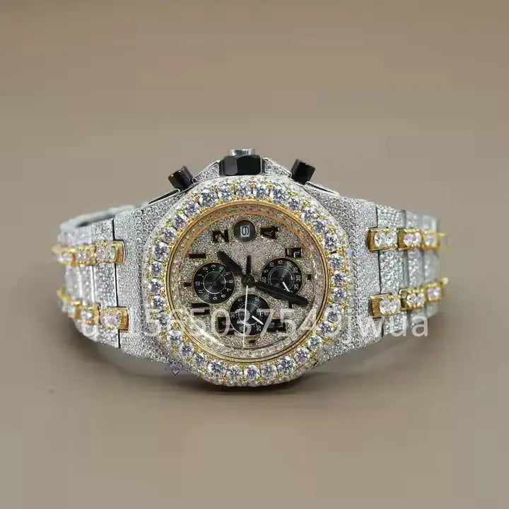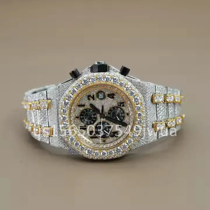 Elevate your hip-hop fashion with chronograph fully bedazzled moissanite diamond watch